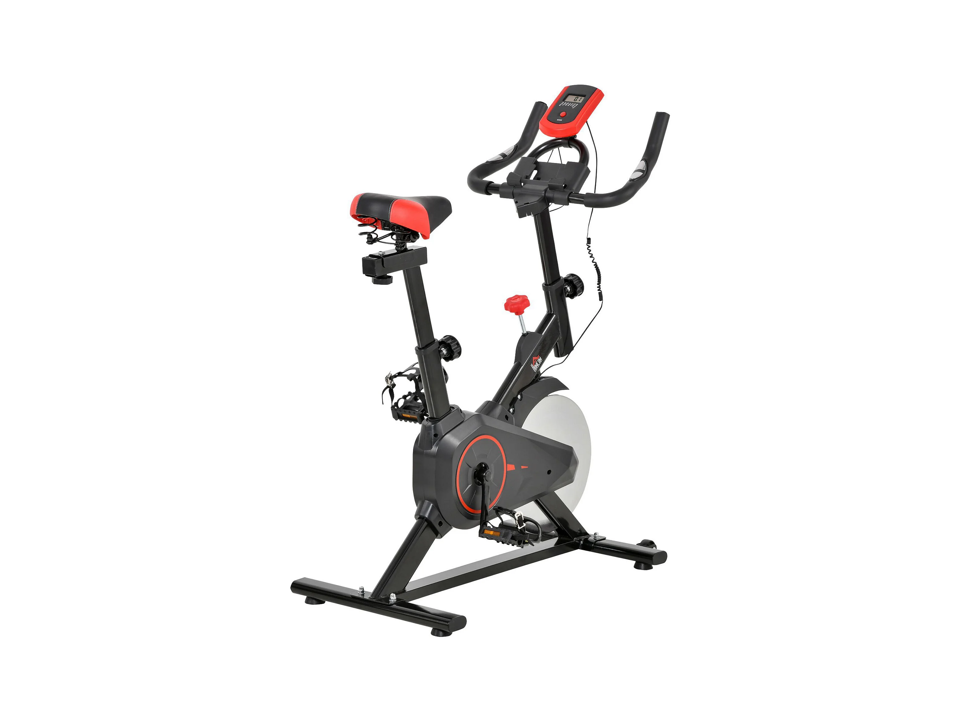 Vélo d'appartement avec écran LCD multifonctions vélo biking cardio training selle et guidon réglables volant inertie 6 Kg acier noir rouge
