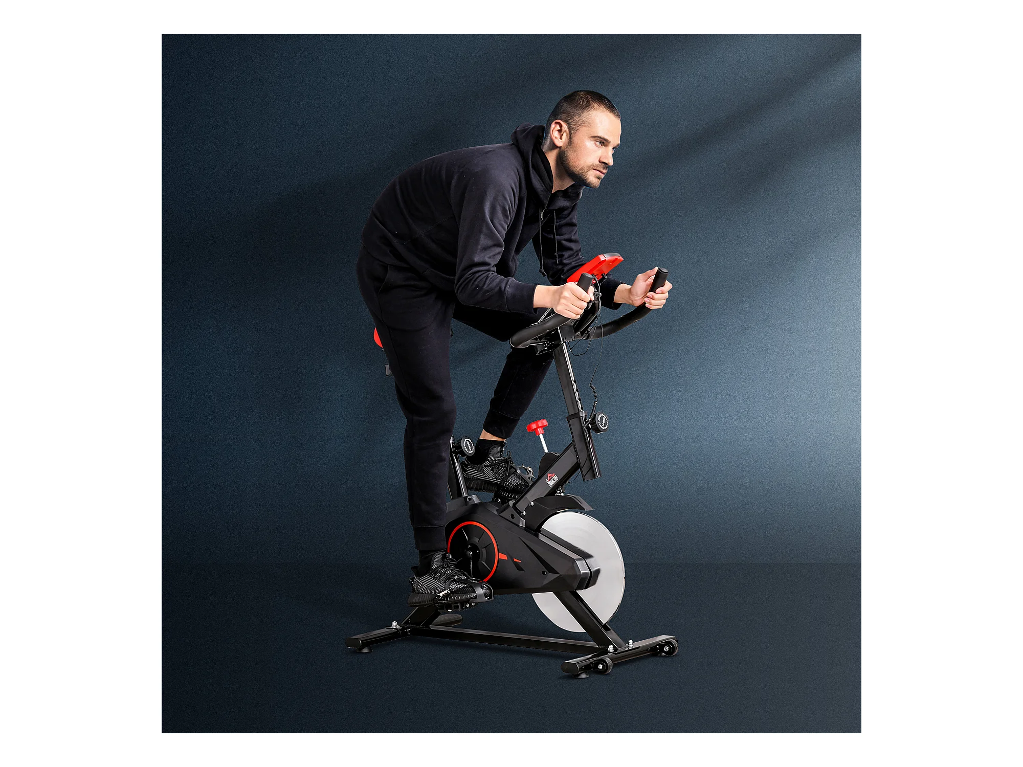 Vélo d'appartement réglable - vélo biking cardio - volant d'inertie 4 Kg, écran LCD, support Ipad, porte-gobelet - acier noir