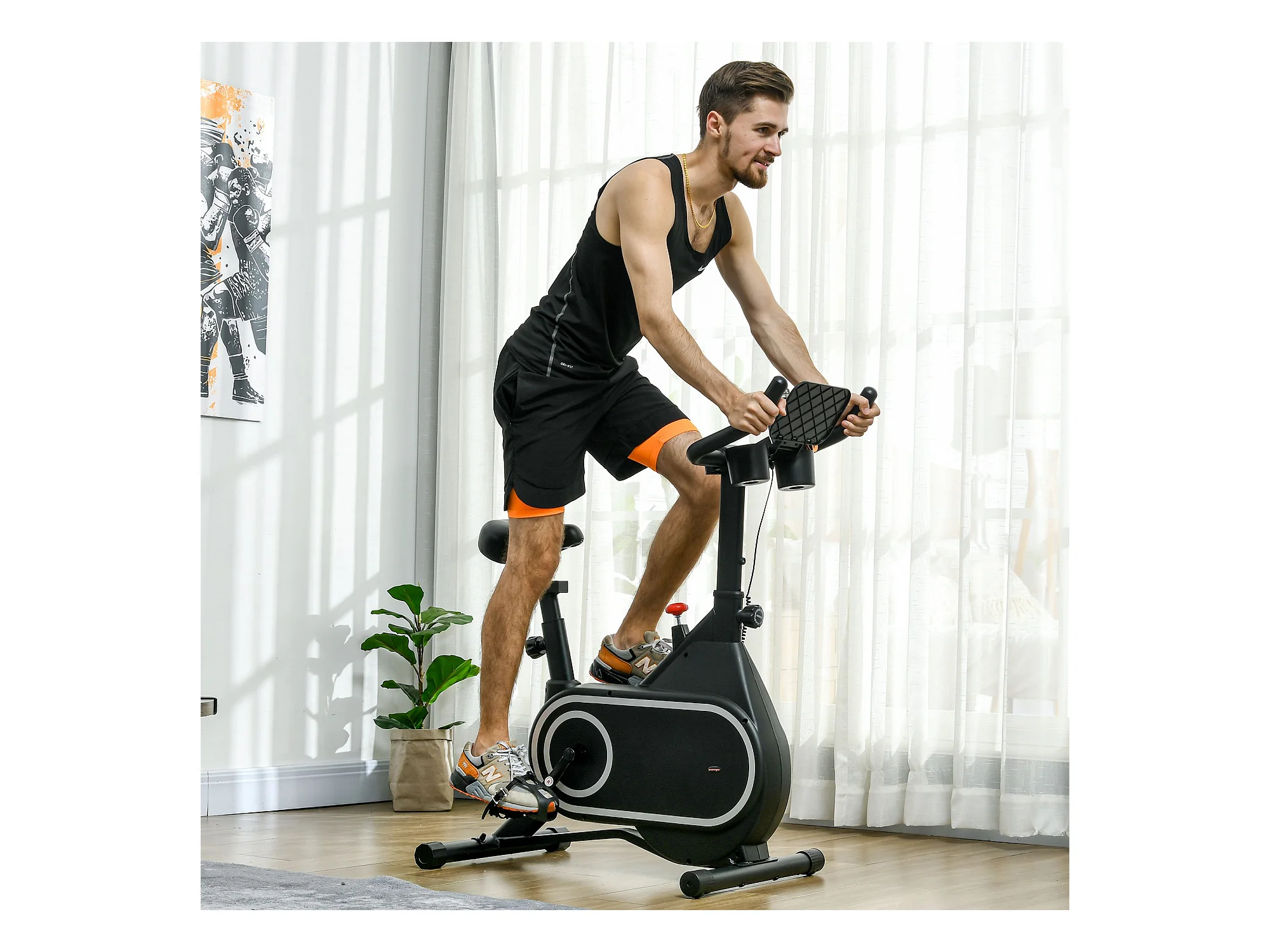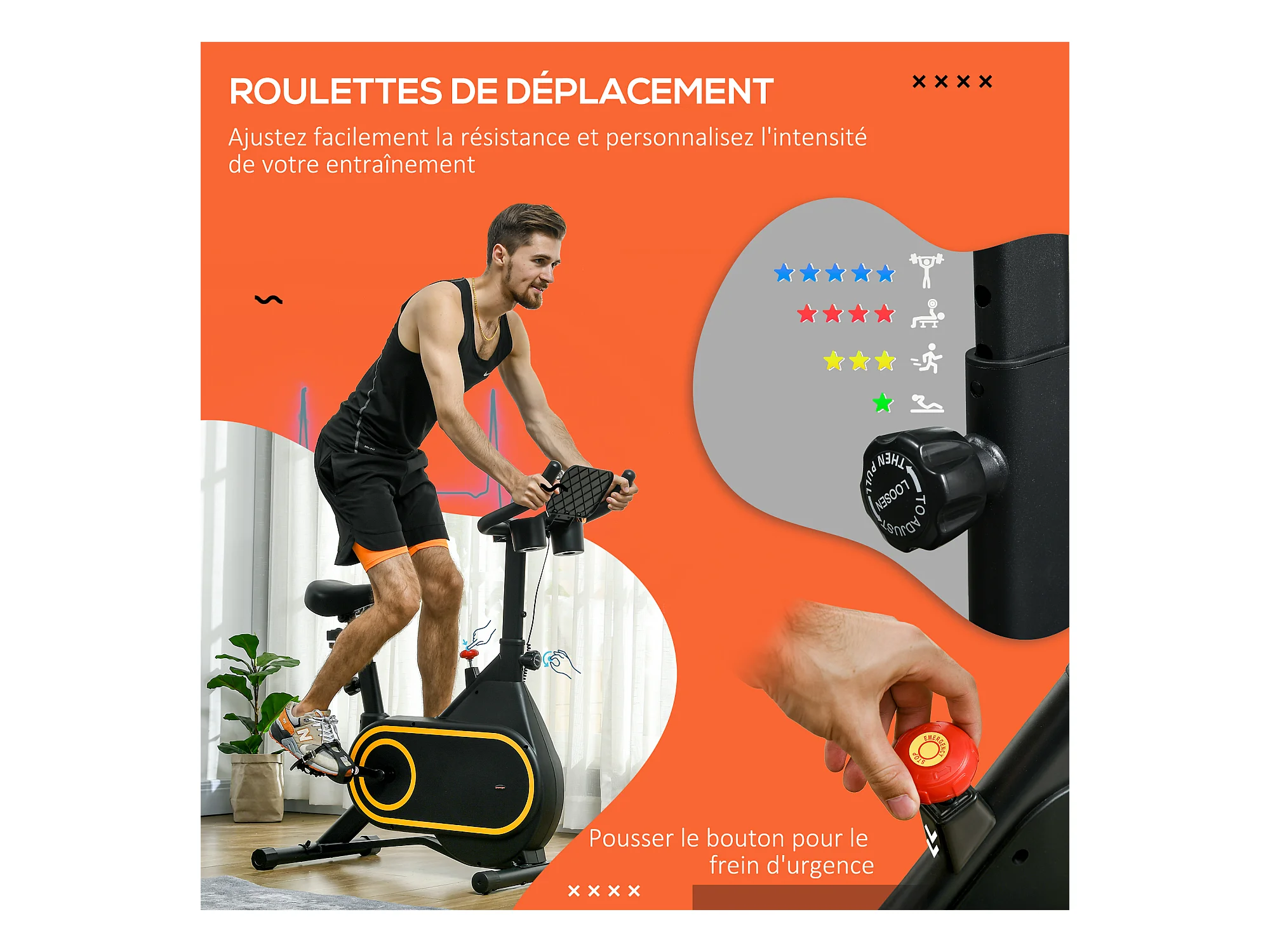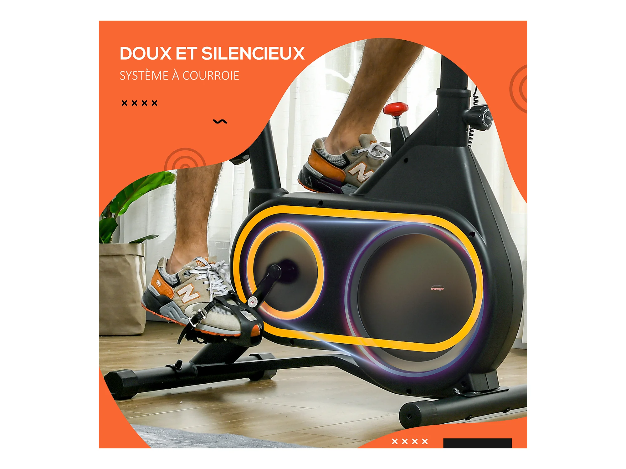Vélo d'appartement réglable - vélo biking cardio - volant d'inertie 4 Kg, écran LCD, support Ipad, porte-gobelet - acier noir