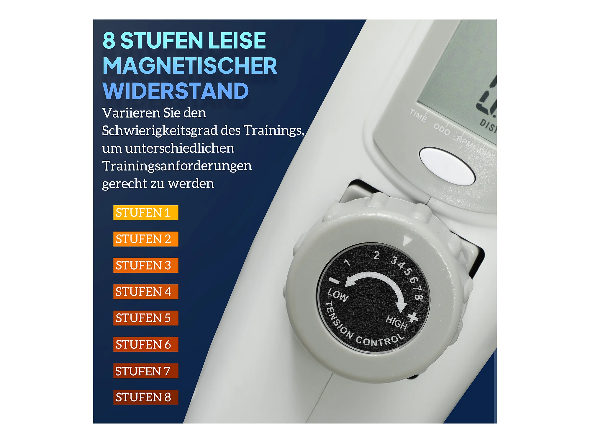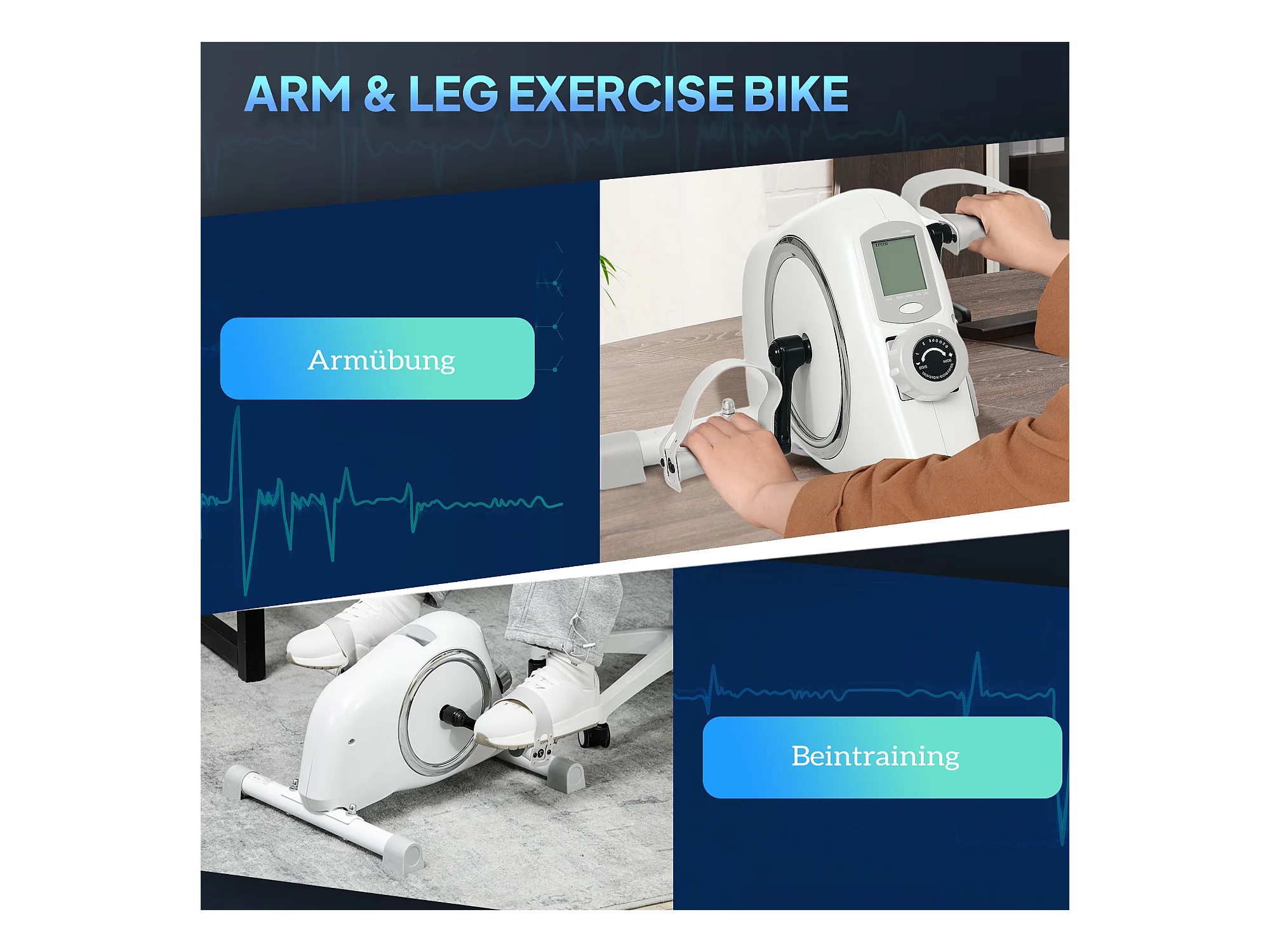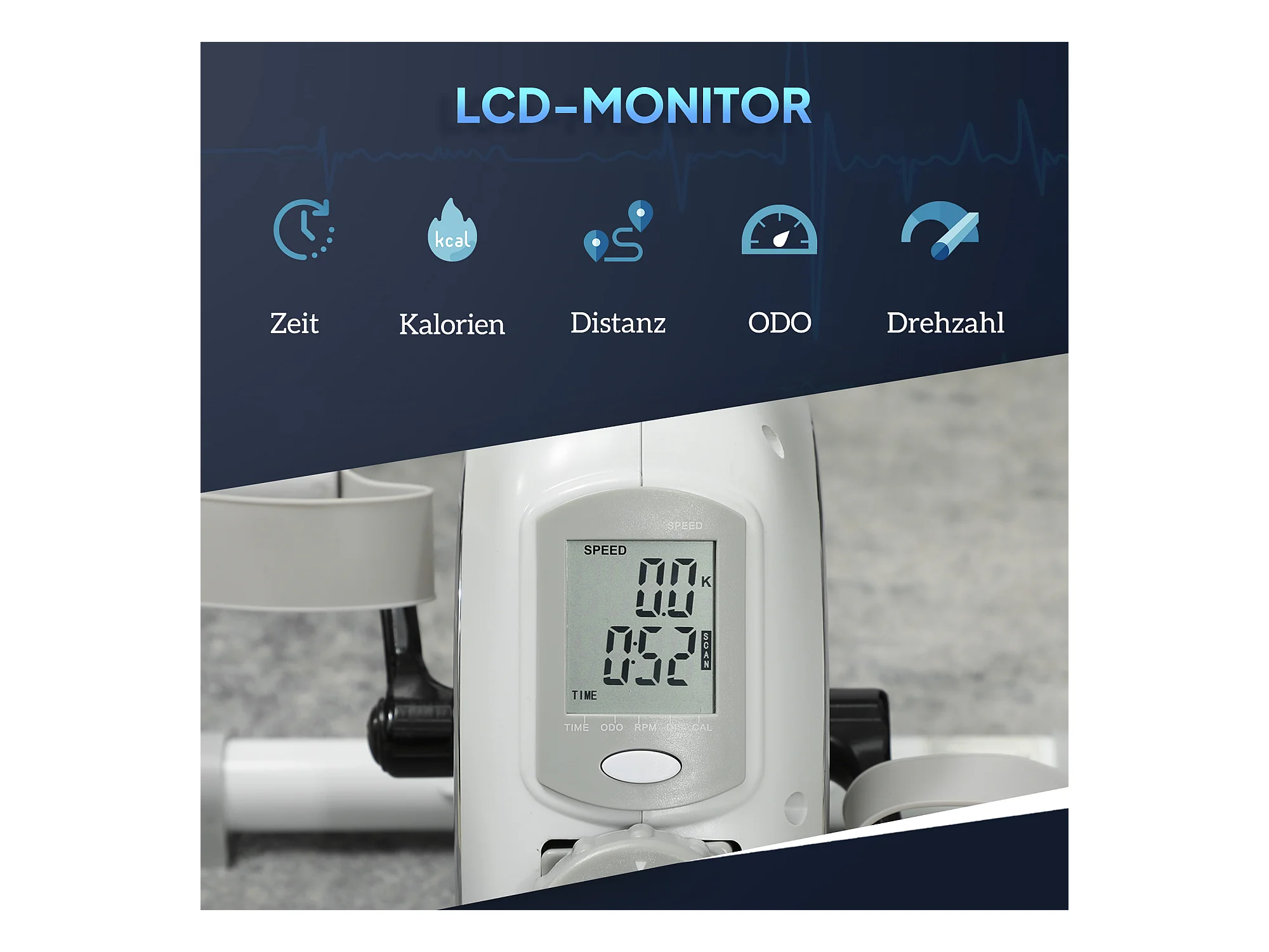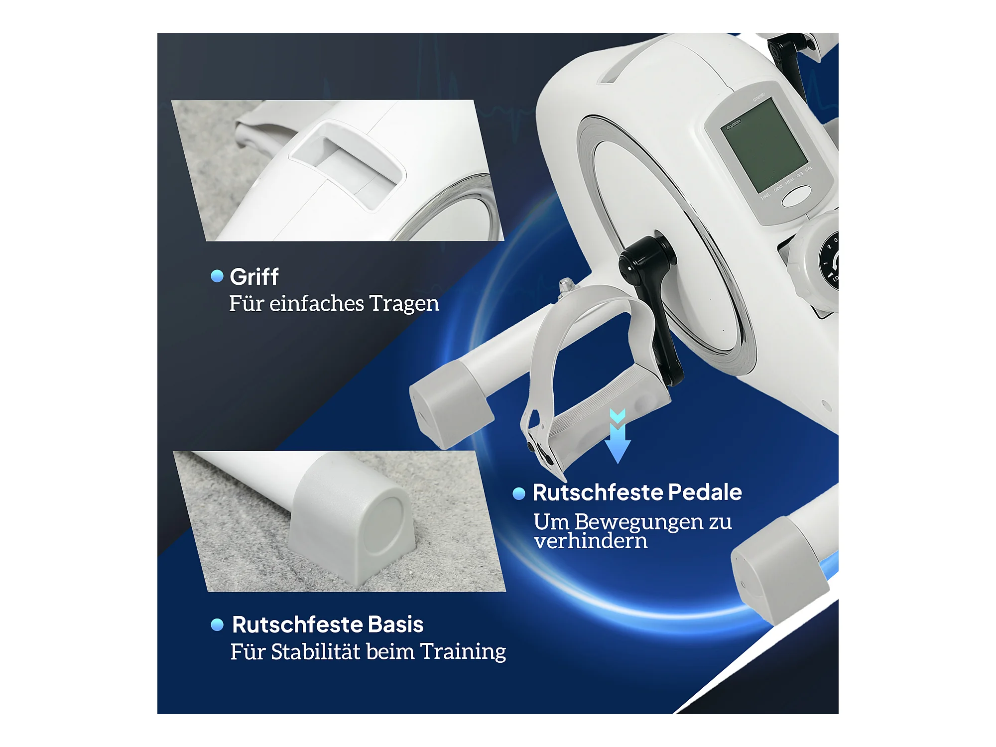 Vélo d'exercice mini pédalier avec résistance magnétique 8 niveaux, acier, blanc (48x43x31cm)