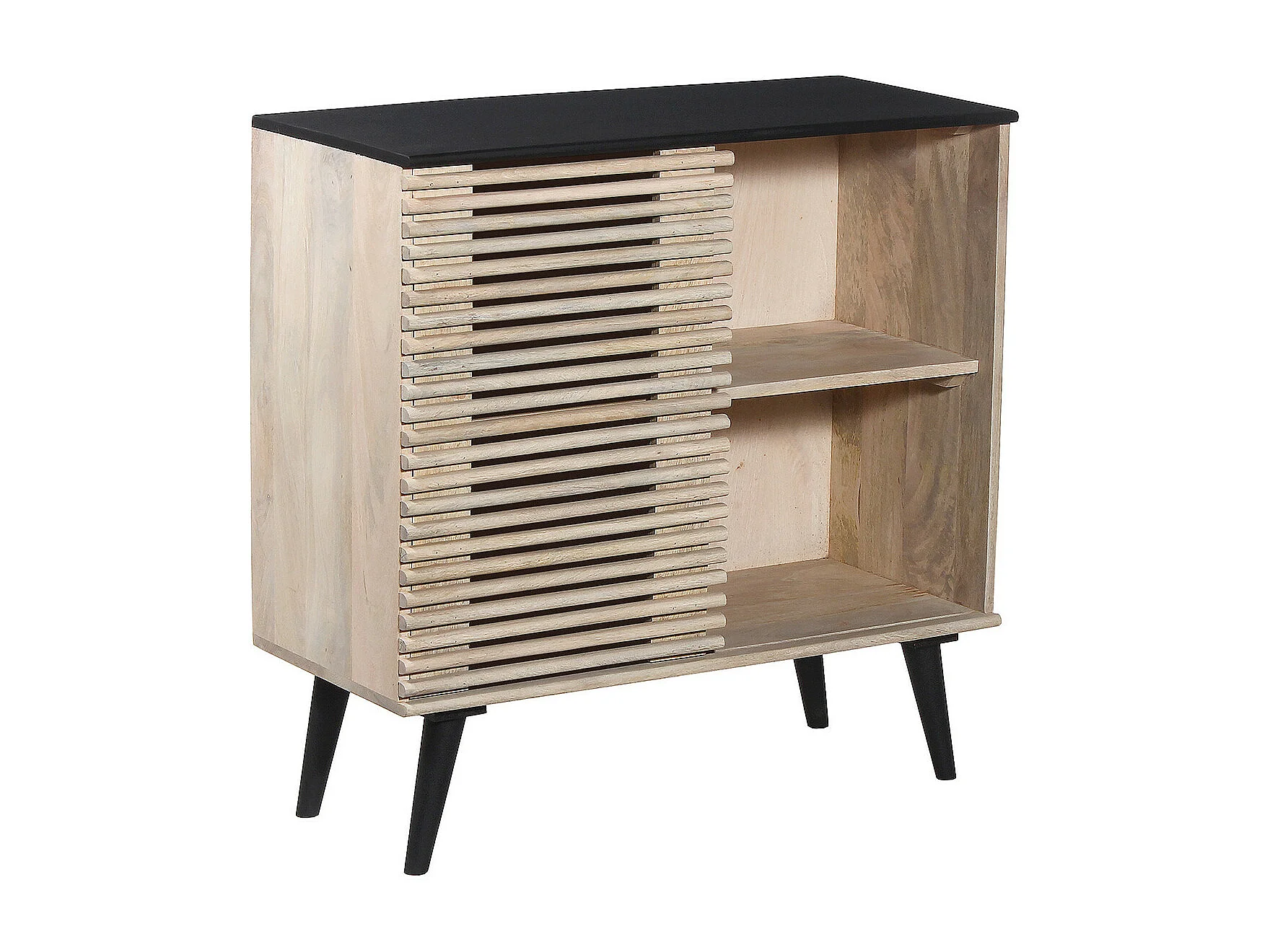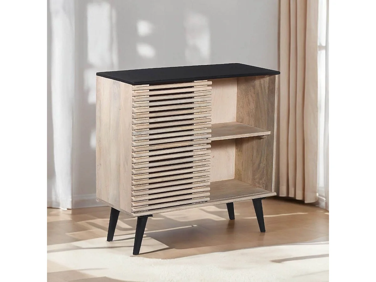 VENITIEN - Meuble d'entrée en Manguier Massif et Noir Façade Ajourée Coulissante