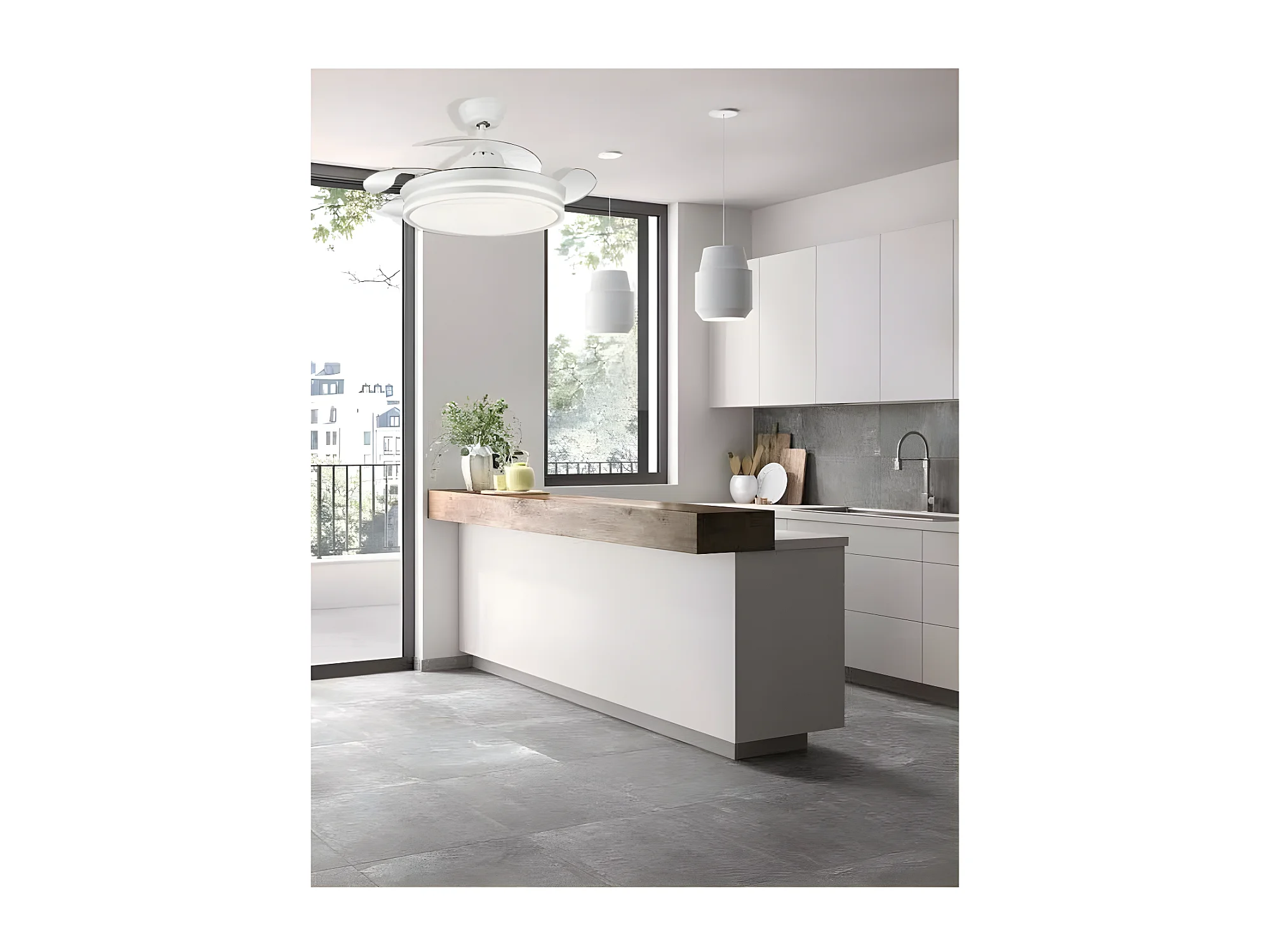 Ventilateur MARTA DC blanc et LED intégrée 36w mémoire de couleur Fabrilamp