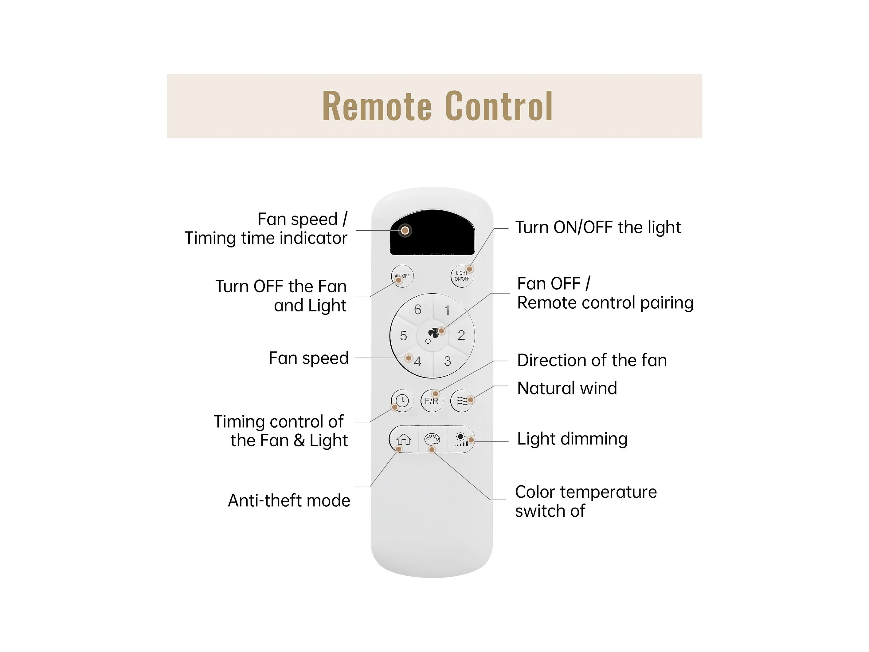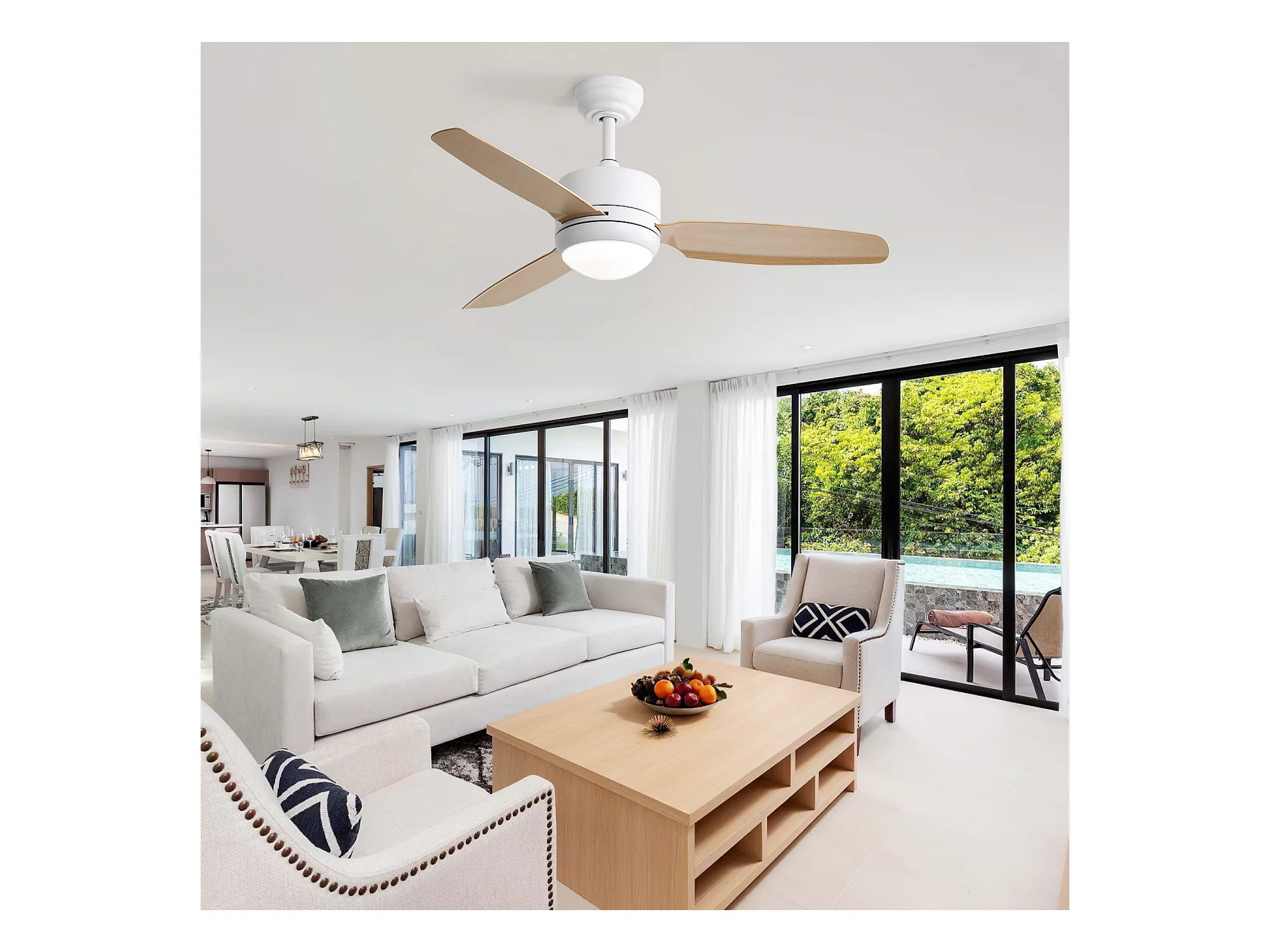 Ventilateur de plafond de 117 cm avec éclairage, 3 pales en ABS, moteur CC 6 vitesses et télécommande pour chambre, salon et bureau (116,8 x 116,8 x 54 cm)
