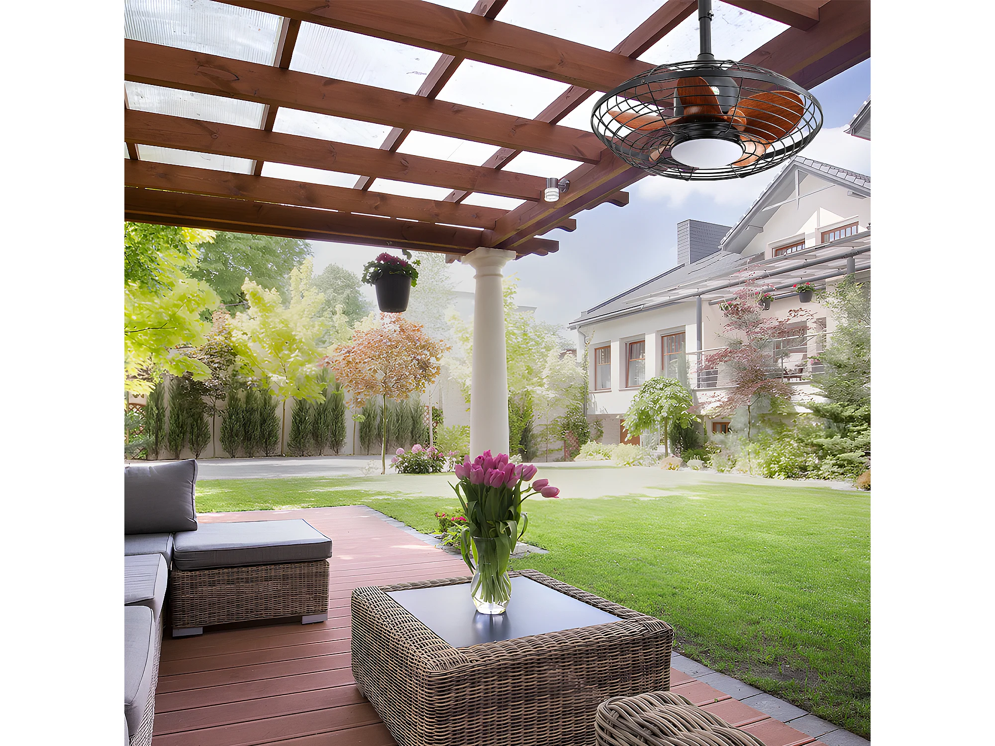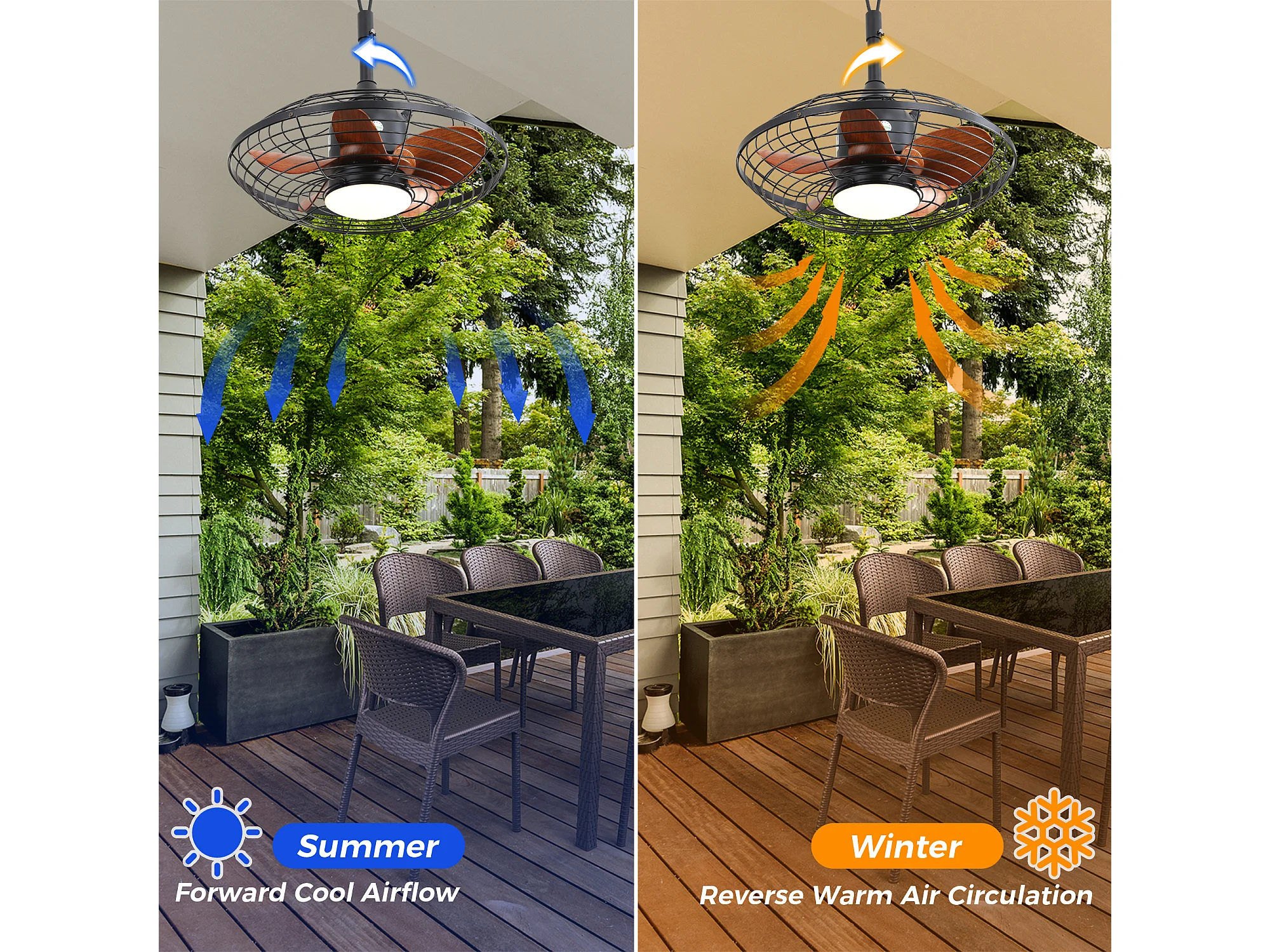 Ventilateur de Plafond Extérieur 20 Pouces - Moteur CC Réversible - LED 18W - Résistant à l'Eau - Télécommande et Minuterie