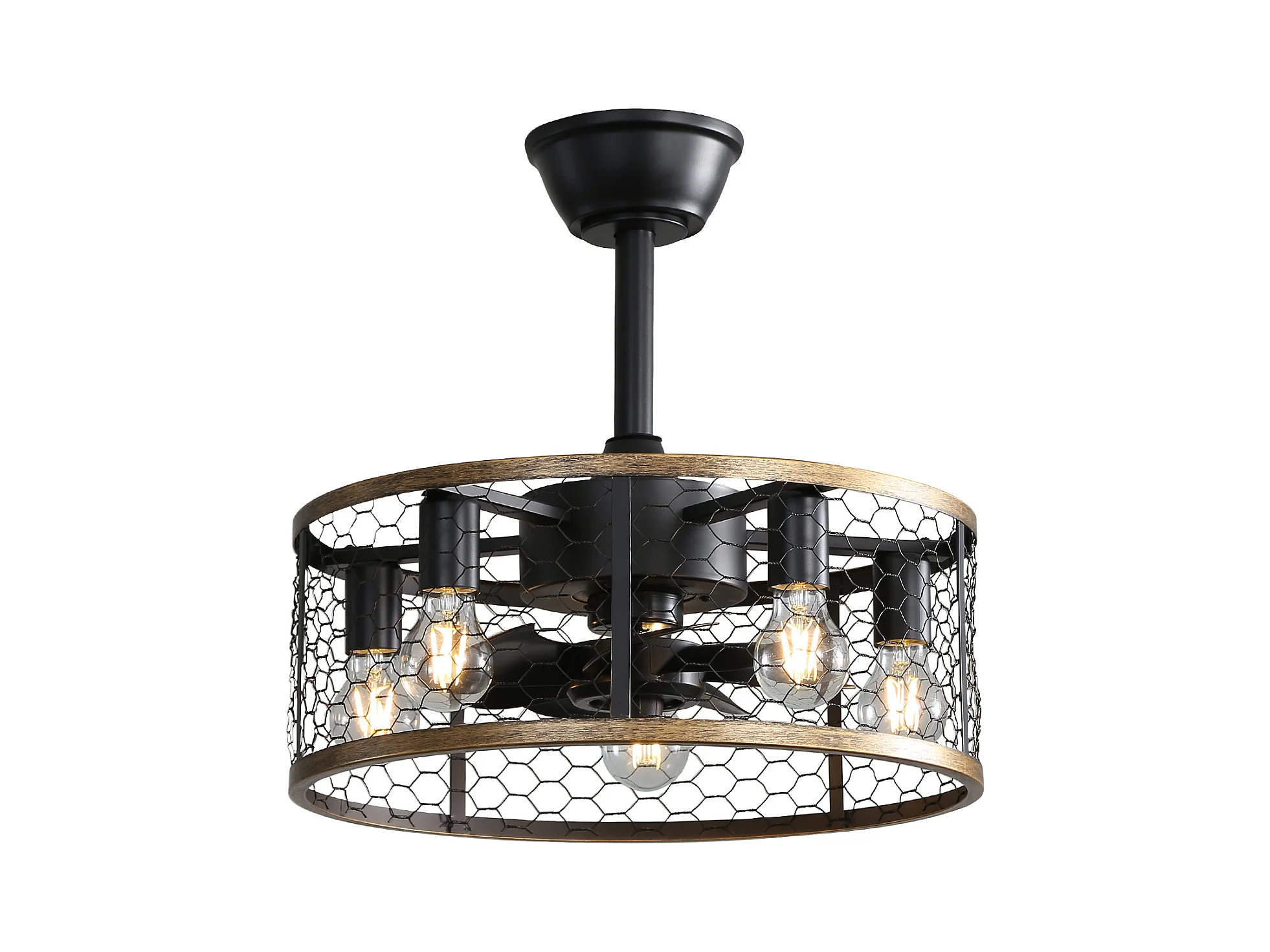 Ventilateur de plafond cage industriel - Ventilateur de plafond noir avec éclairage et télécommande - Pales en ABS
