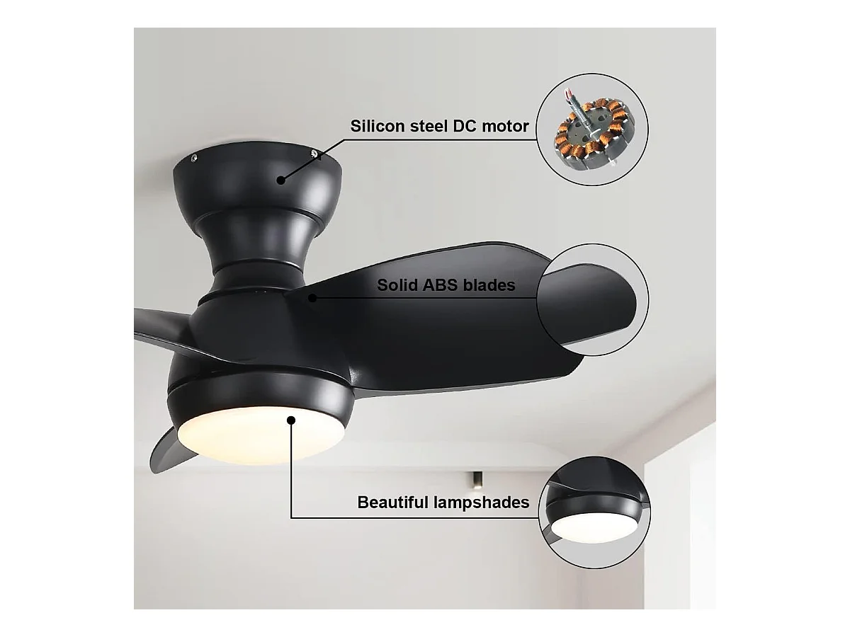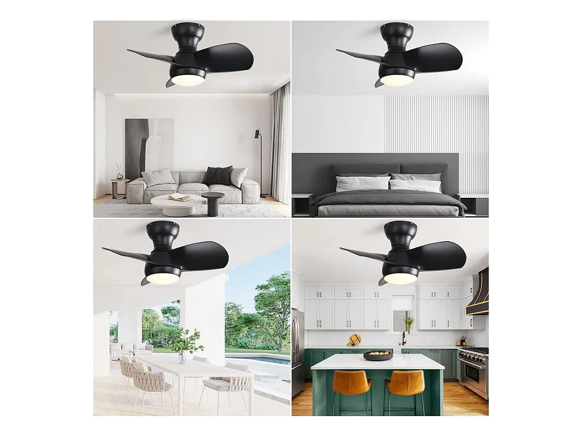 Ventilateur de plafond noir 23 pouces ---- Ventilateur de plafond avec lumière LED et 3 pales en ABS --- pour chambre