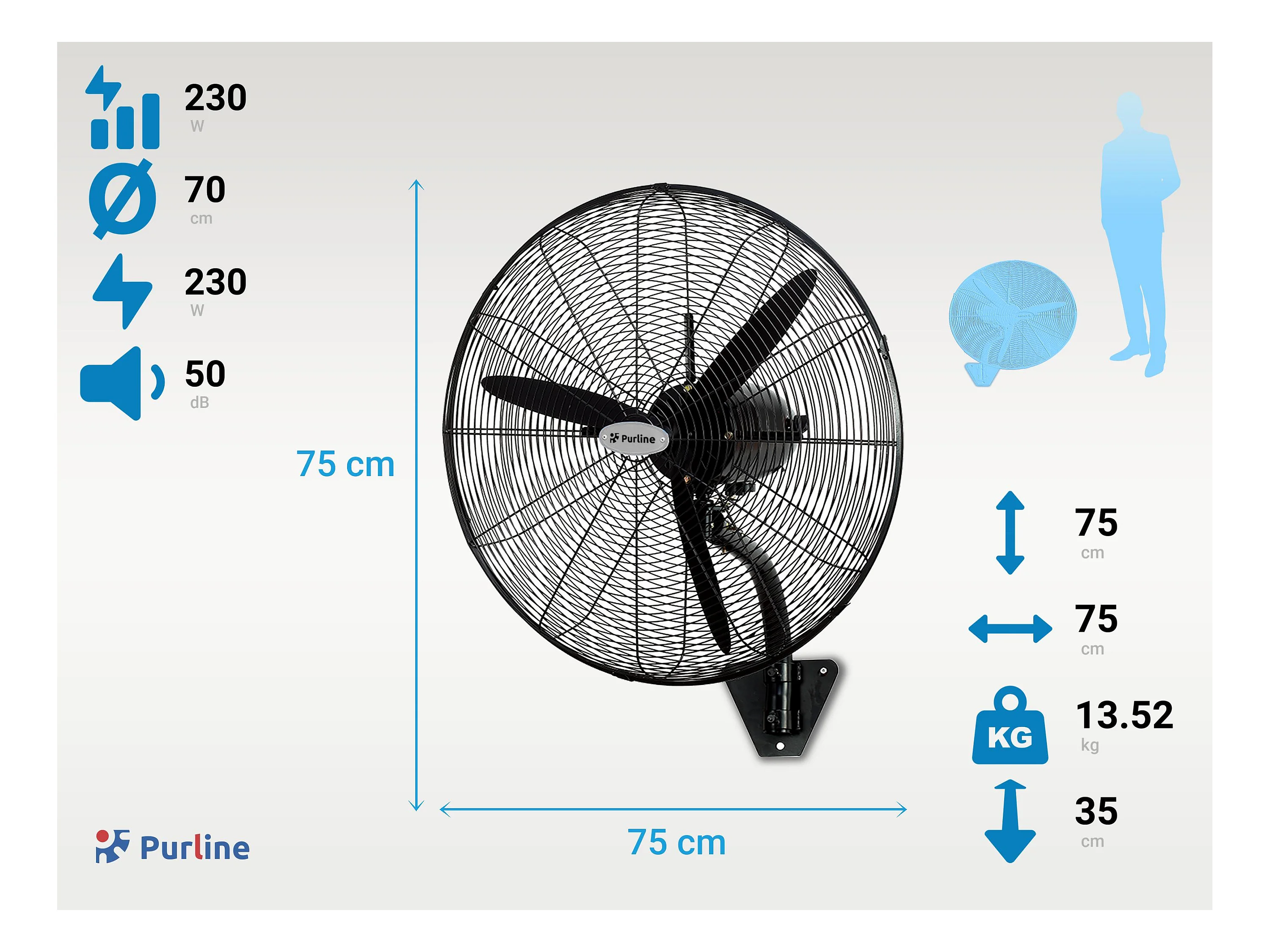 Ventilateur mural industriel 230W avec pales en aluminium