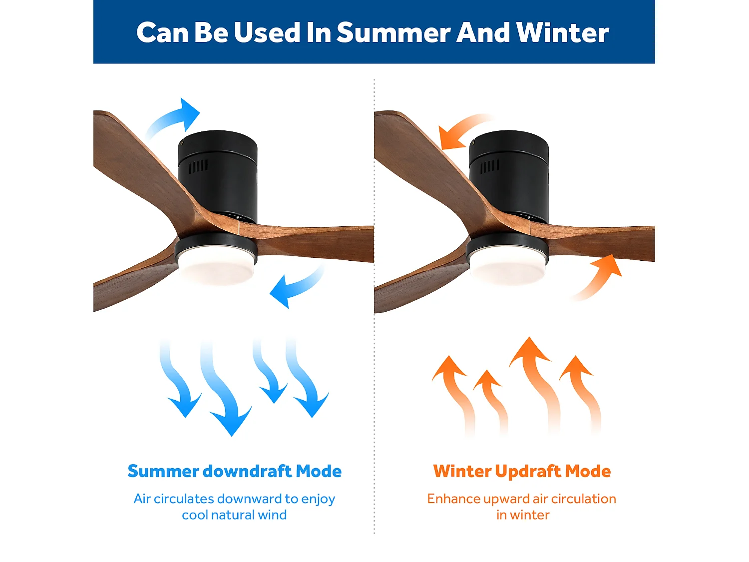 Ventilateur Plafond Bois 132 cm avec LED – Moteur DC Réversible 6 Vitesses – Silencieux – Pour Salon, Chambre, Patio