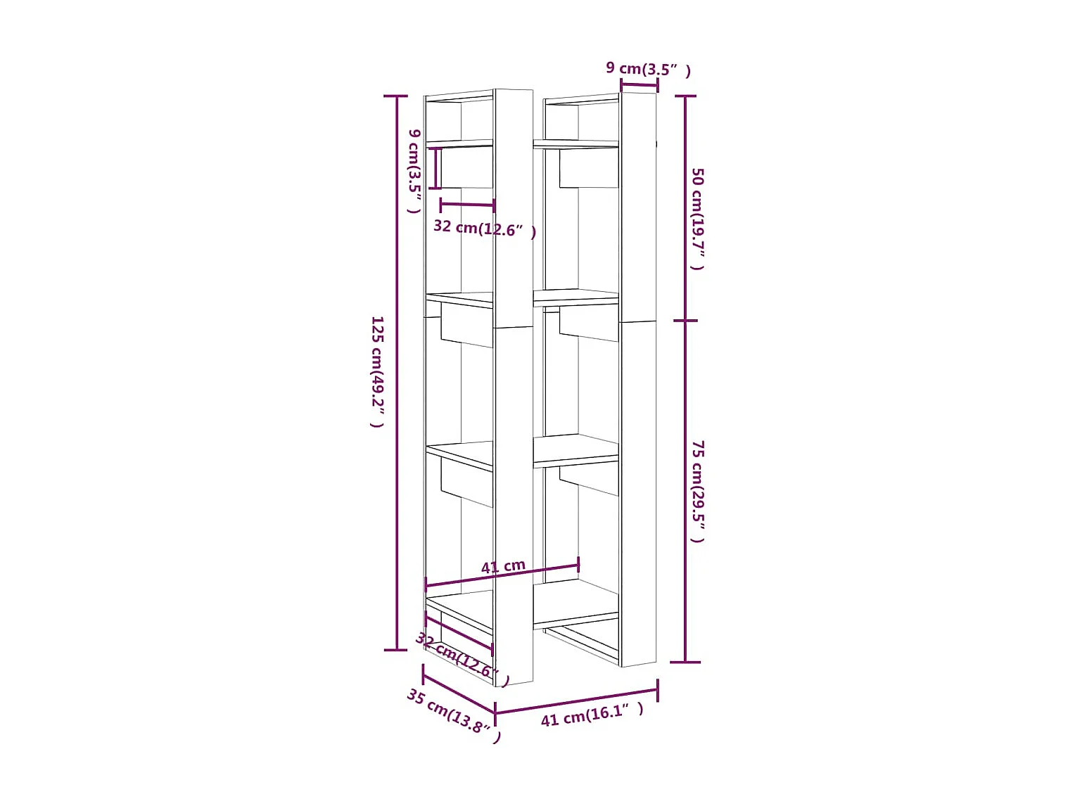 Cyrik Bibliothèque/Séparateur de pièce Noir 41x35x160 cm Pin massif