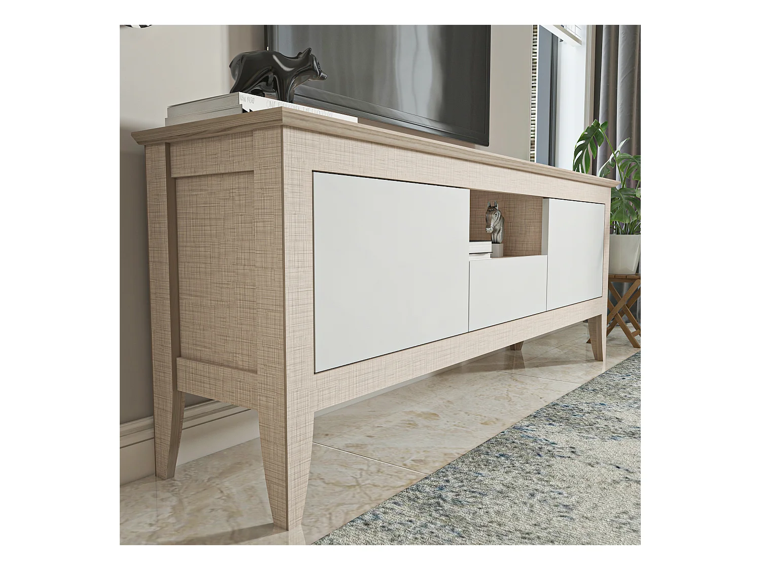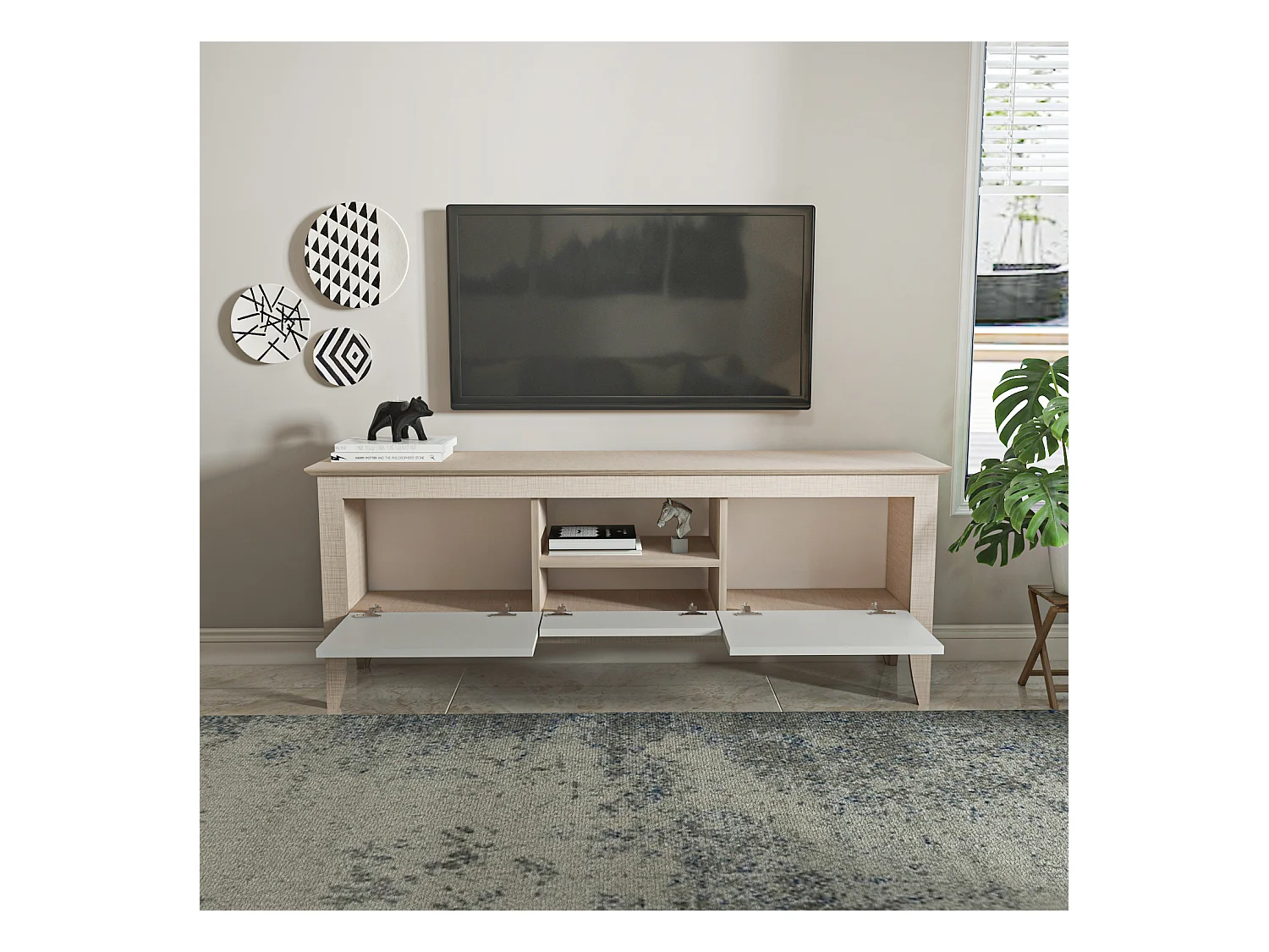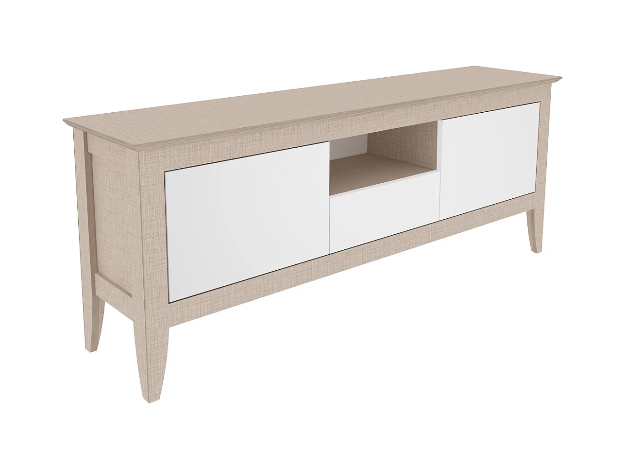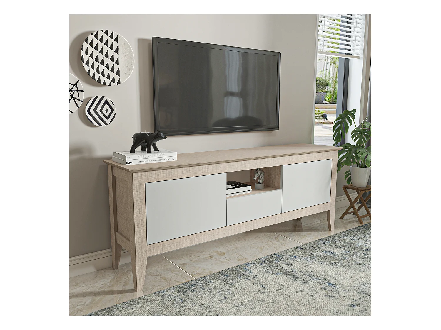 Meuble TV 3 portes - H52cm x L180cm x L43cm - chêne clair et blanc - Printed
