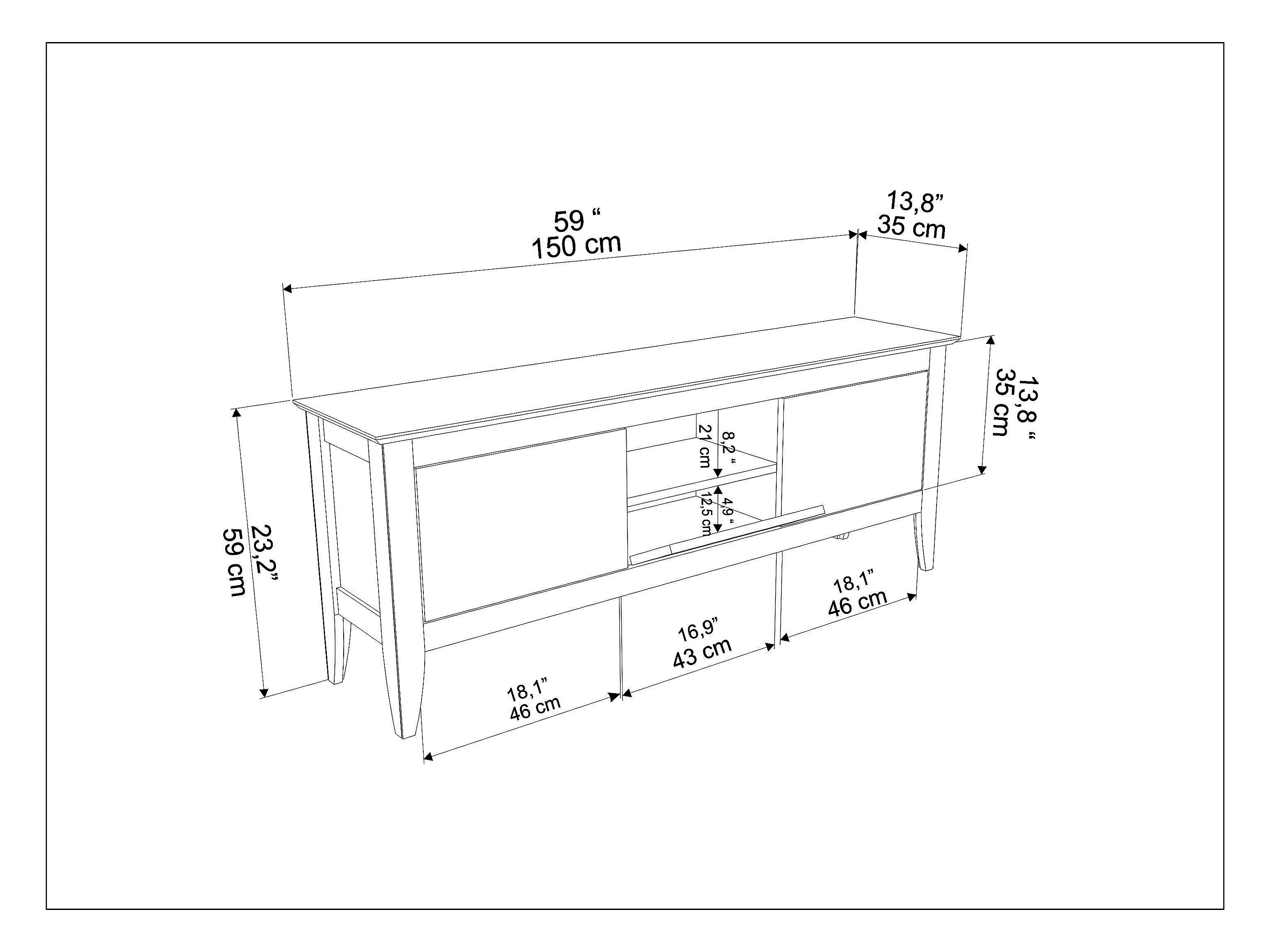 Verde Meuble TV 150 cm 3 Armoires Battantes et Une Niche | Convient aux TVs 55" (Beige et Blanc)