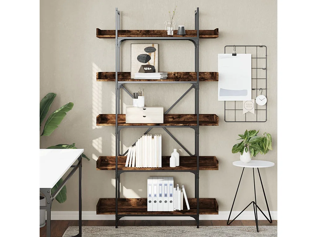 Merse Bibliothèque 6 niveaux chêne fumé 76x32x192cm bois d'ingénierie