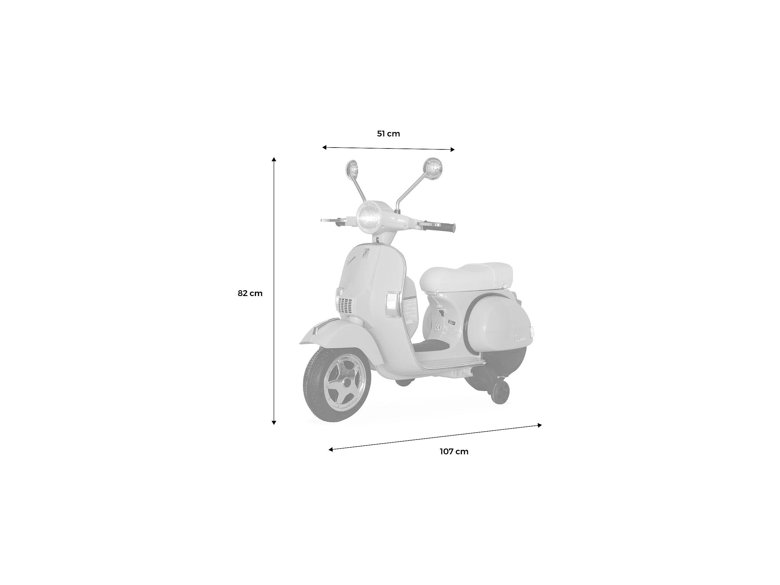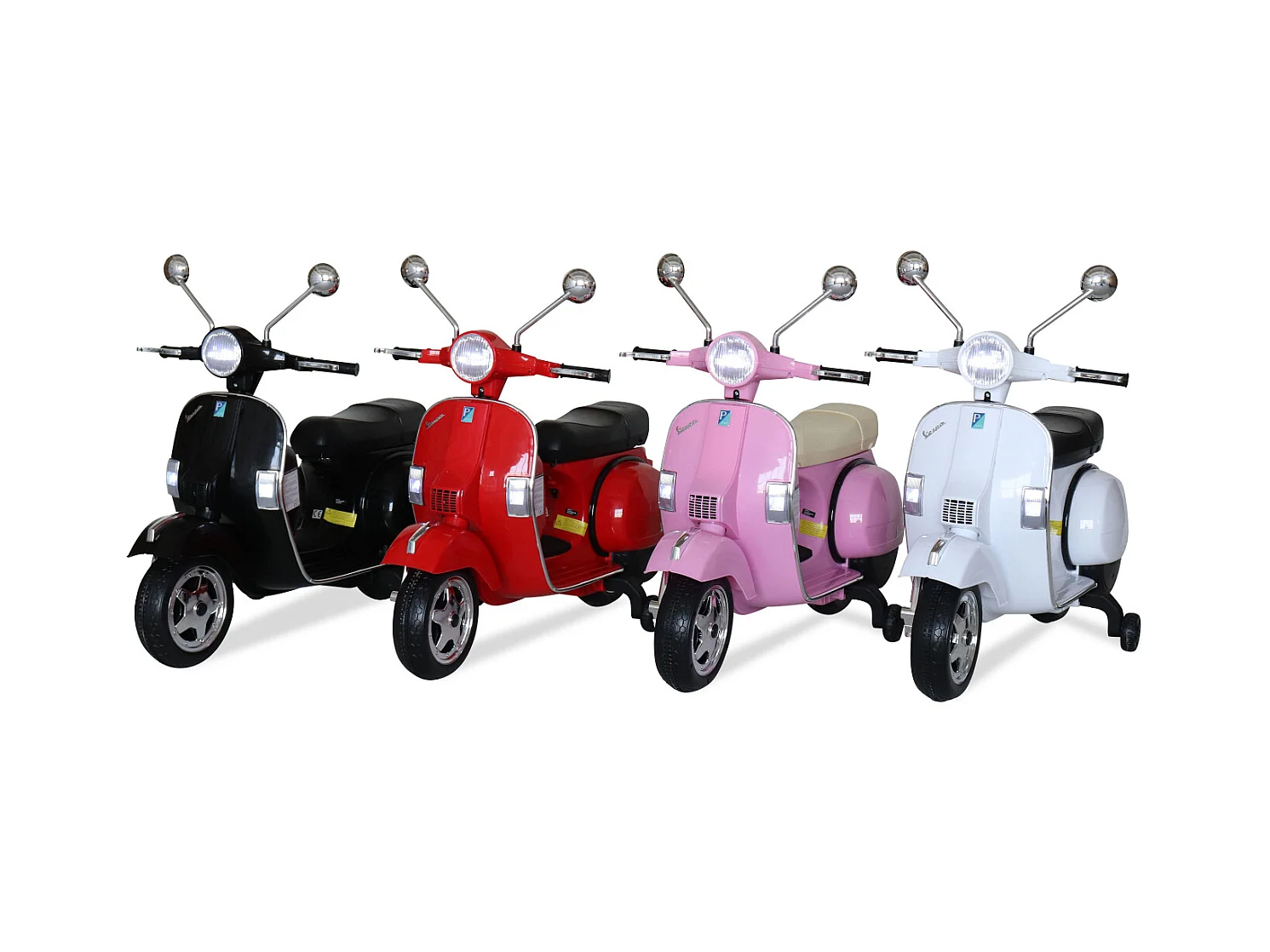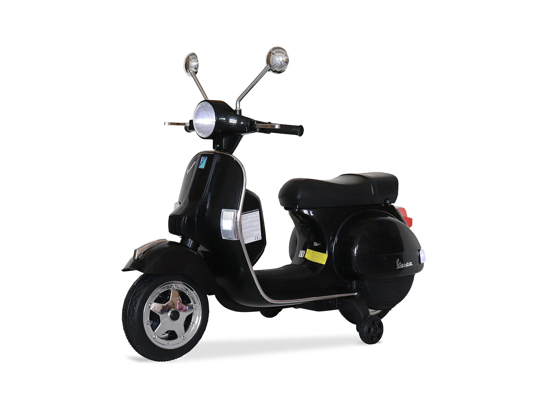 Vespa noire PX150. scooter électrique pour enfants 12V 4.5Ah. 1 place avec autoradio