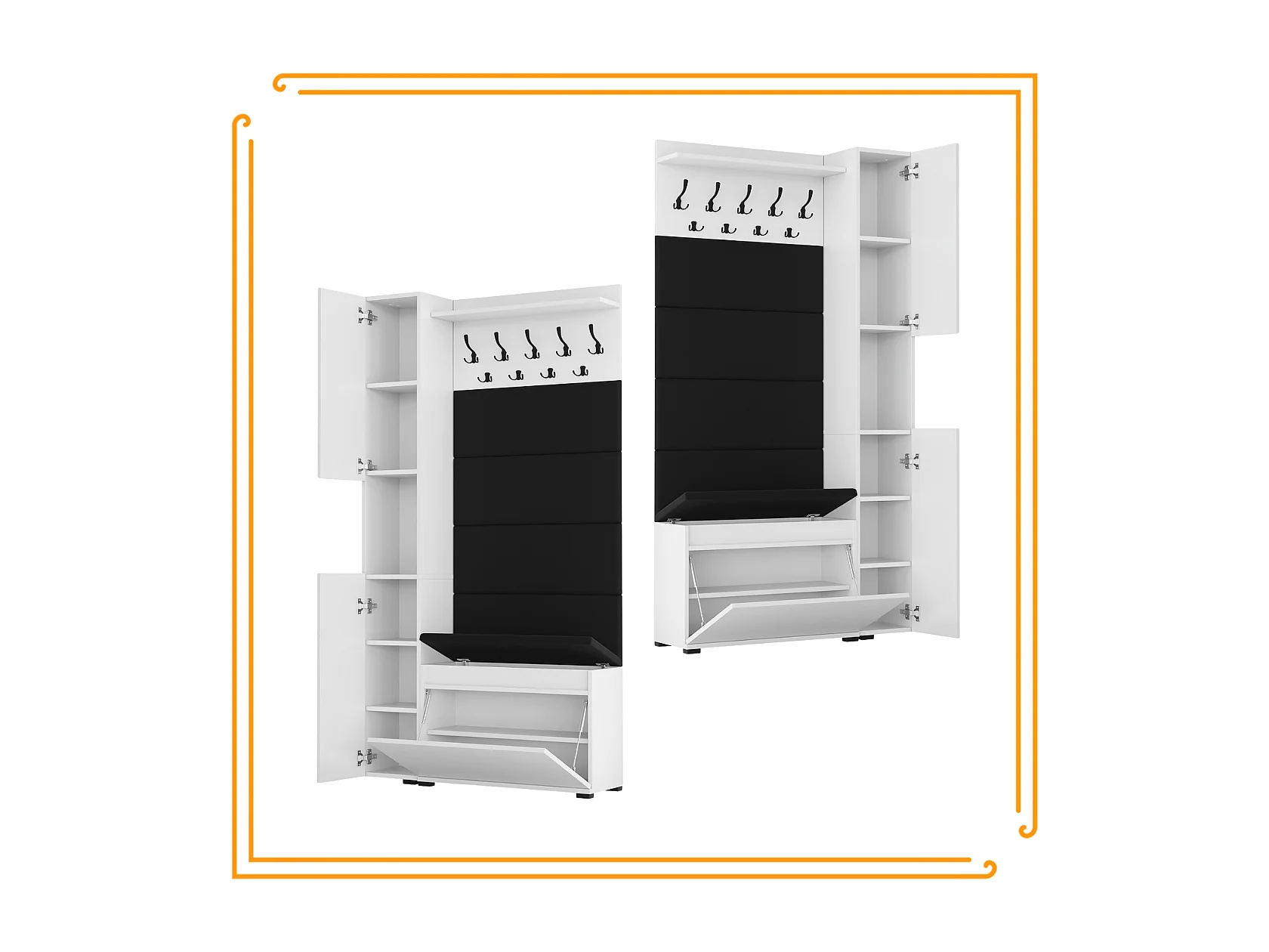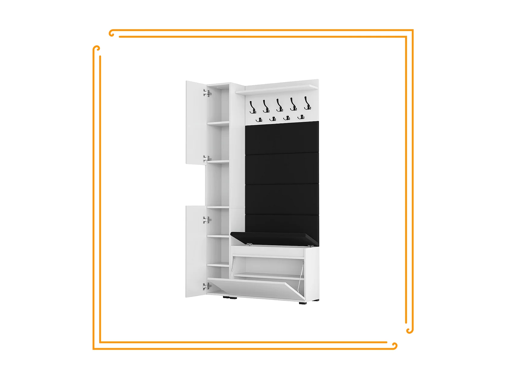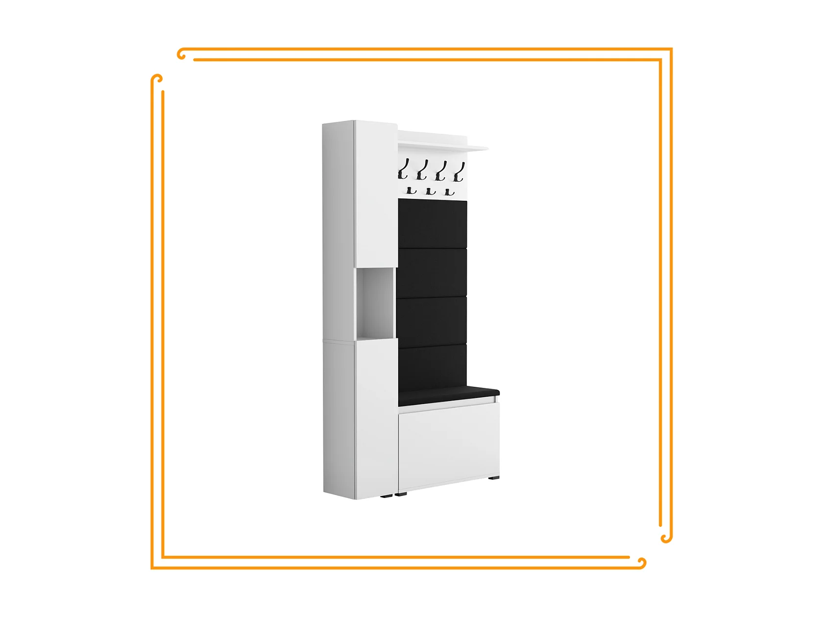 Vestiaire d'entrée avec assise, patère, panneau rembourré – Blanc