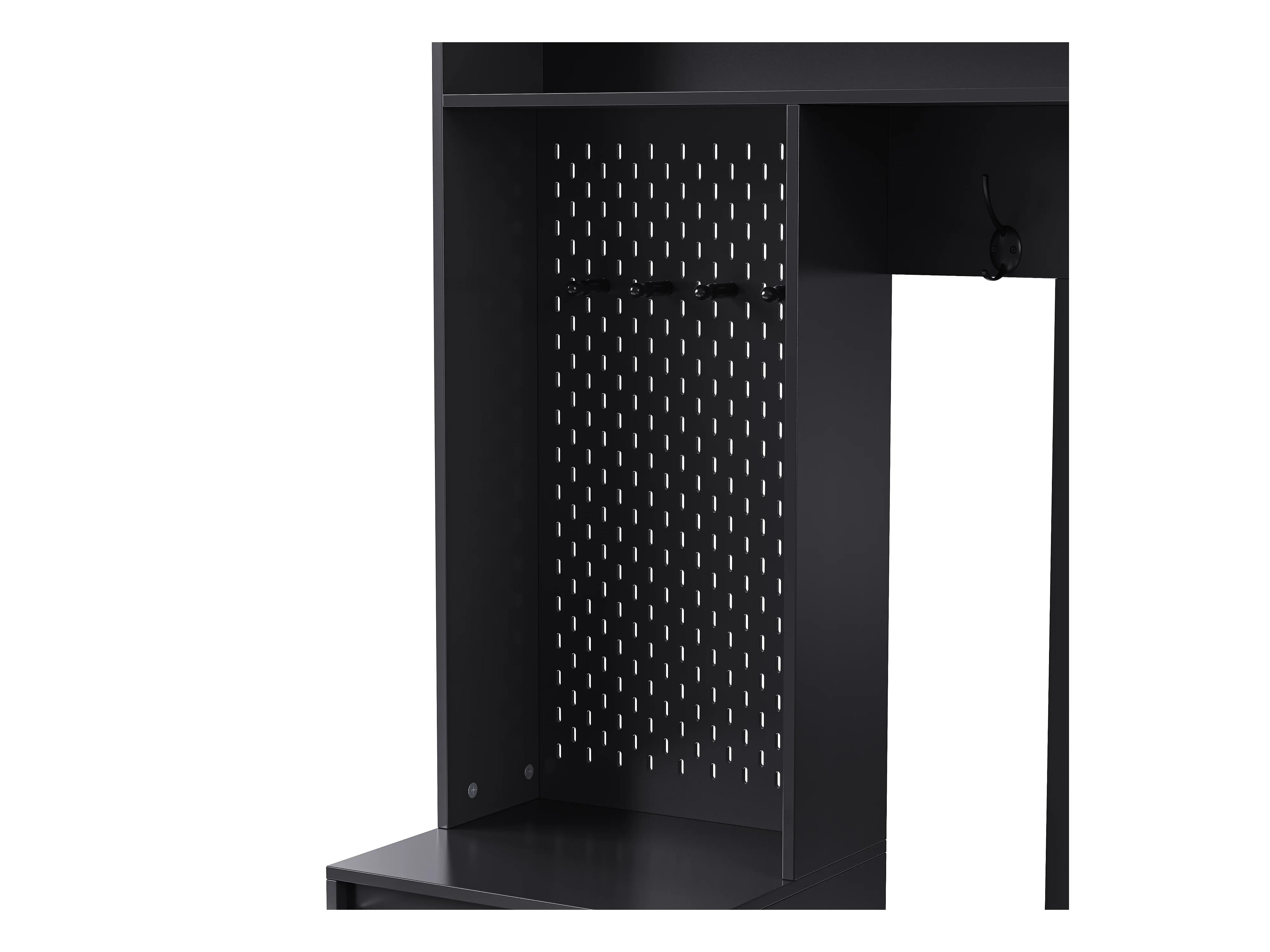 Vestiaire d'entrée avec banc rembourré, 4 patères, 2 tiroirs - noir - 100x35x180 cm