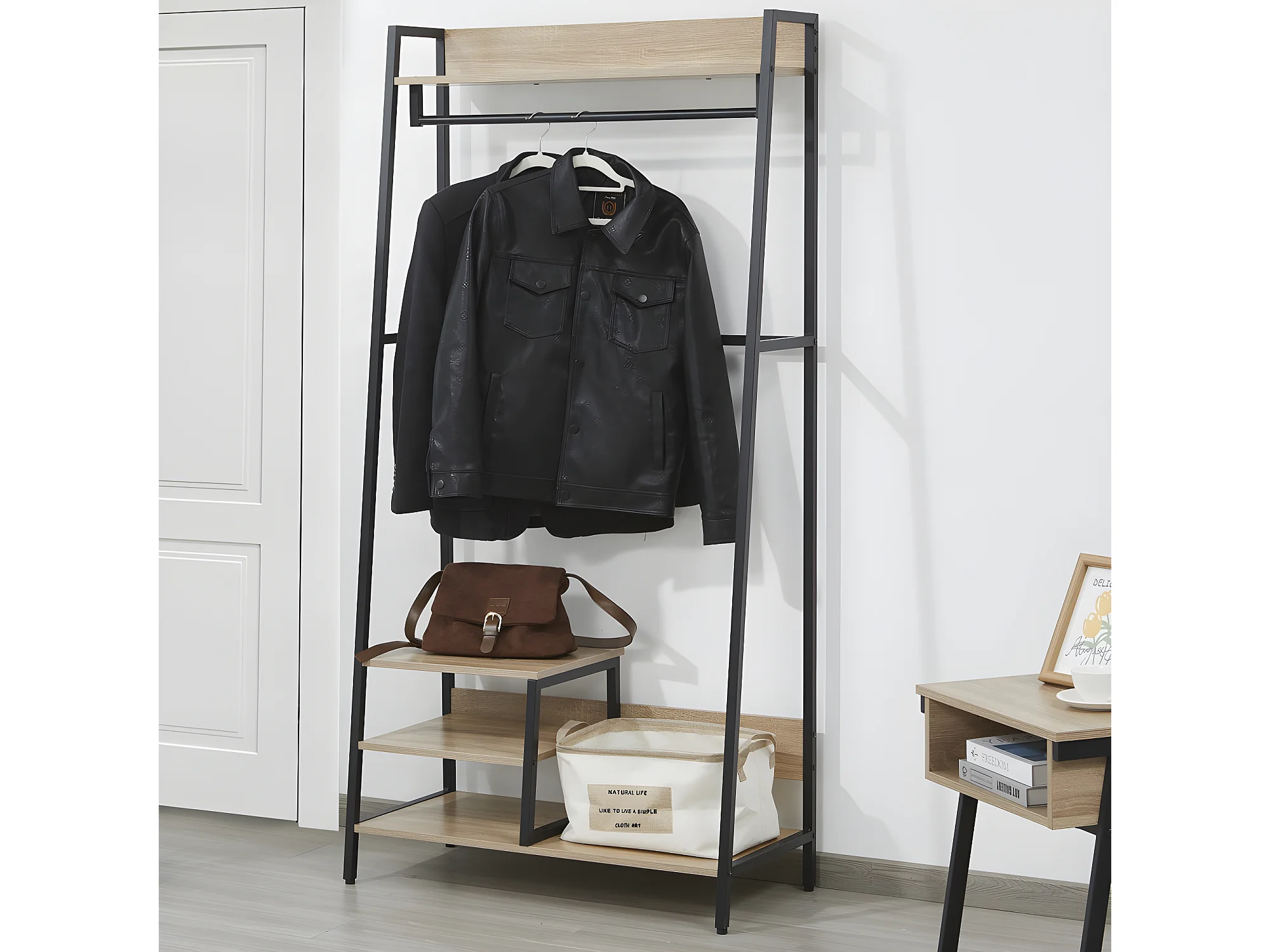 Penderie portant à vêtements style industriel en métal avec tringle et 4 étagères - dim. 100L x 46L x 170,5H cm - métal aspect chêne clair