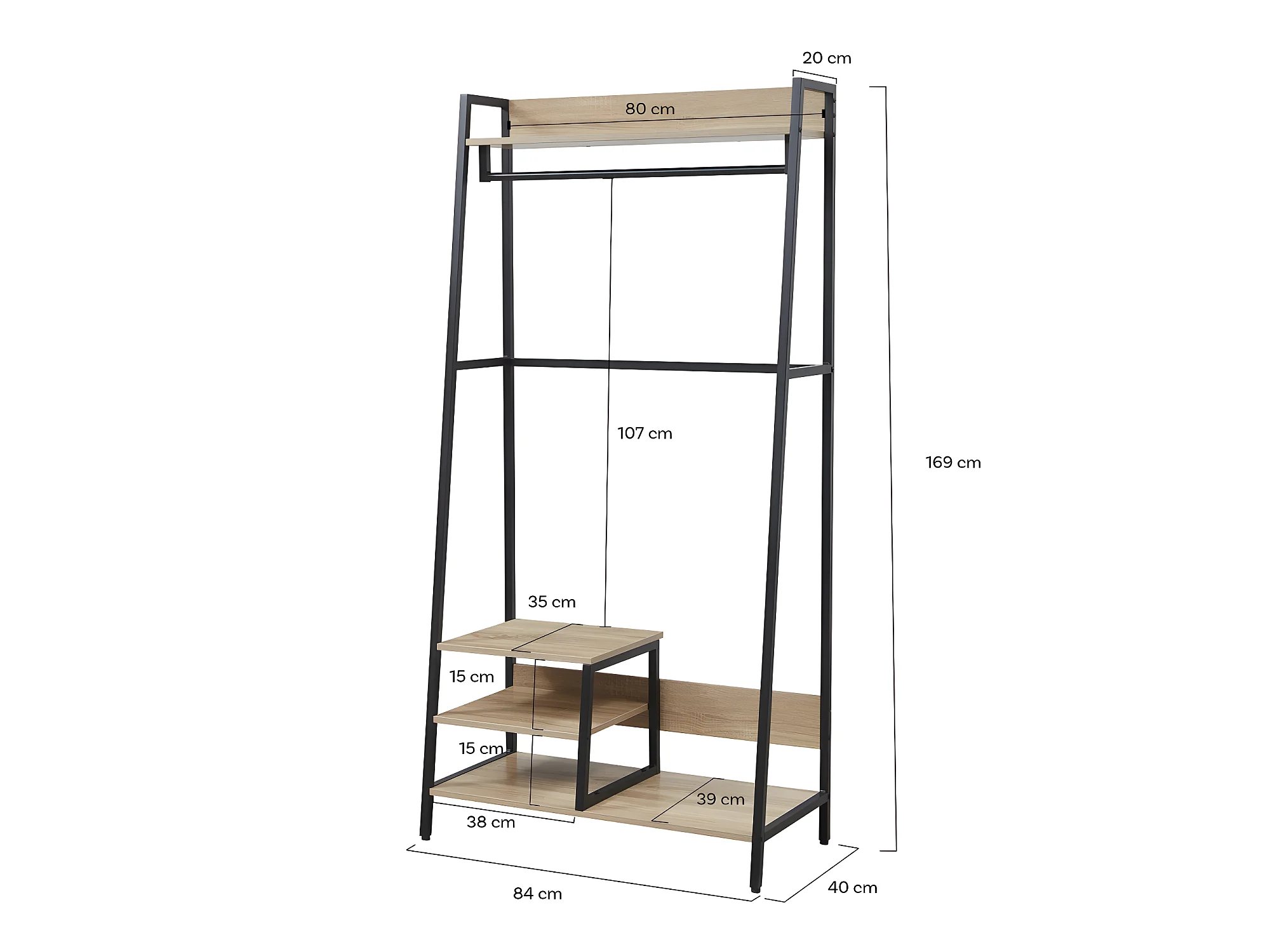 Valet de chambre MEDINA chevalet de nuit double portant pour vêtements, en MDF décor chêne sonoma et métal laqué noir