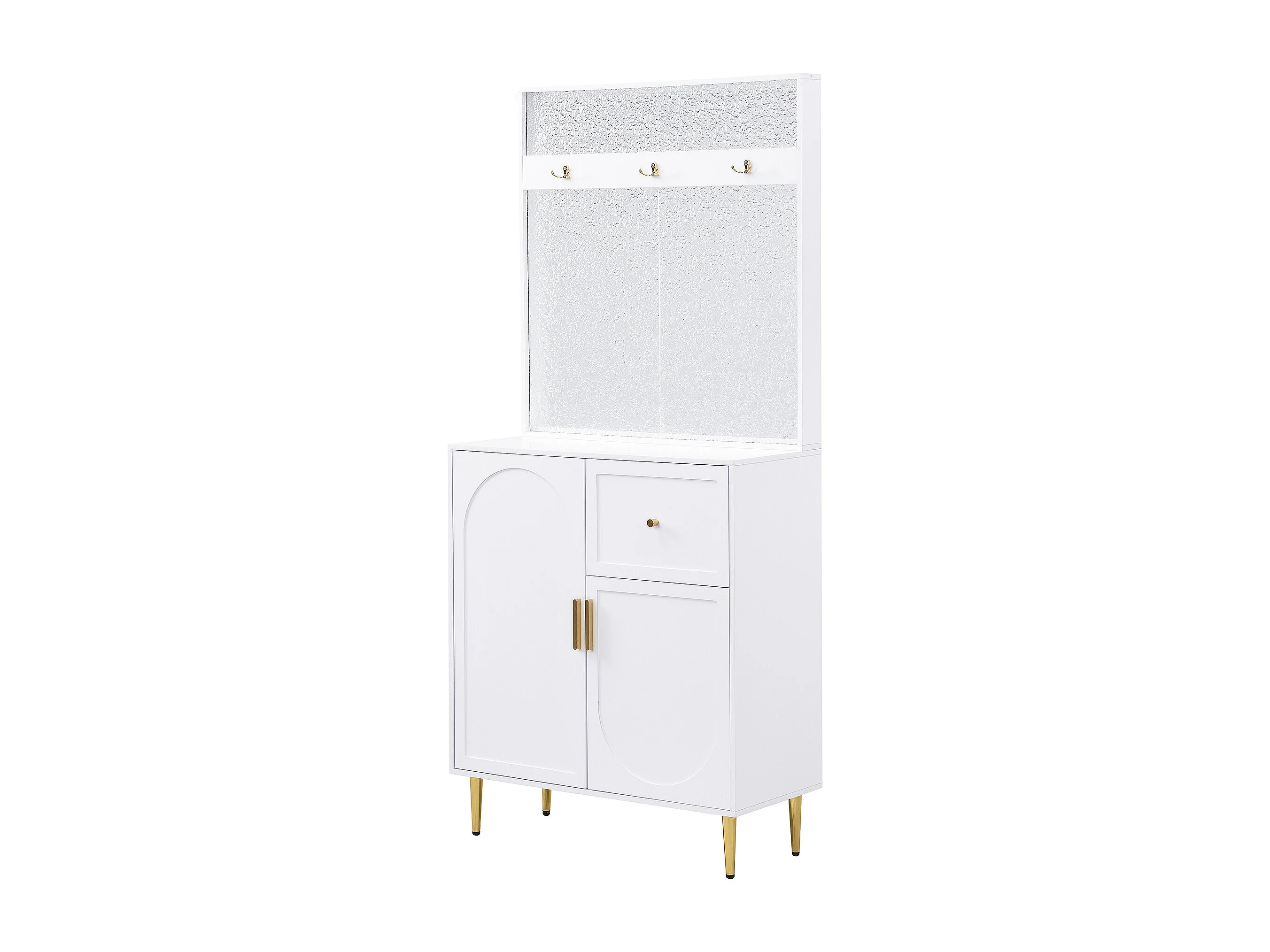 Vestiaire blanc - Porte manteau avec 3 tiroirs et 1 porte - 4 crochets et 3 compartiments ouverts