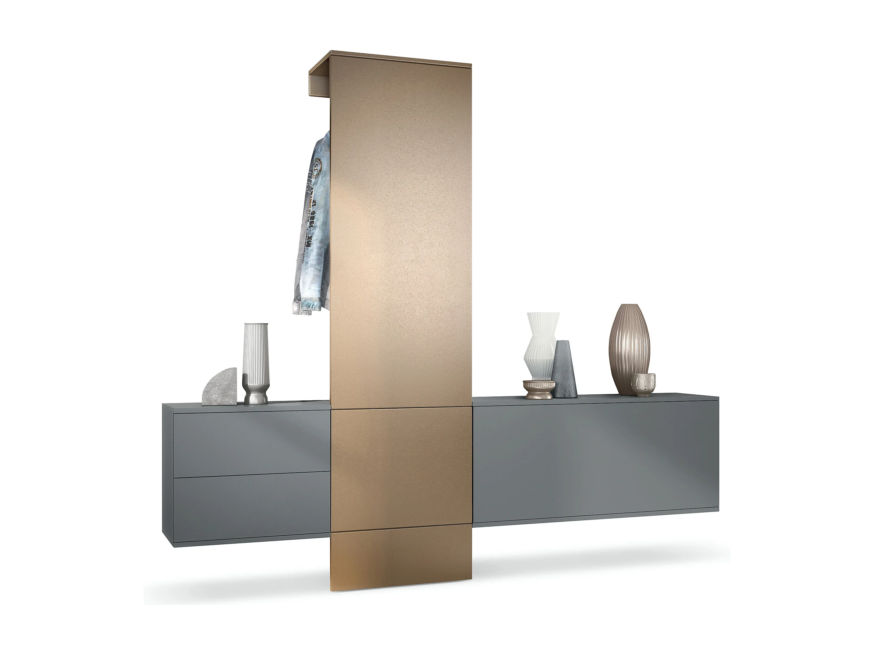Vestiaire Garderobe Carlton Set 1, Corps en anthracite mat / Panneau portemanteau en aspect bronzé (208 x 193 x 35 cm)