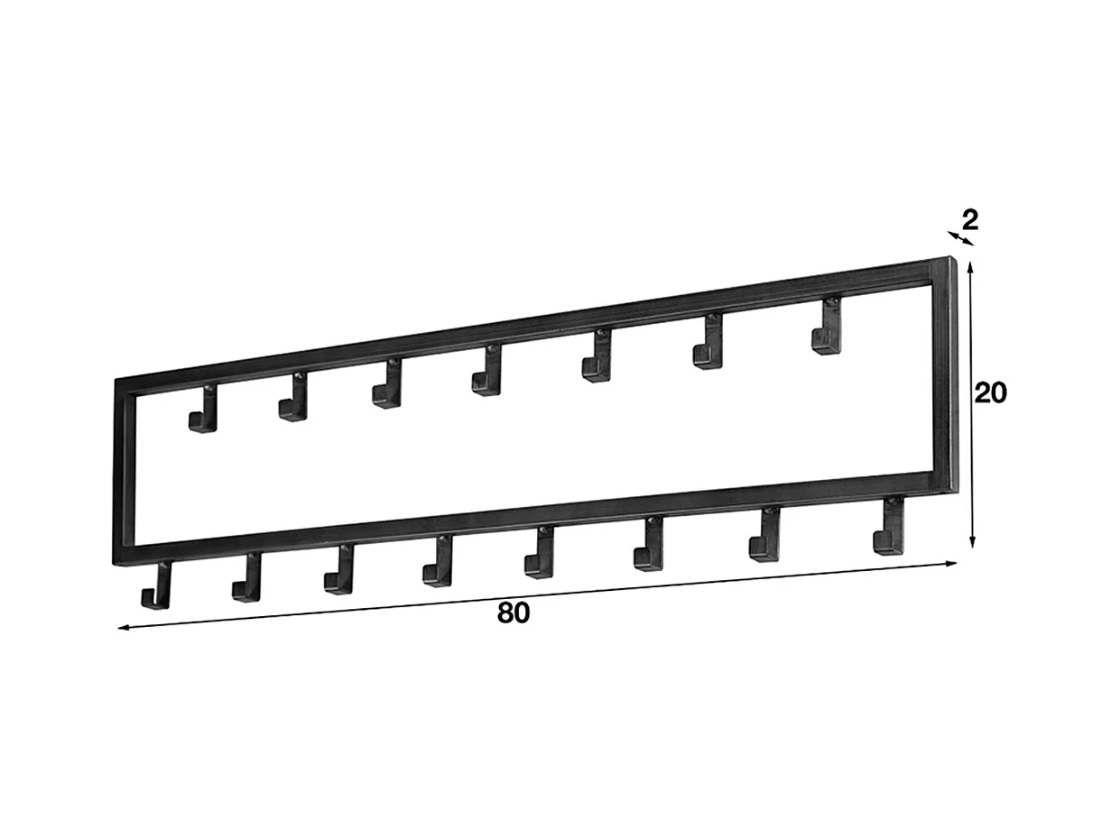 Porte-manteau industriel à 9 crochets - Gris - Porte-manteau mural 50 cm