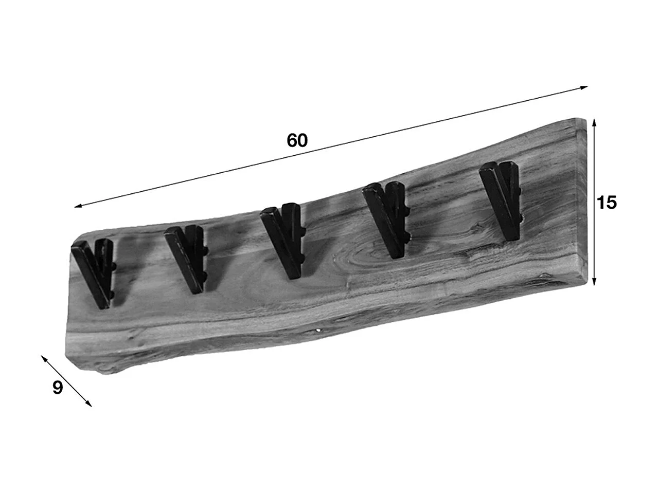 Portemanteau Dmagistrell, Portemanteau, Porte-vêtements polyvalent, Cintre mural, 63x14 h14 cm, Chêne