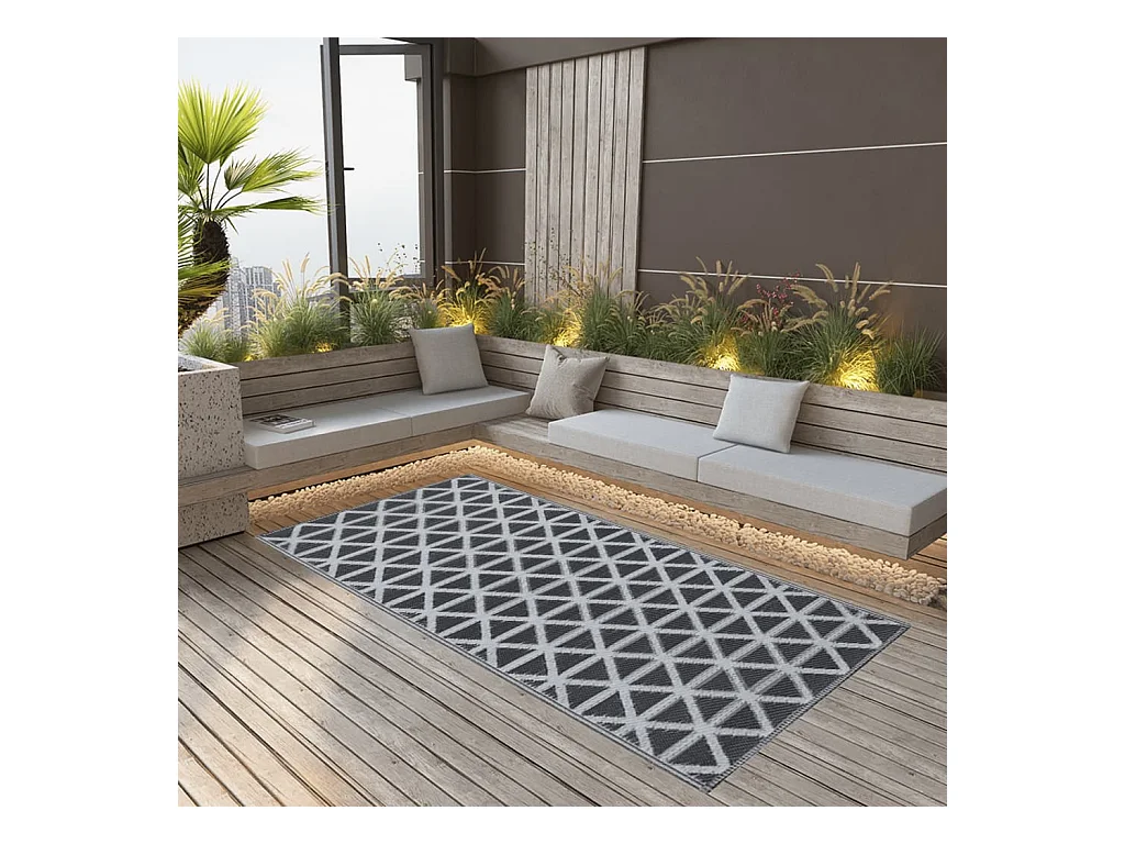Tapis d'extérieur rectangulaire réversible motif Perse noir/blanc - 186 x 119 cm
