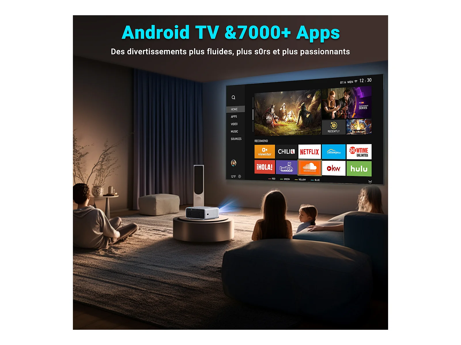 Videoprojecteur【Auto Focus】Rétroprojecteur 4K Supporté, 35000 Lumen UHD, WiFi 5G+2.4G, Screencasting iOS/Android/Windows