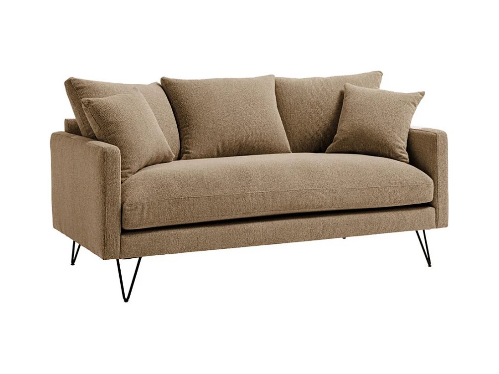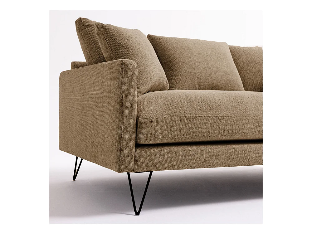 Villabon - Canapé 3 places en tissu pieds épingles noirs - Caramel chiné