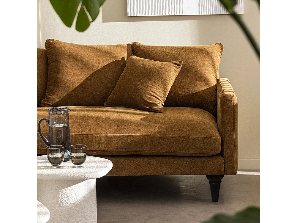 Villabon - Canapé 3 places en tissu pieds tournés - Bronze