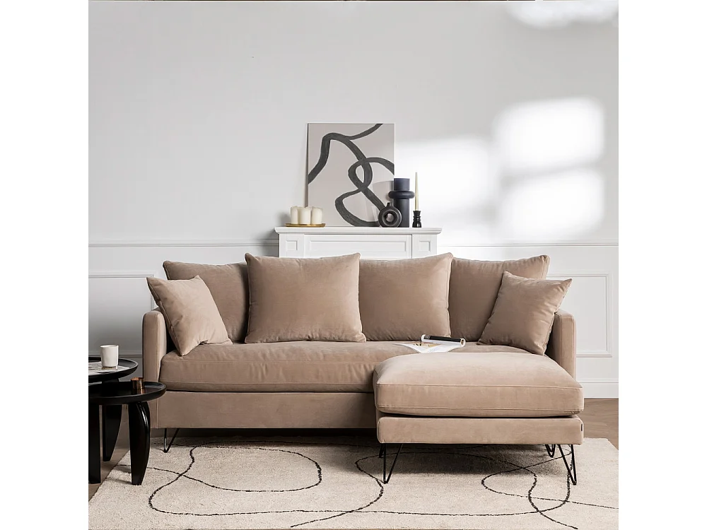 Villabon - Canapé 3 places en velours pieds épingles noirs - Beige