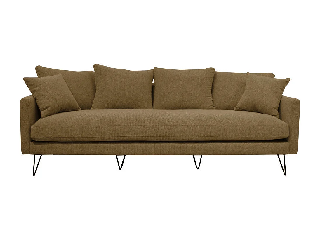 Villabon - Canapé 4 places en tissu pieds épingles noirs - Caramel