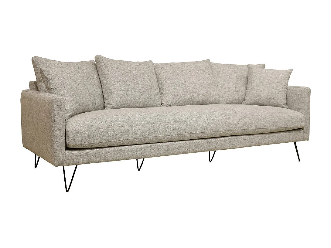 Villabon - Canapé 4 places en tissu pieds épingles noirs - Naturel