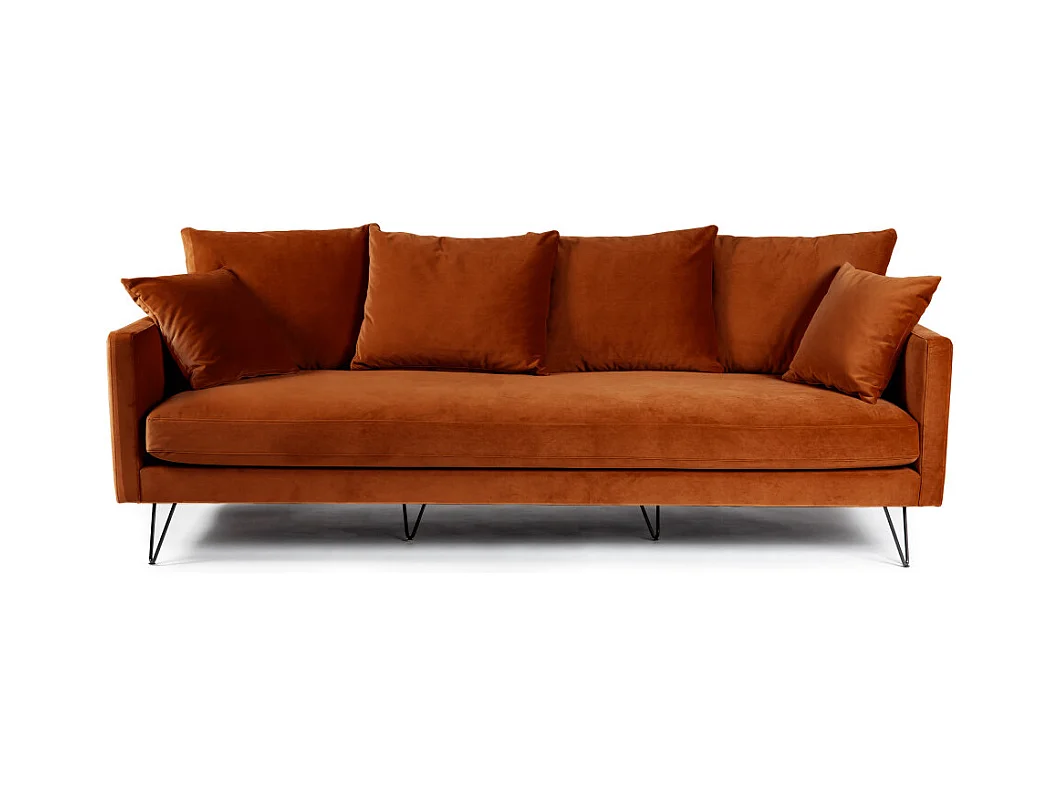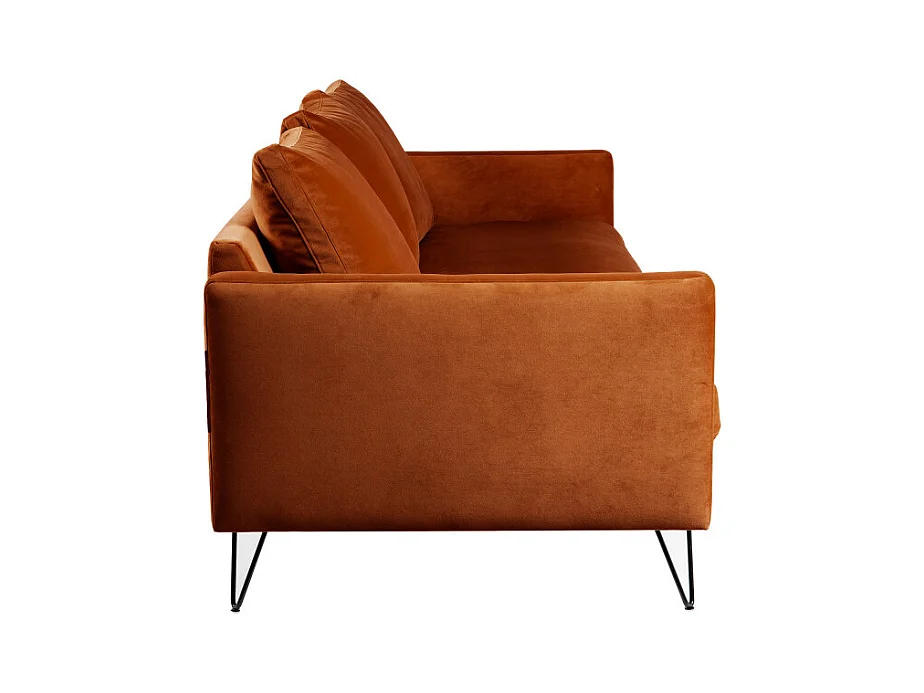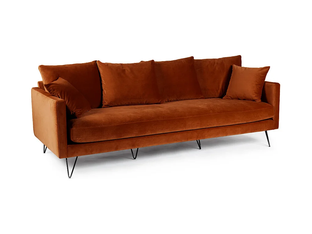 Villabon - Canapé 4 places en velours pieds épingles noirs - Rouille