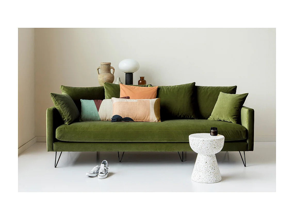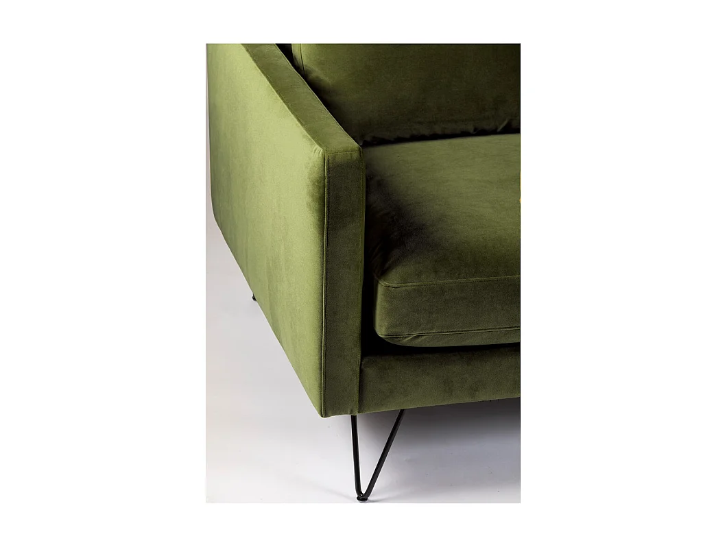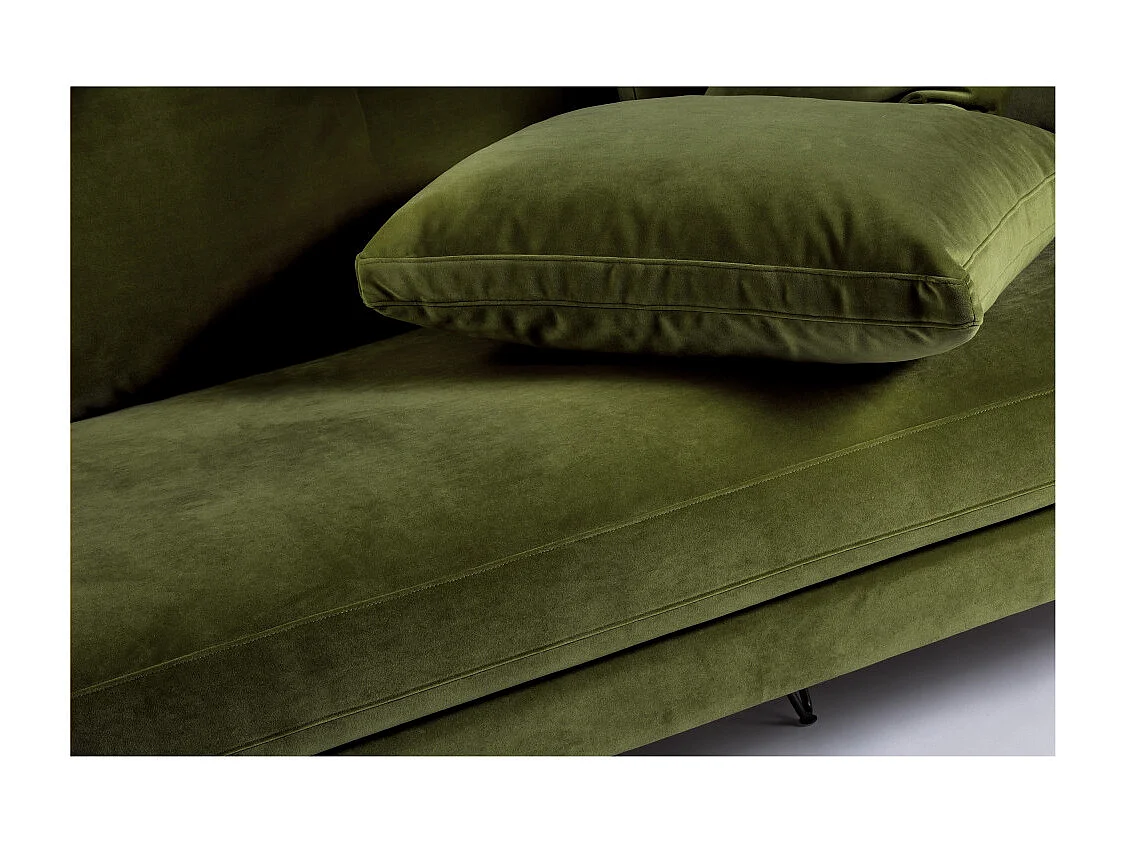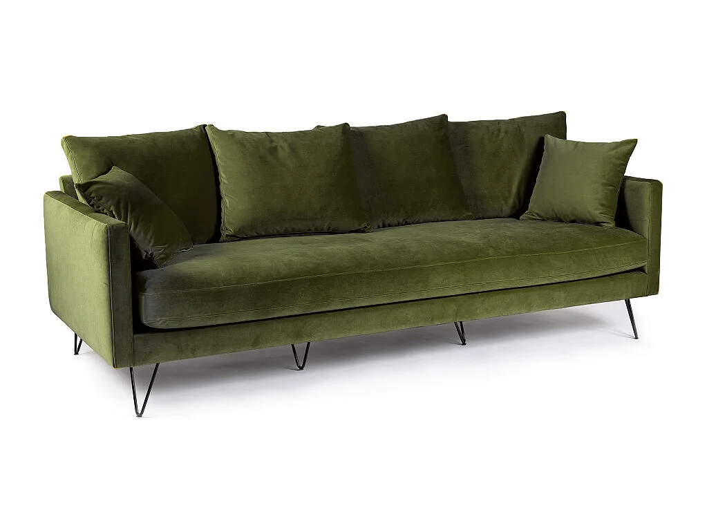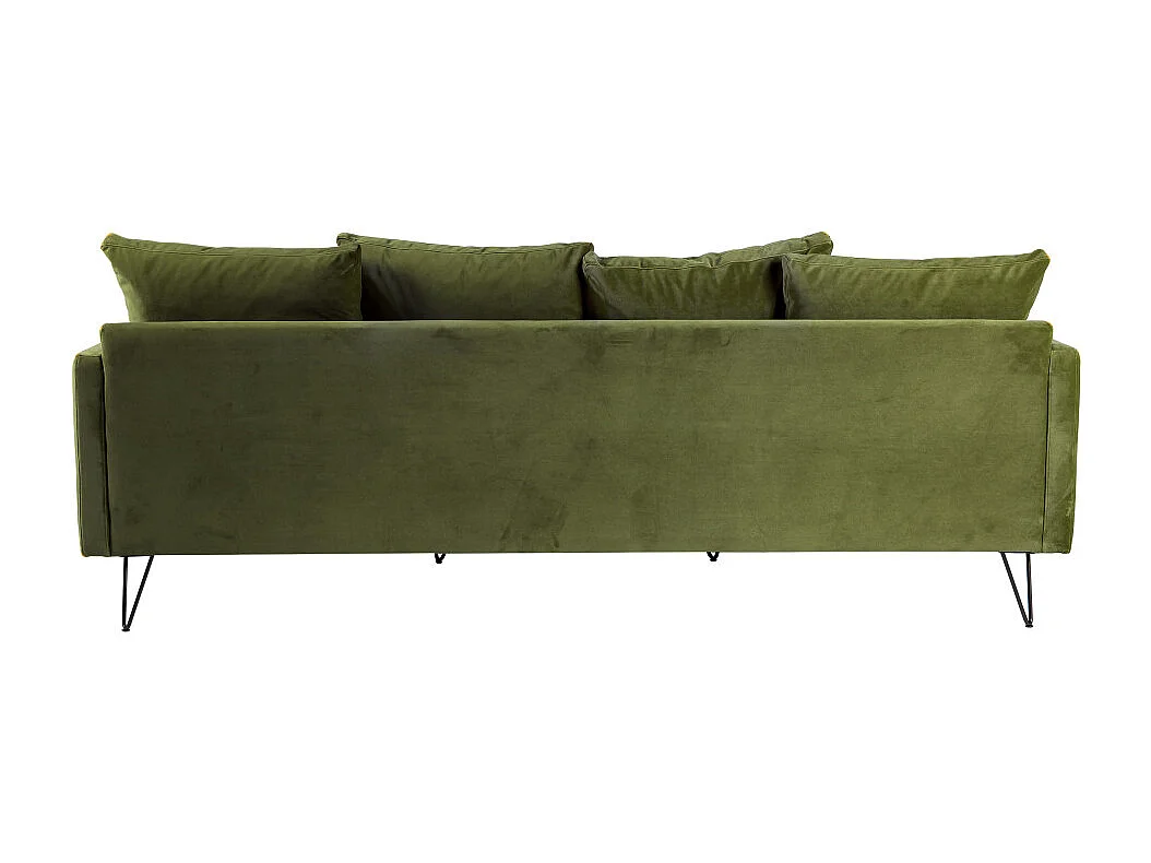 Villabon - Canapé 4 places en velours pieds épingles noirs - Vert olive
