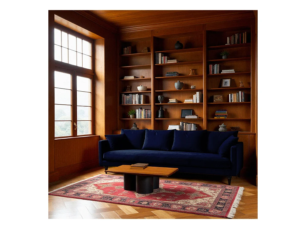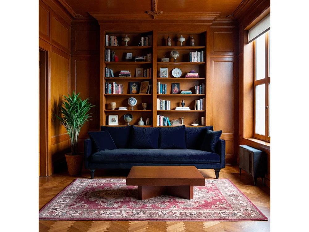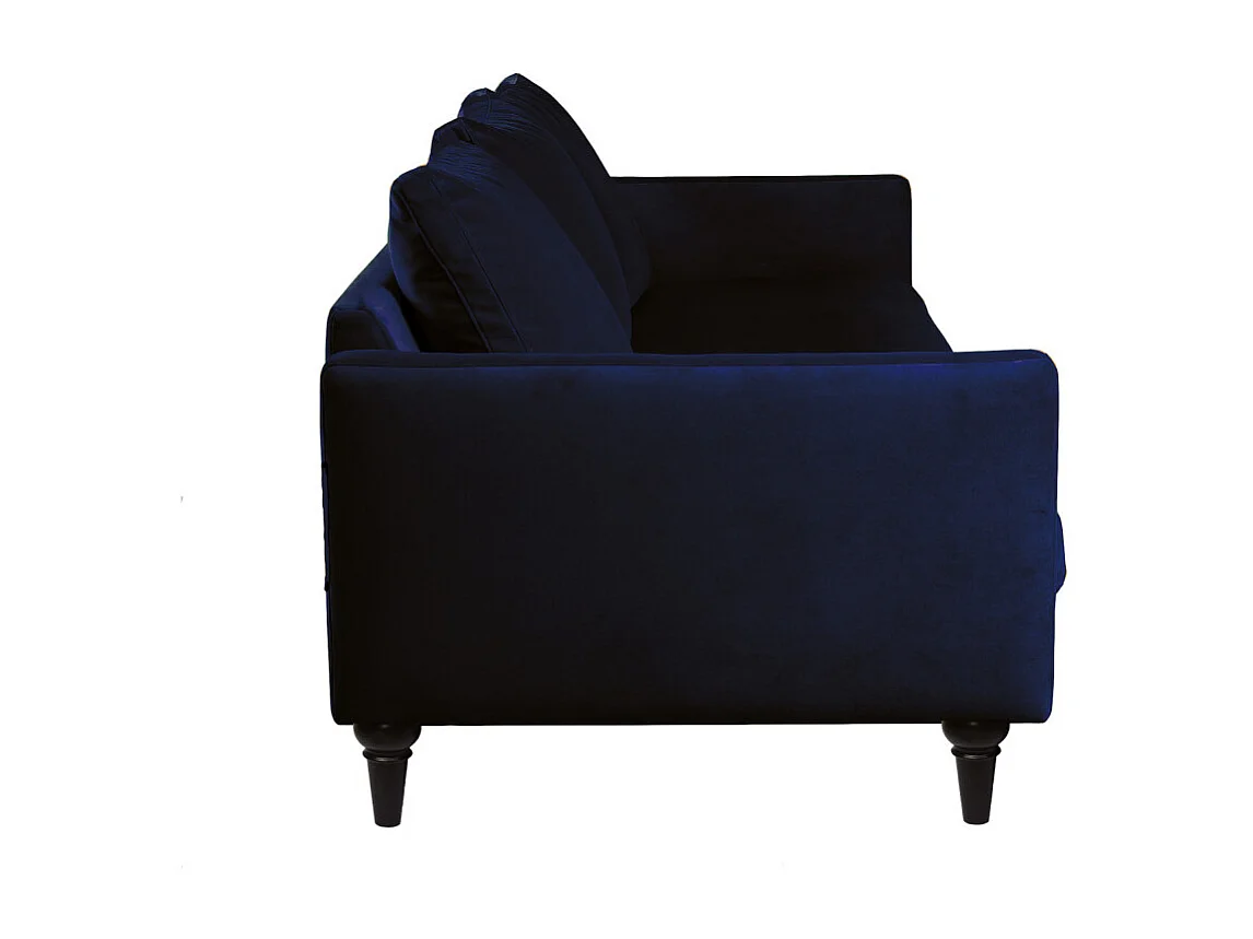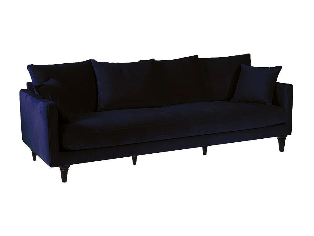 Villabon - Canapé 4 places en velours pieds tournés - Bleu marine