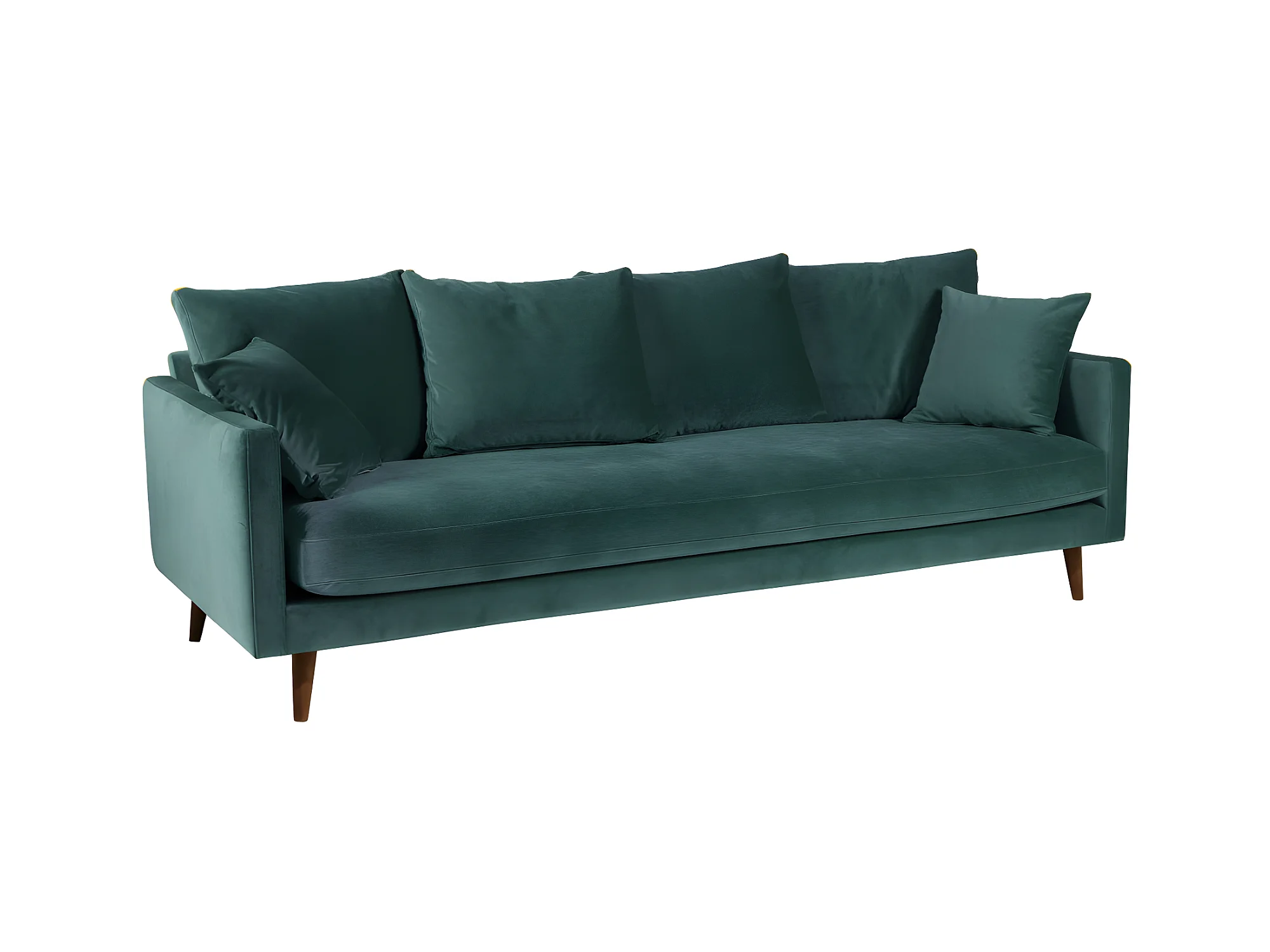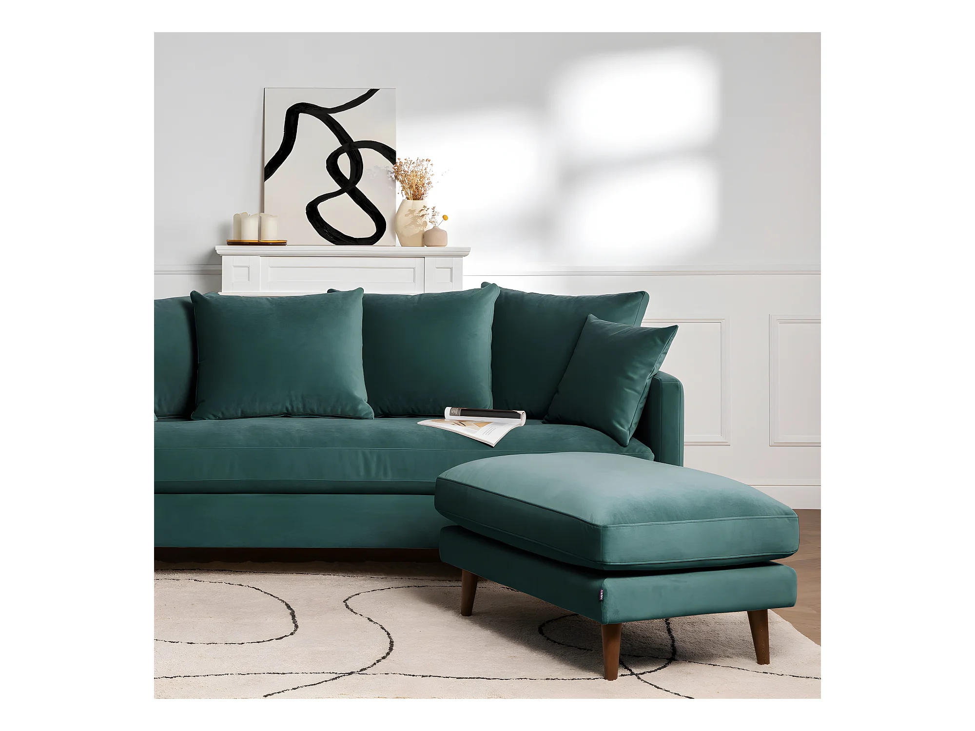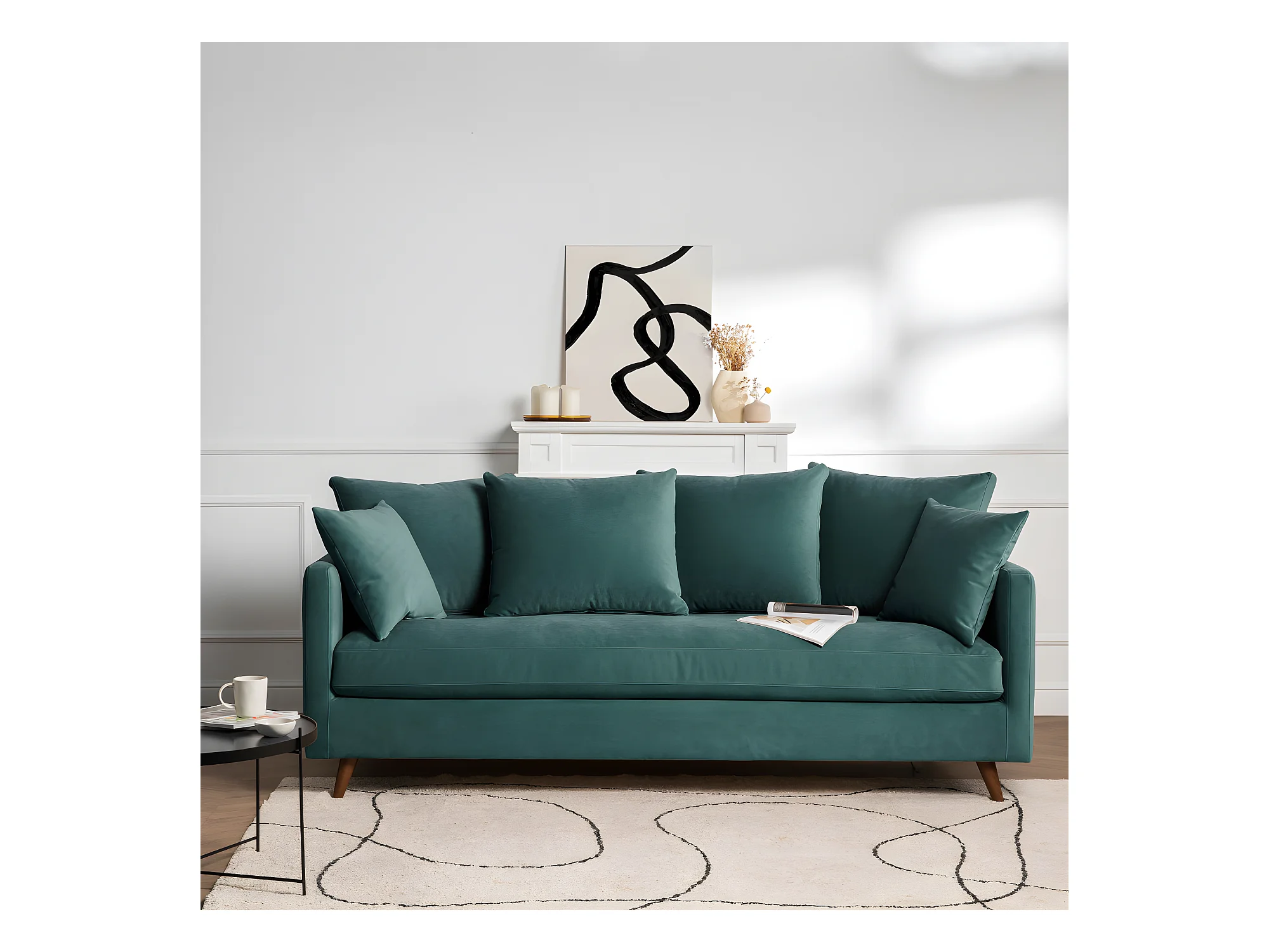 Villabon - Canapé convertible 3 places en velours pieds bois foncé - vert eucalyptus