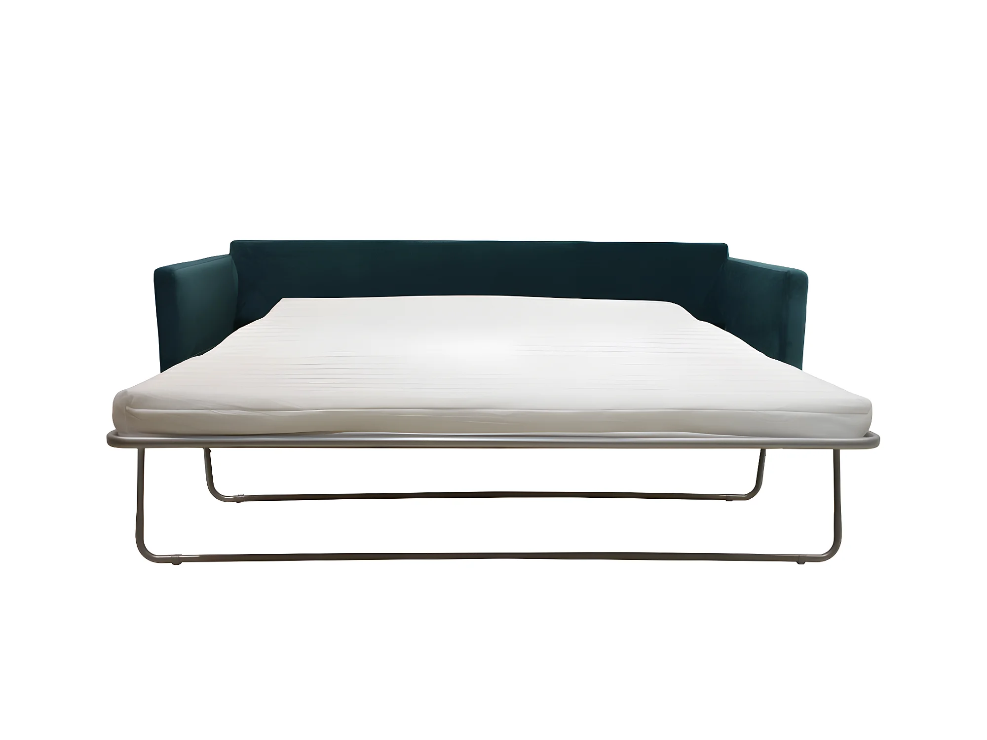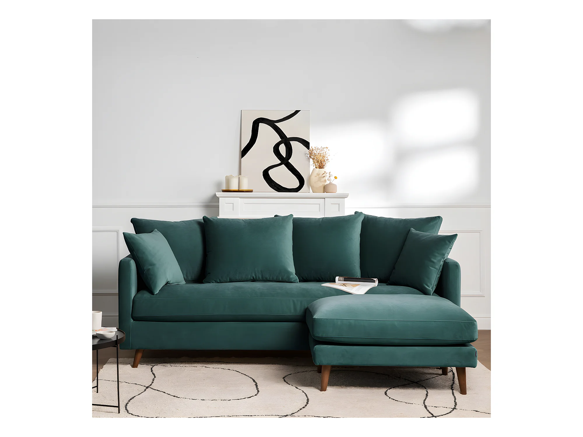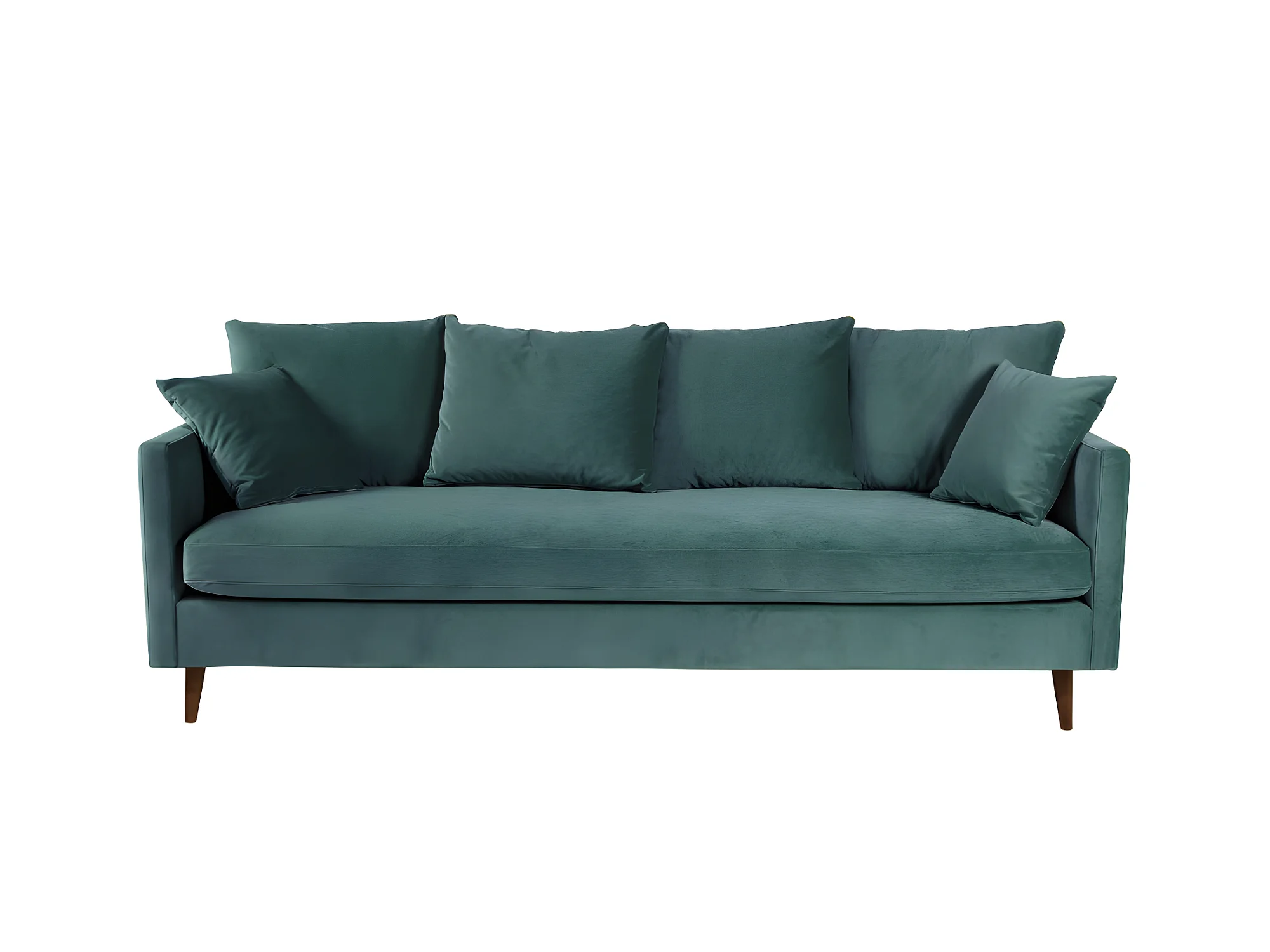 Villabon - Canapé convertible 3 places en velours pieds bois foncé - vert eucalyptus