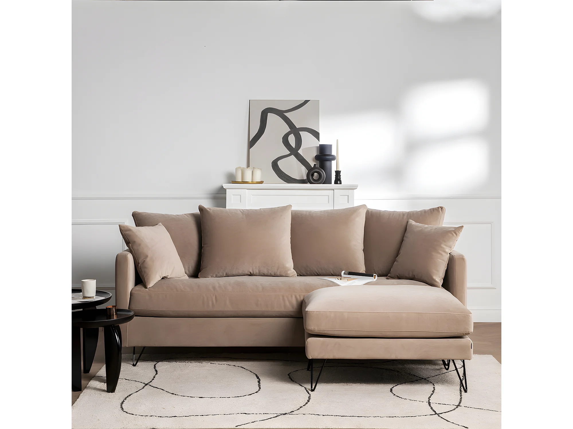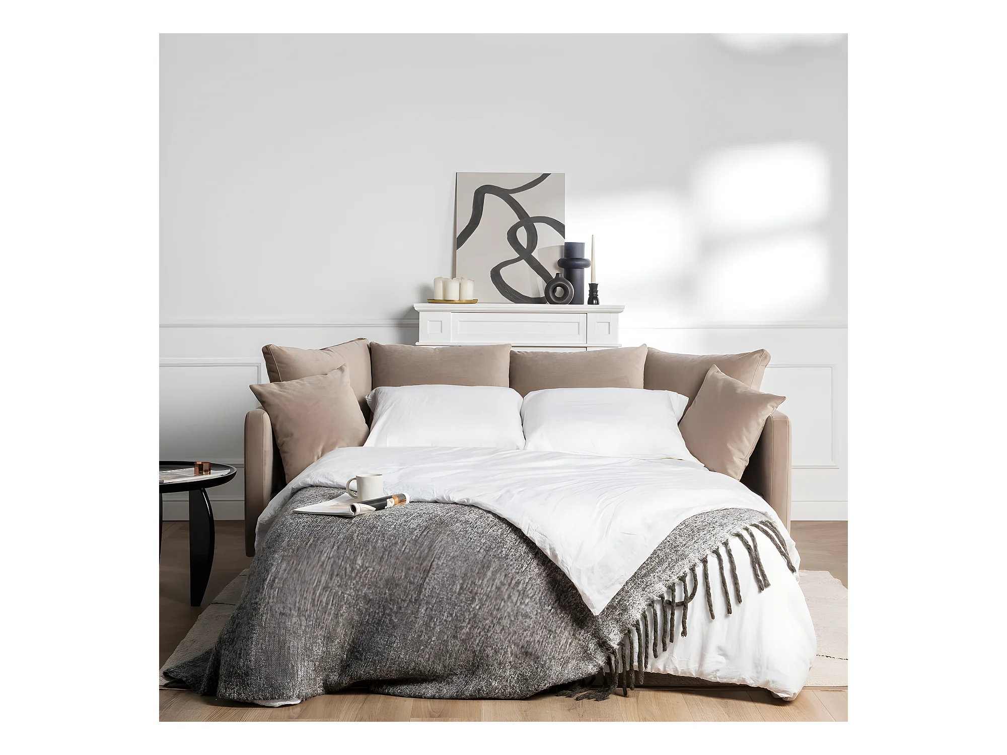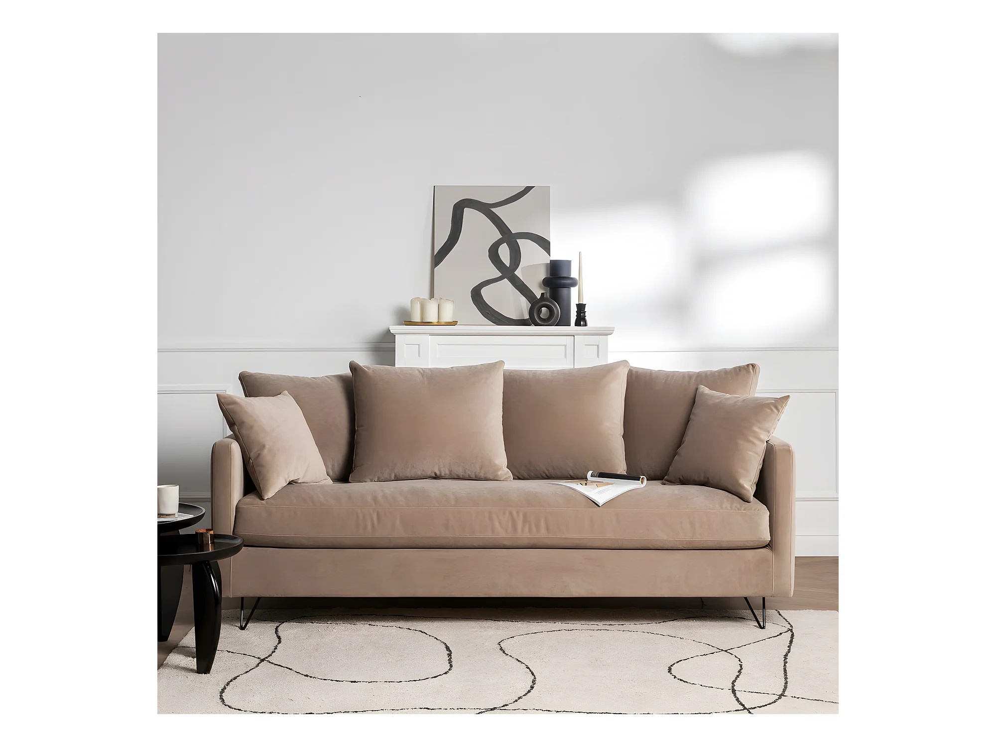 Villabon - Canapé convertible 3 places en velours pieds épingles noirs - Beige