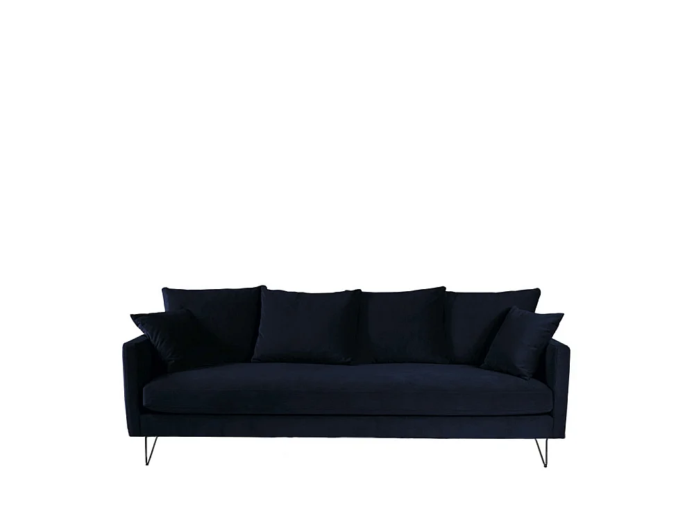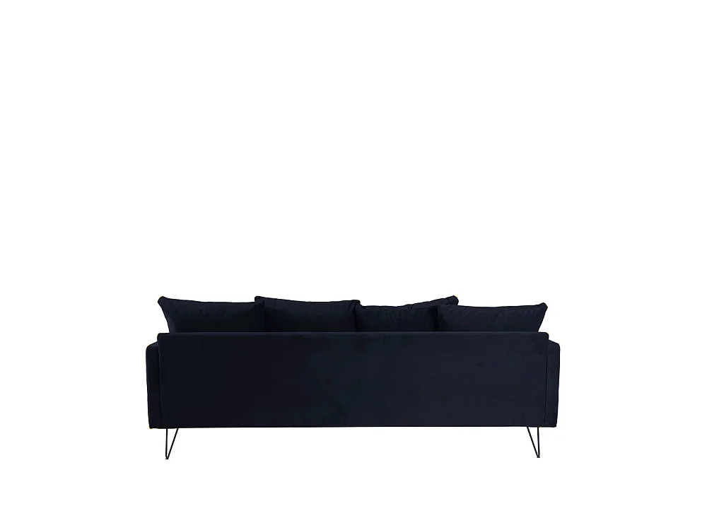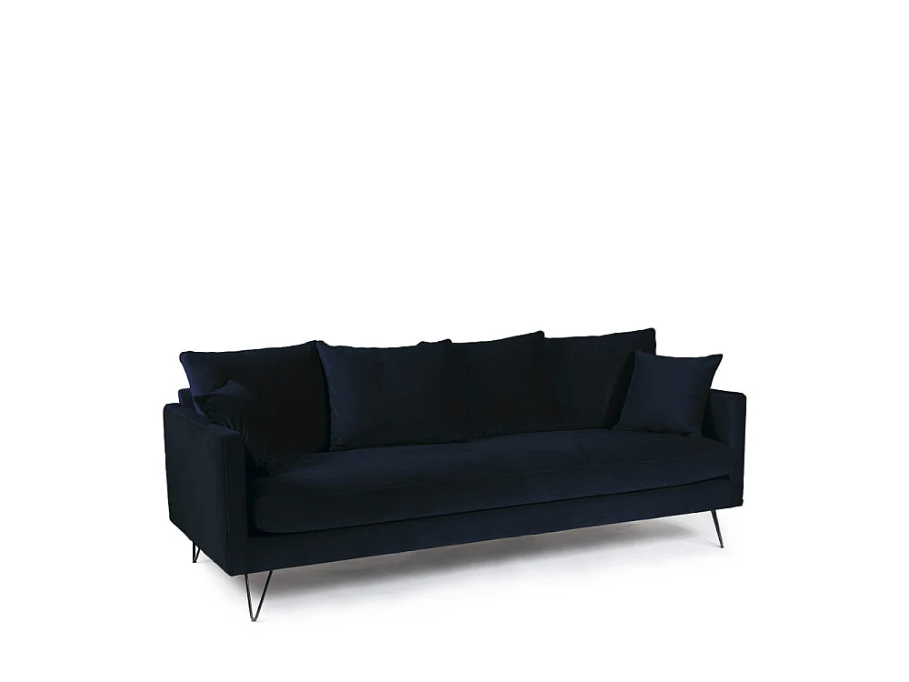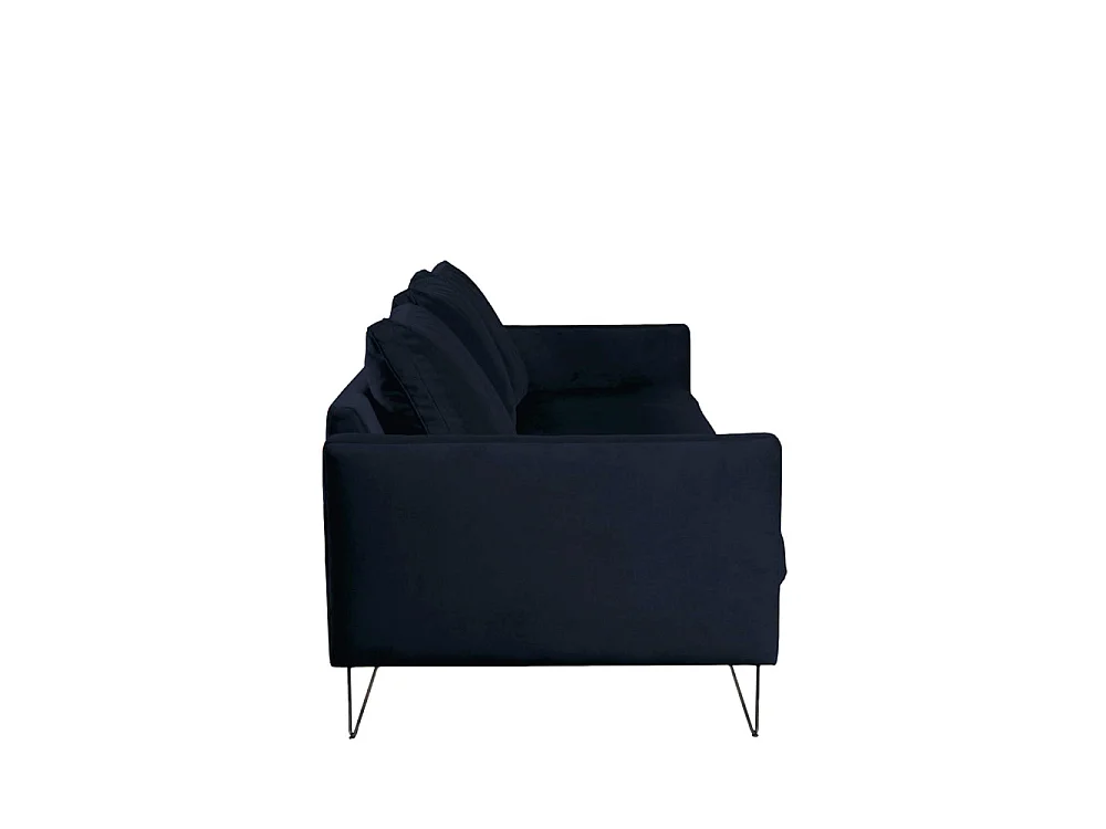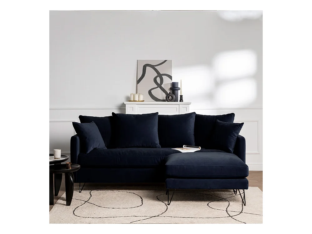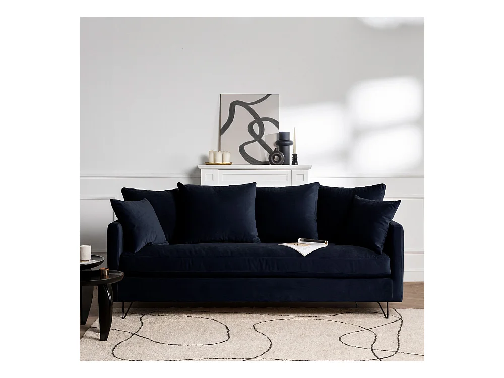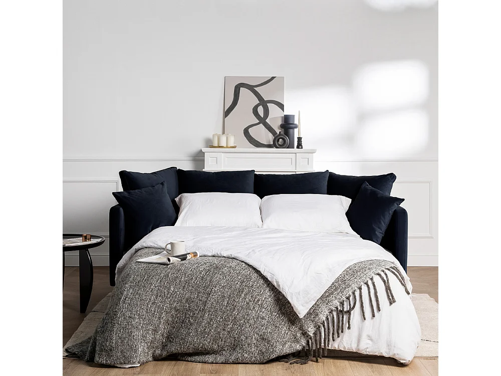 Villabon - Canapé convertible 3 places en velours pieds épingles noirs - Bleu marine