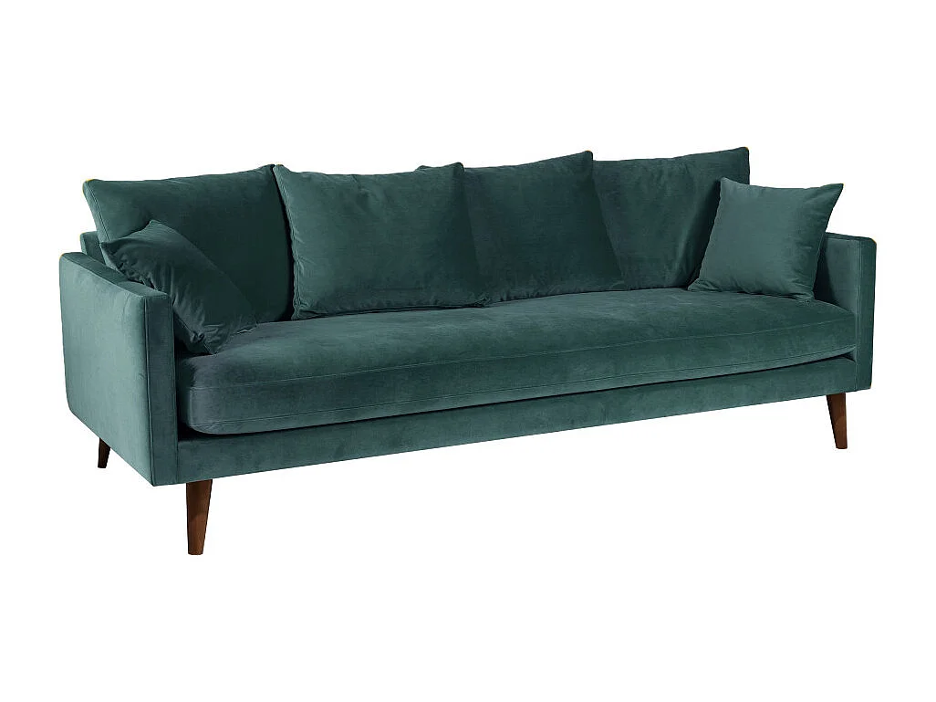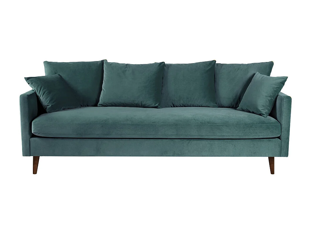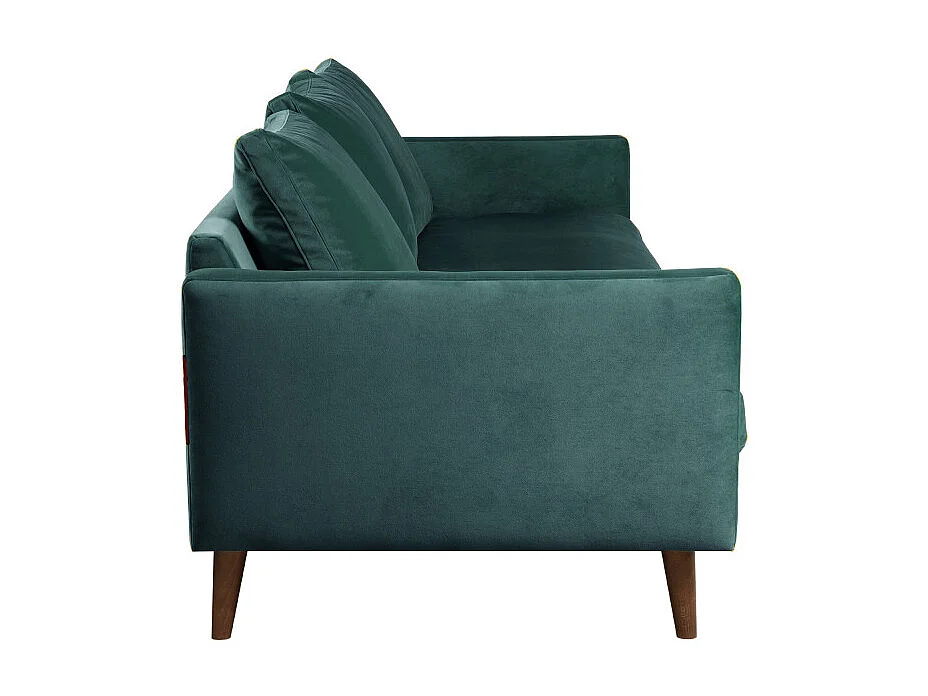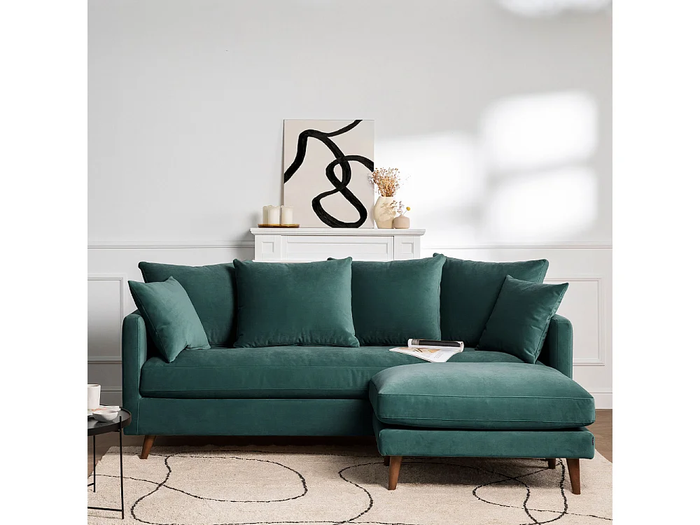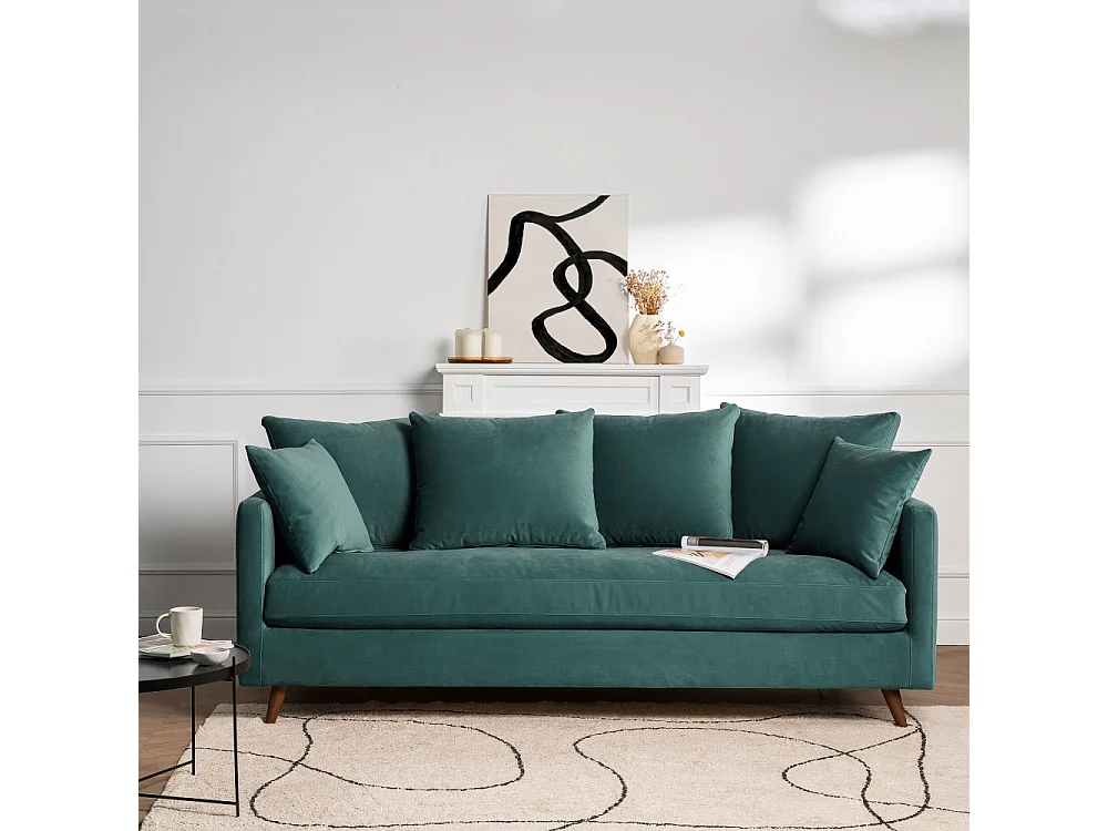 Villabon - Canapé convertible 4 places en velours pieds bois foncé - vert eucalyptus
