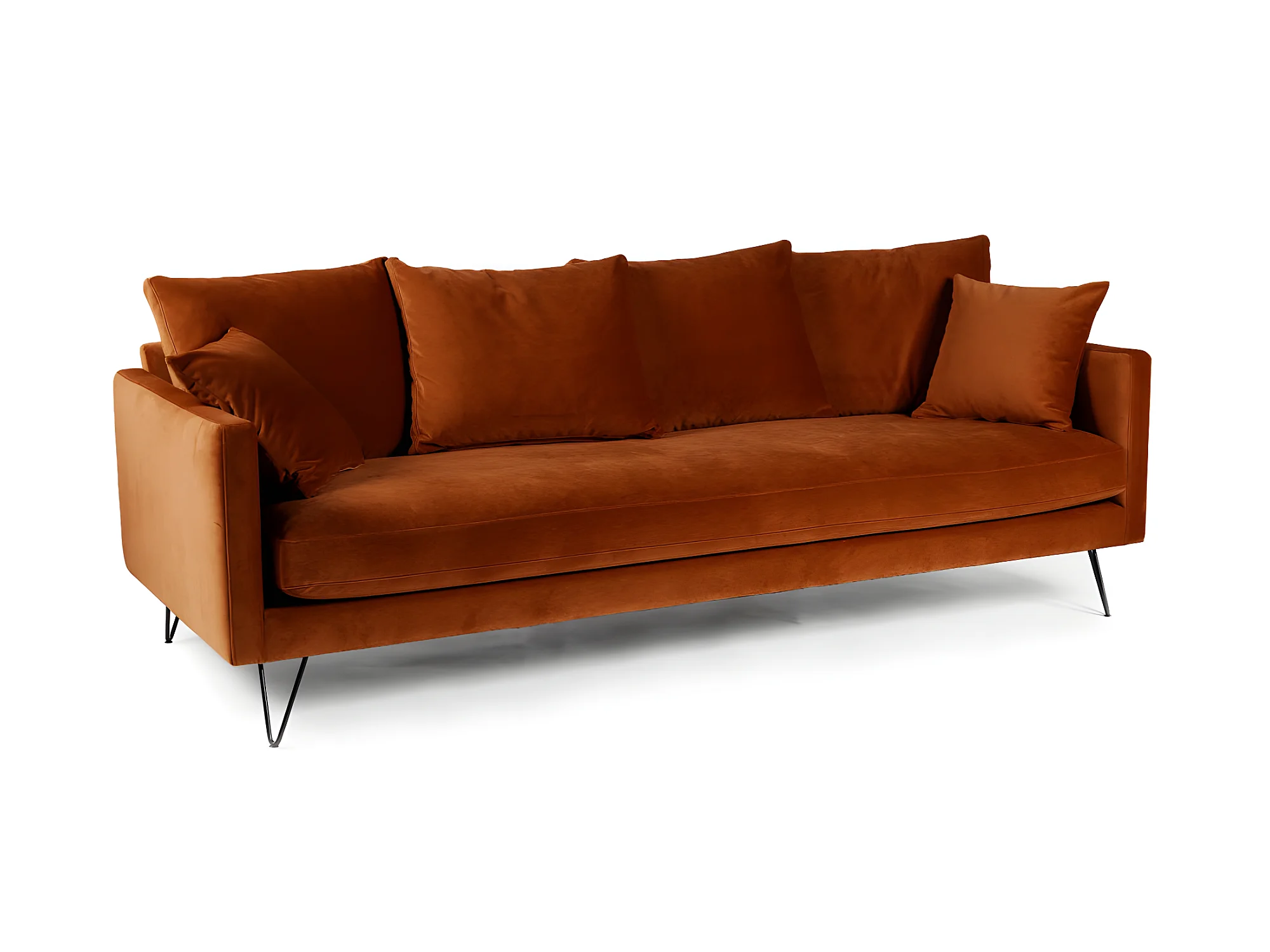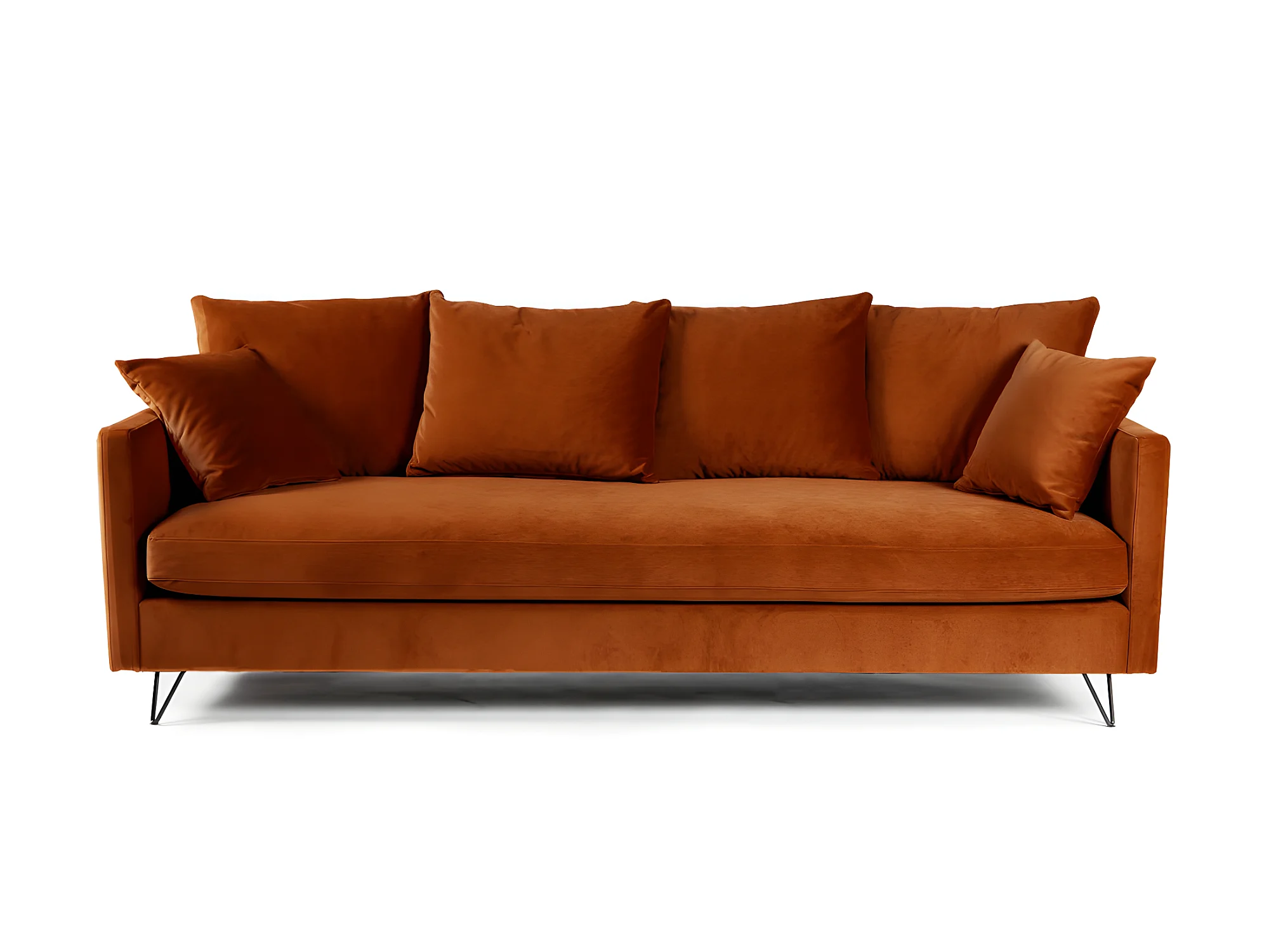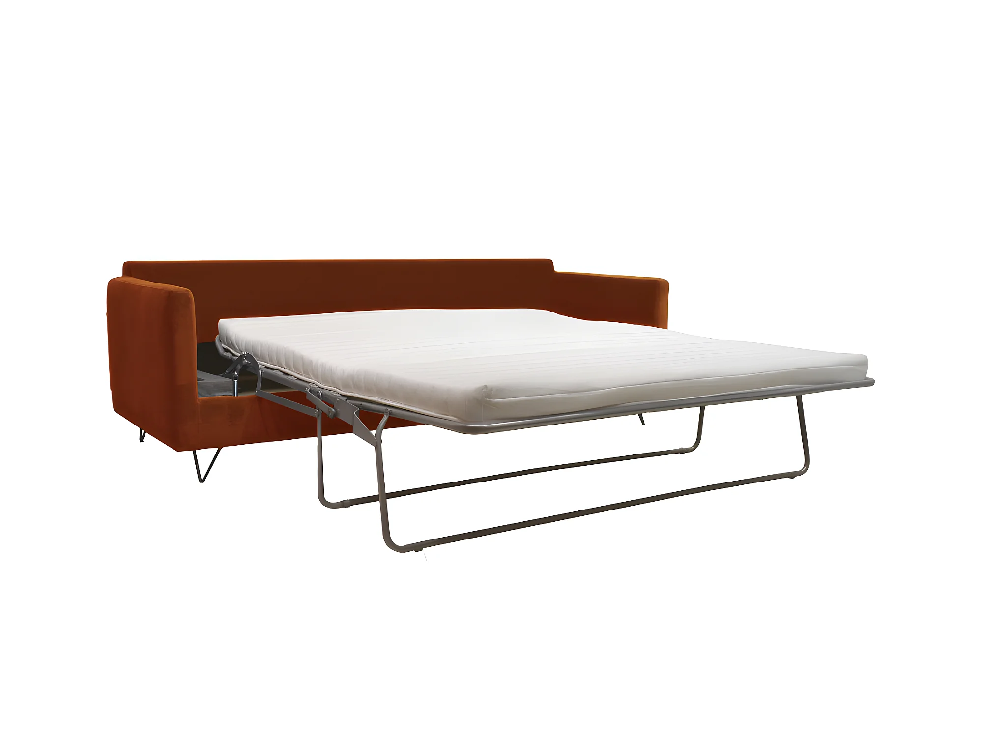 Villabon - Canapé convertible 4 places en velours pieds épingles noirs - Rouille