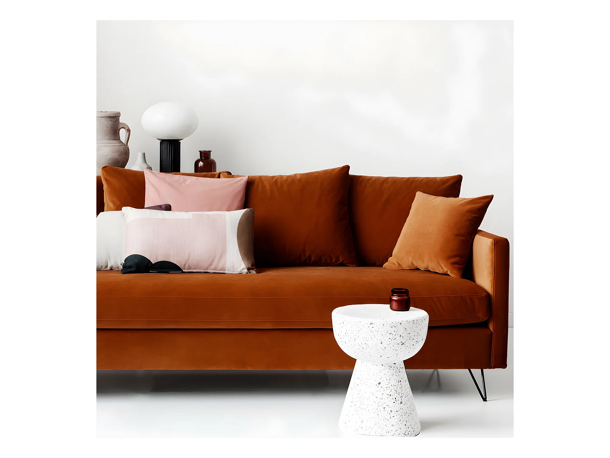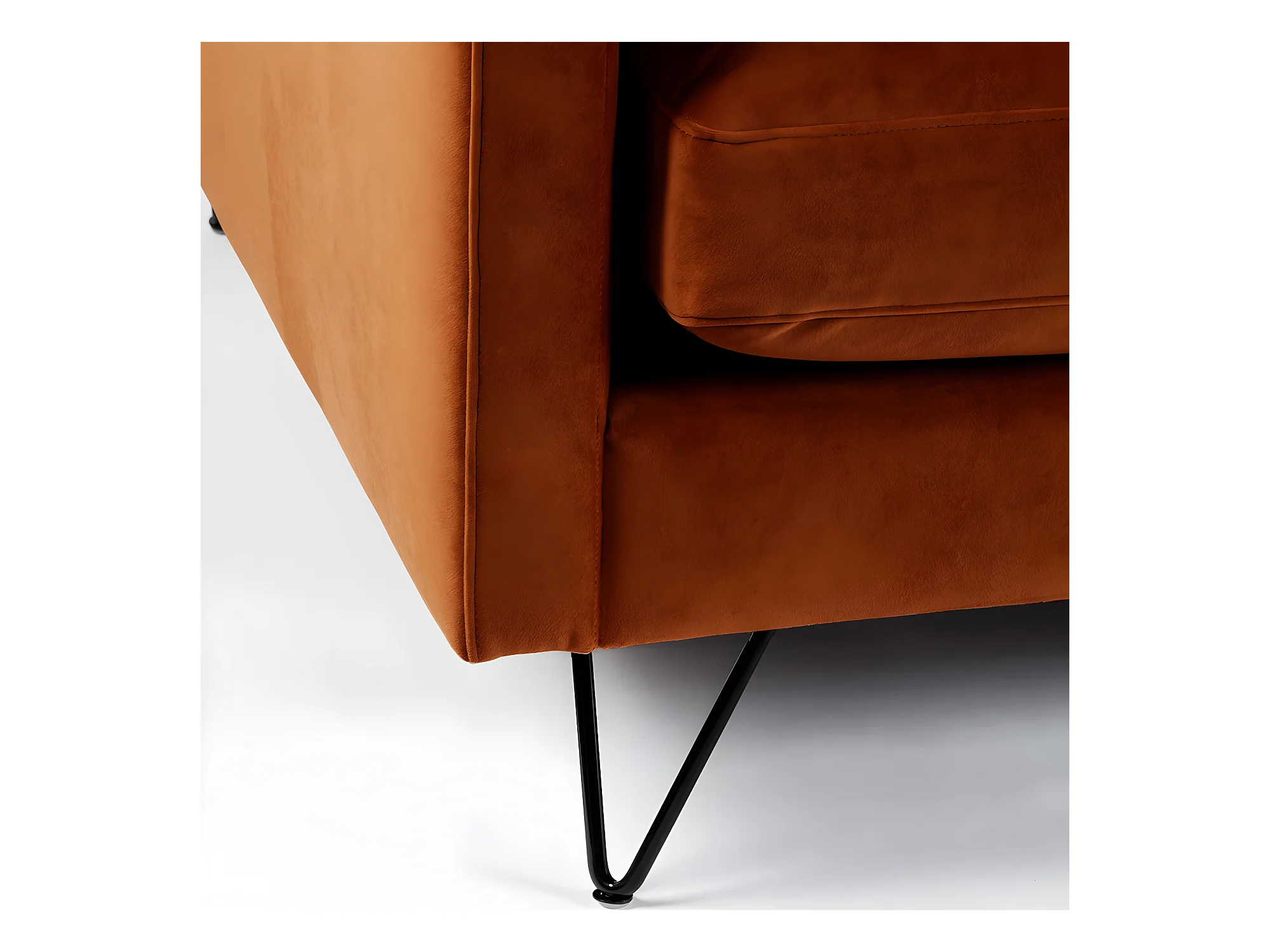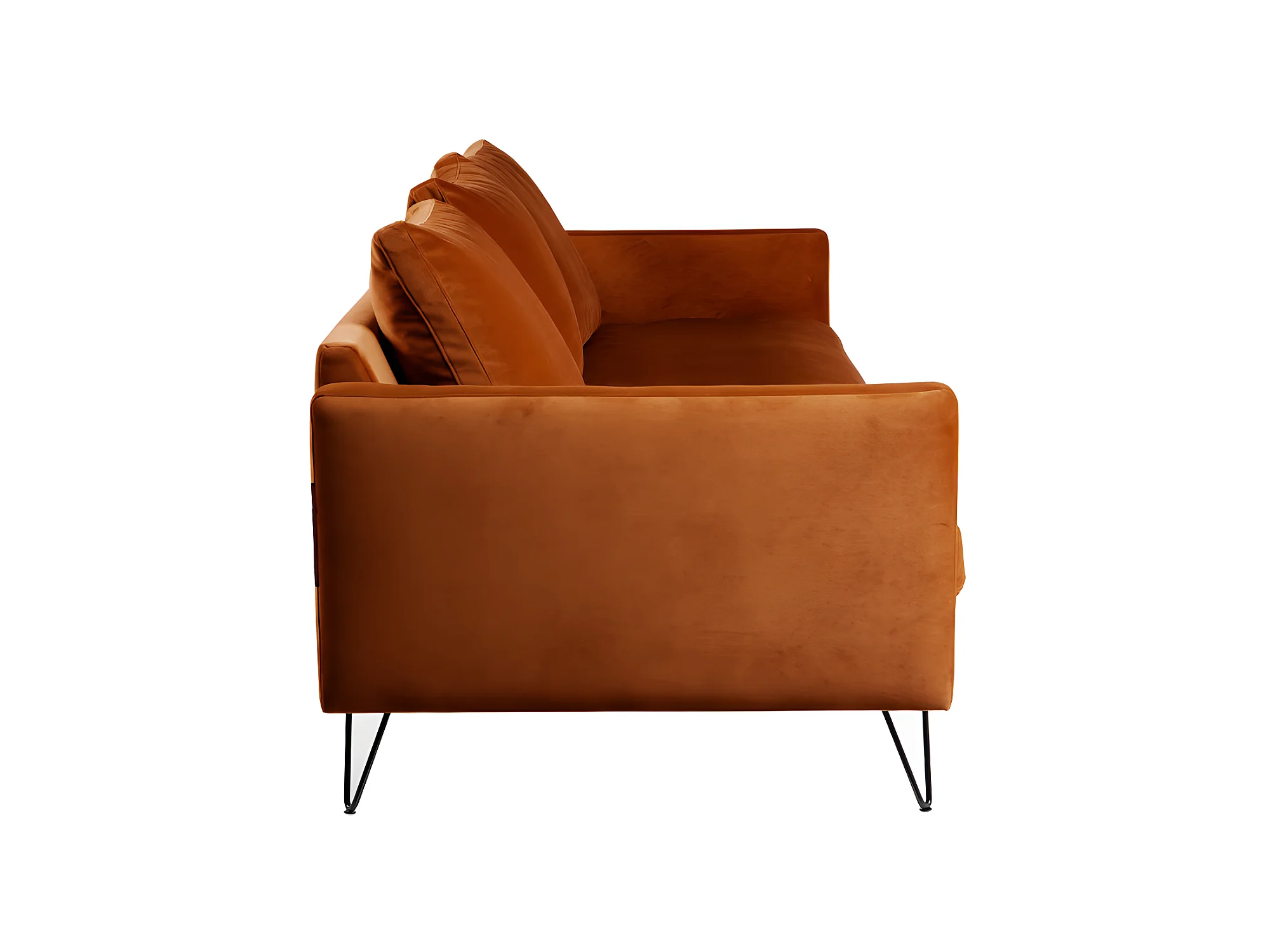 Villabon - Canapé convertible 4 places en velours pieds épingles noirs - Rouille