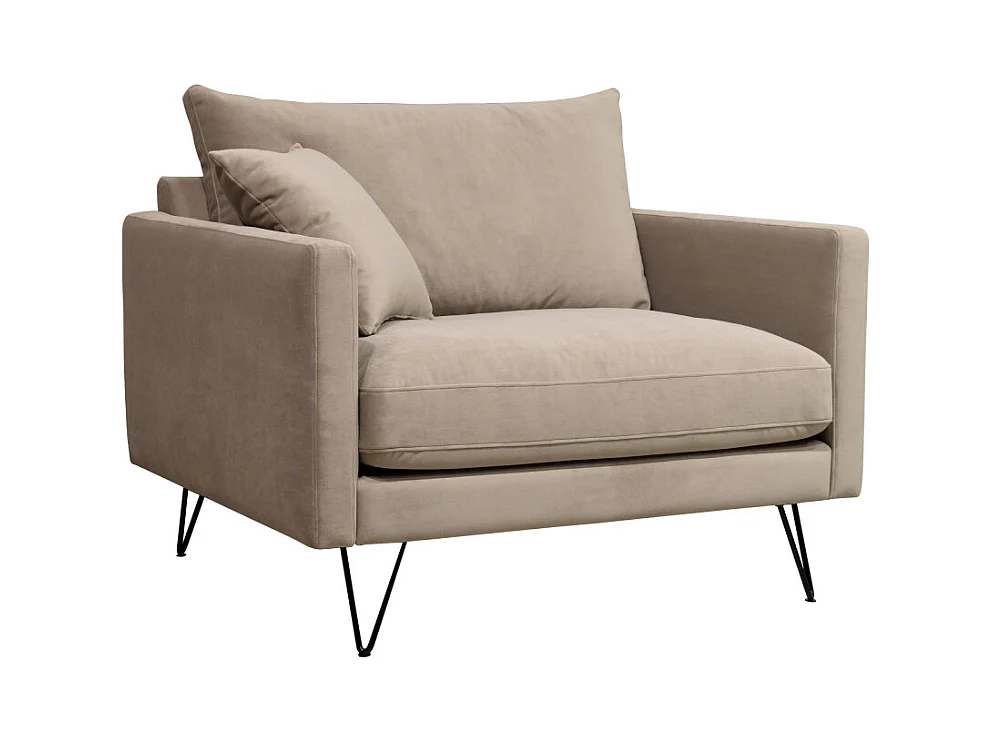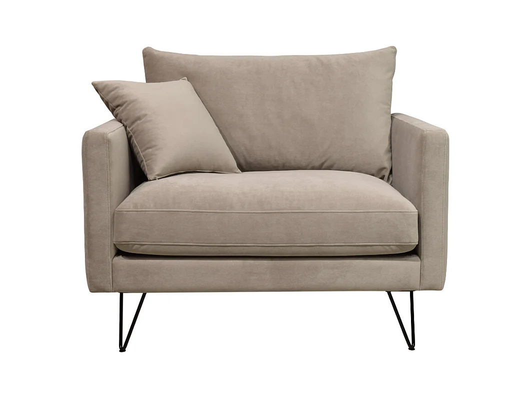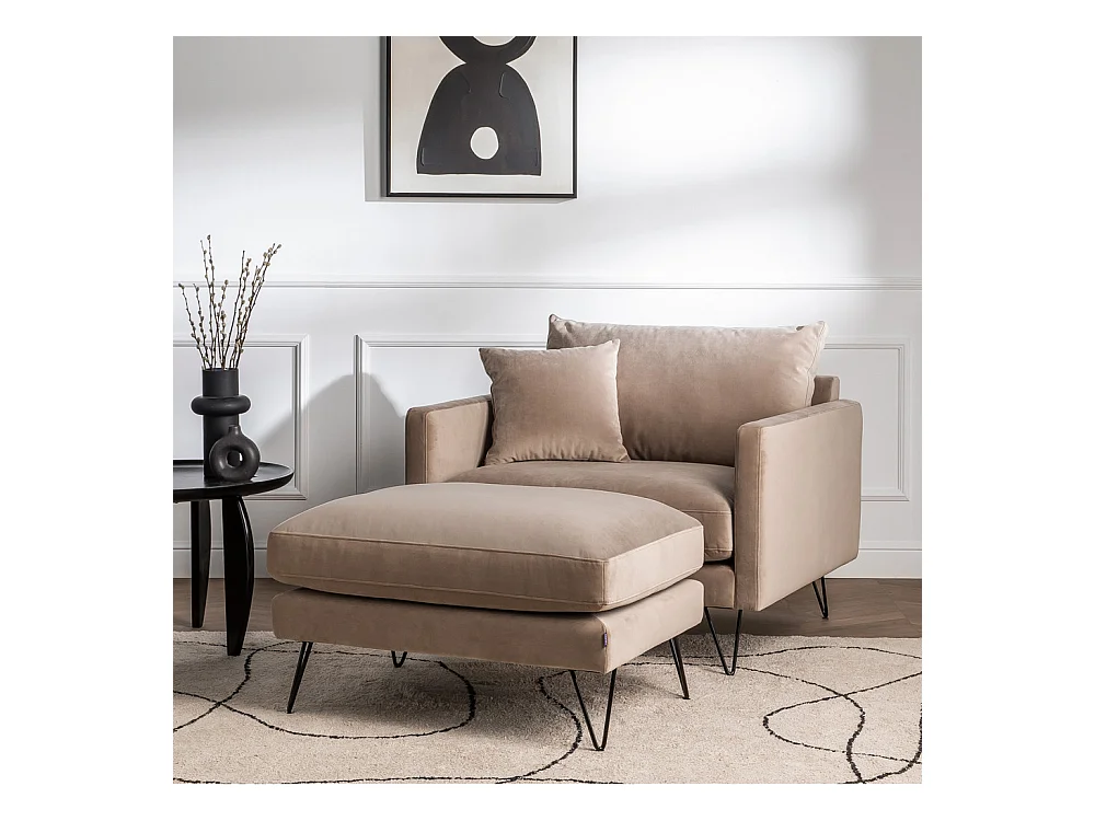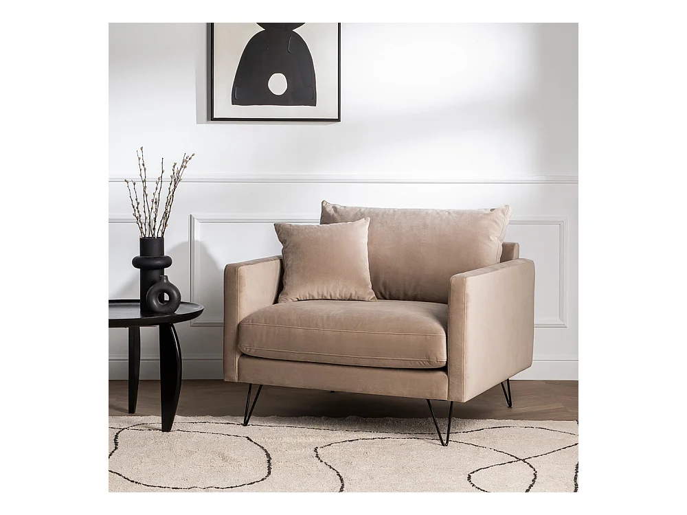 Villabon - Fauteuil XL en velours pieds épingles noirs - Beige