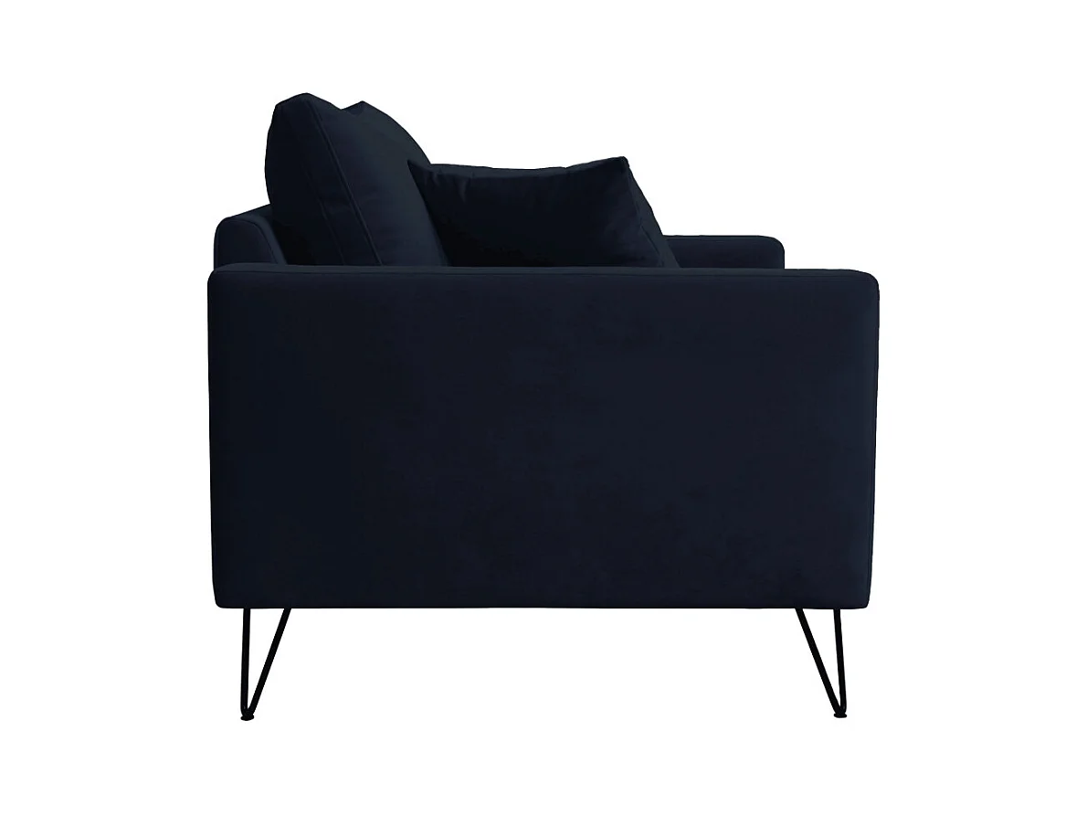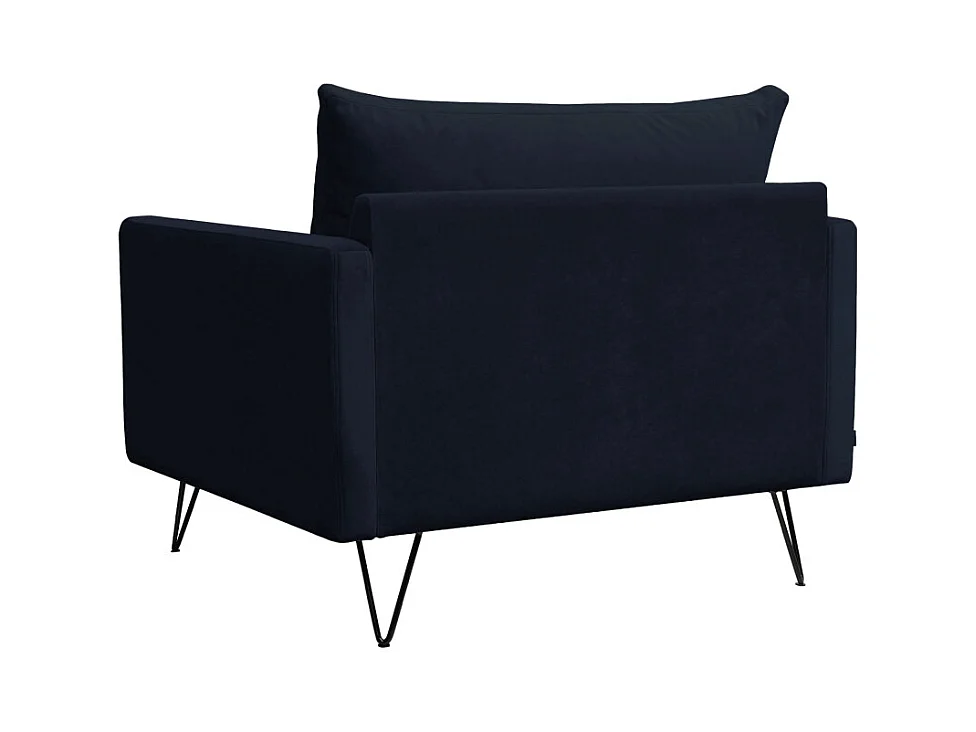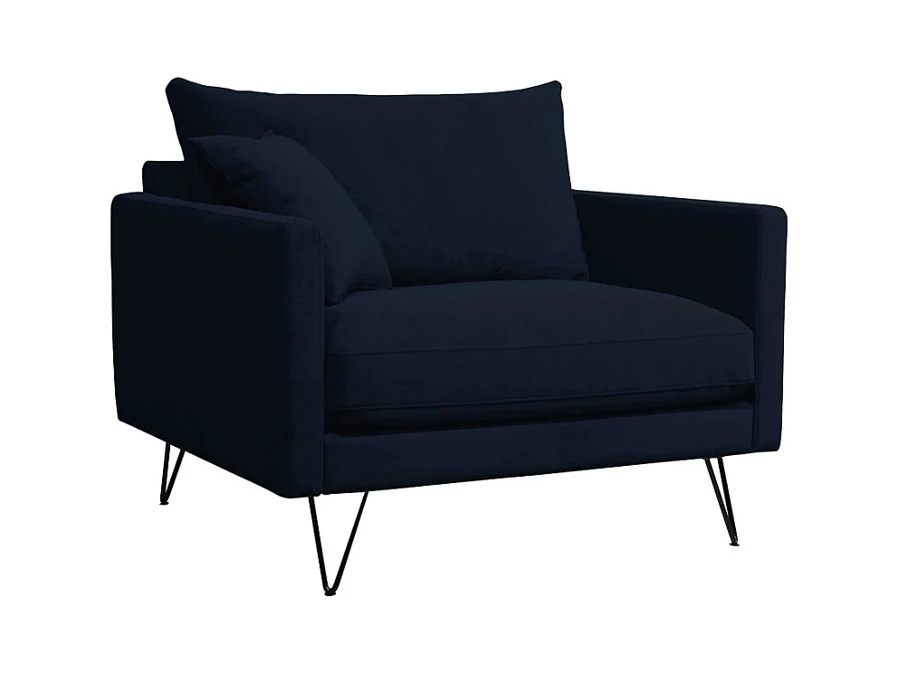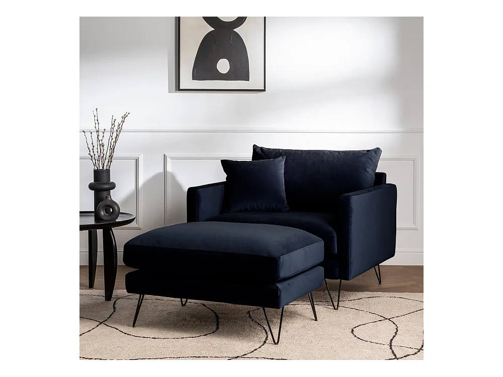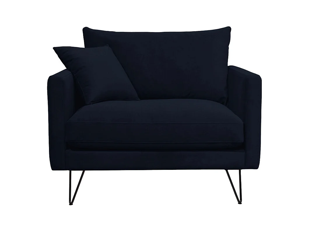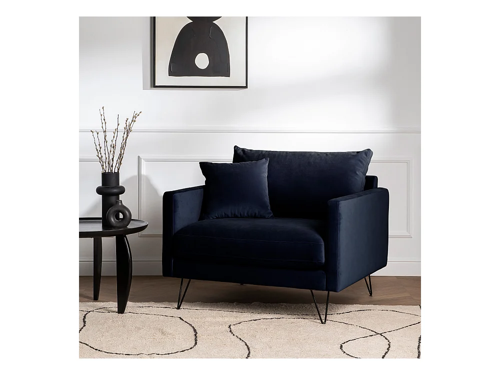 Villabon - Fauteuil XL en velours pieds épingles noirs - Bleu marine