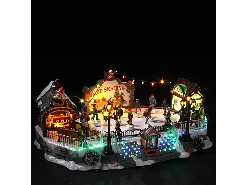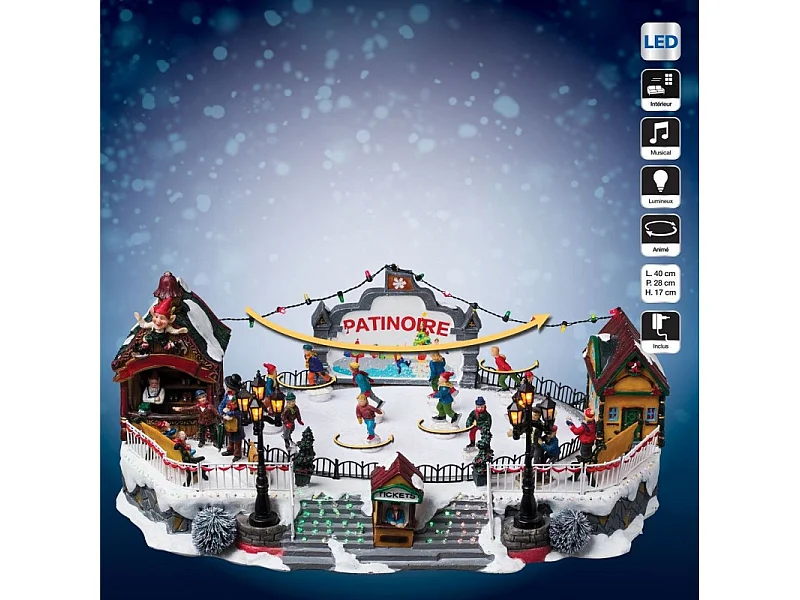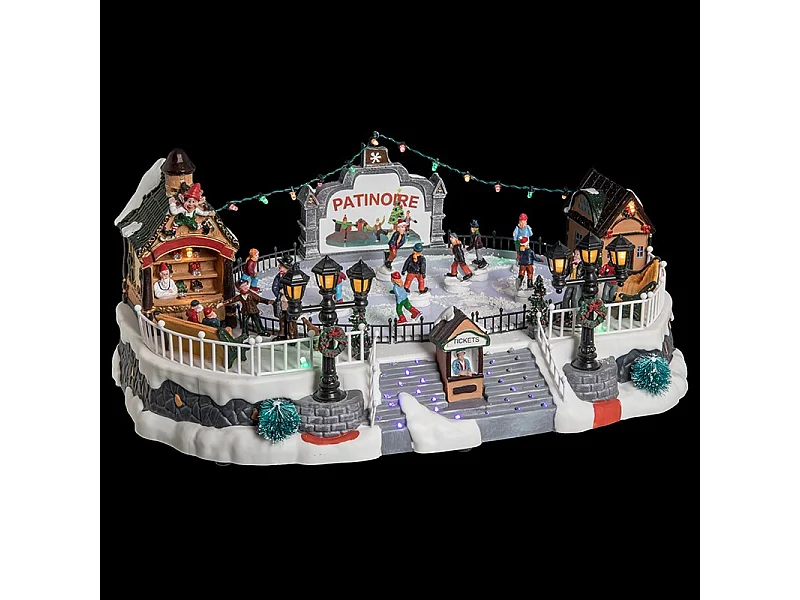 Village de Noël lumineux, animé et musical Patinoire avec 10 Santons