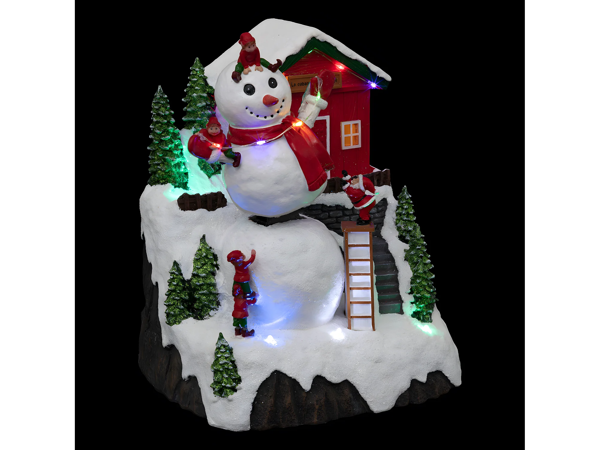 Village de Noël lumineux et animé Bonhomme de neige en mouvement