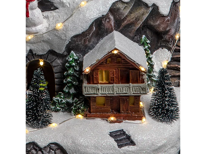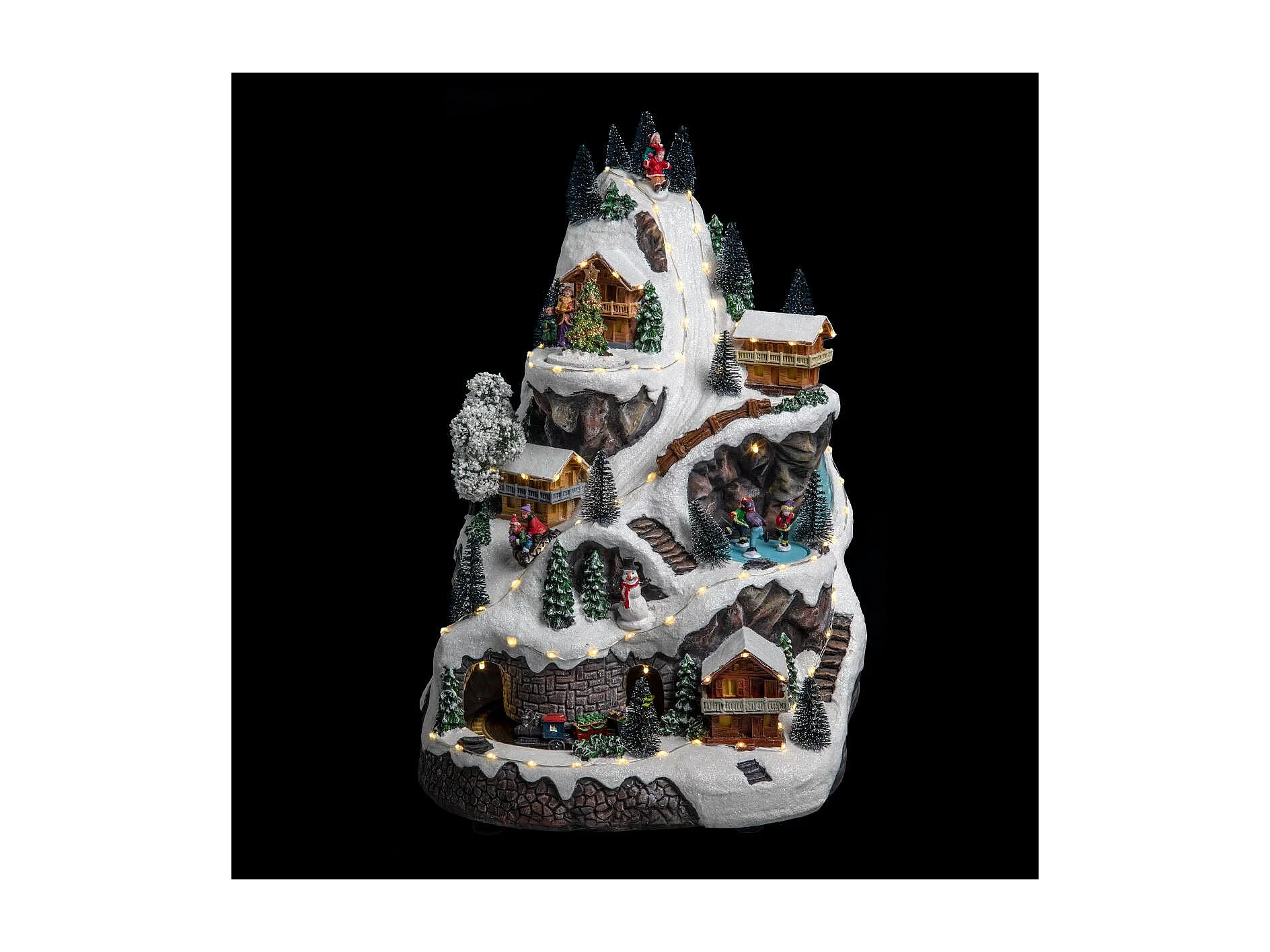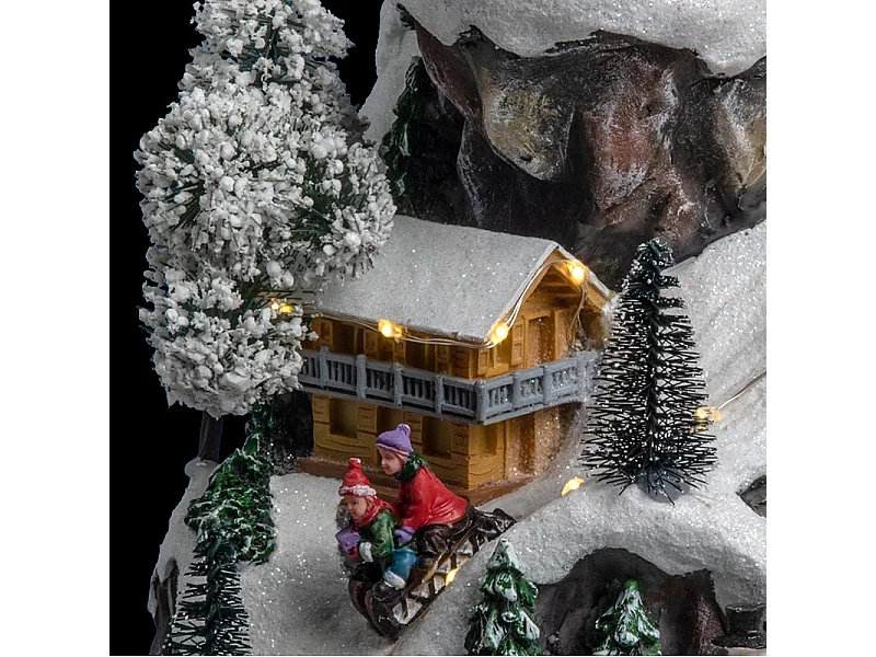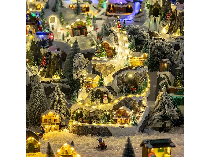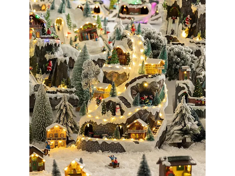 Village de Noël lumineux, musical et animé Montagne avec Maisons et Sapins enneigés