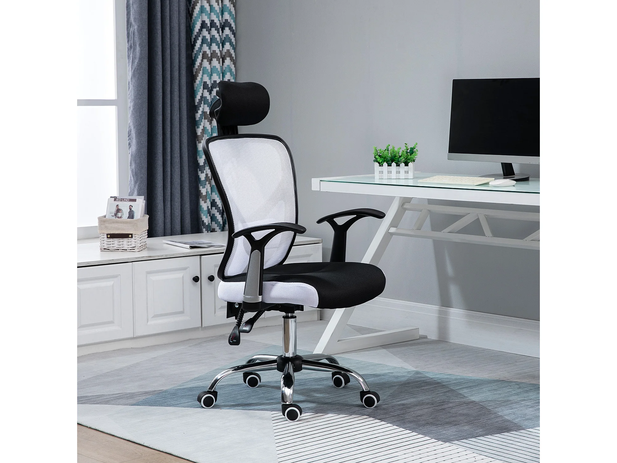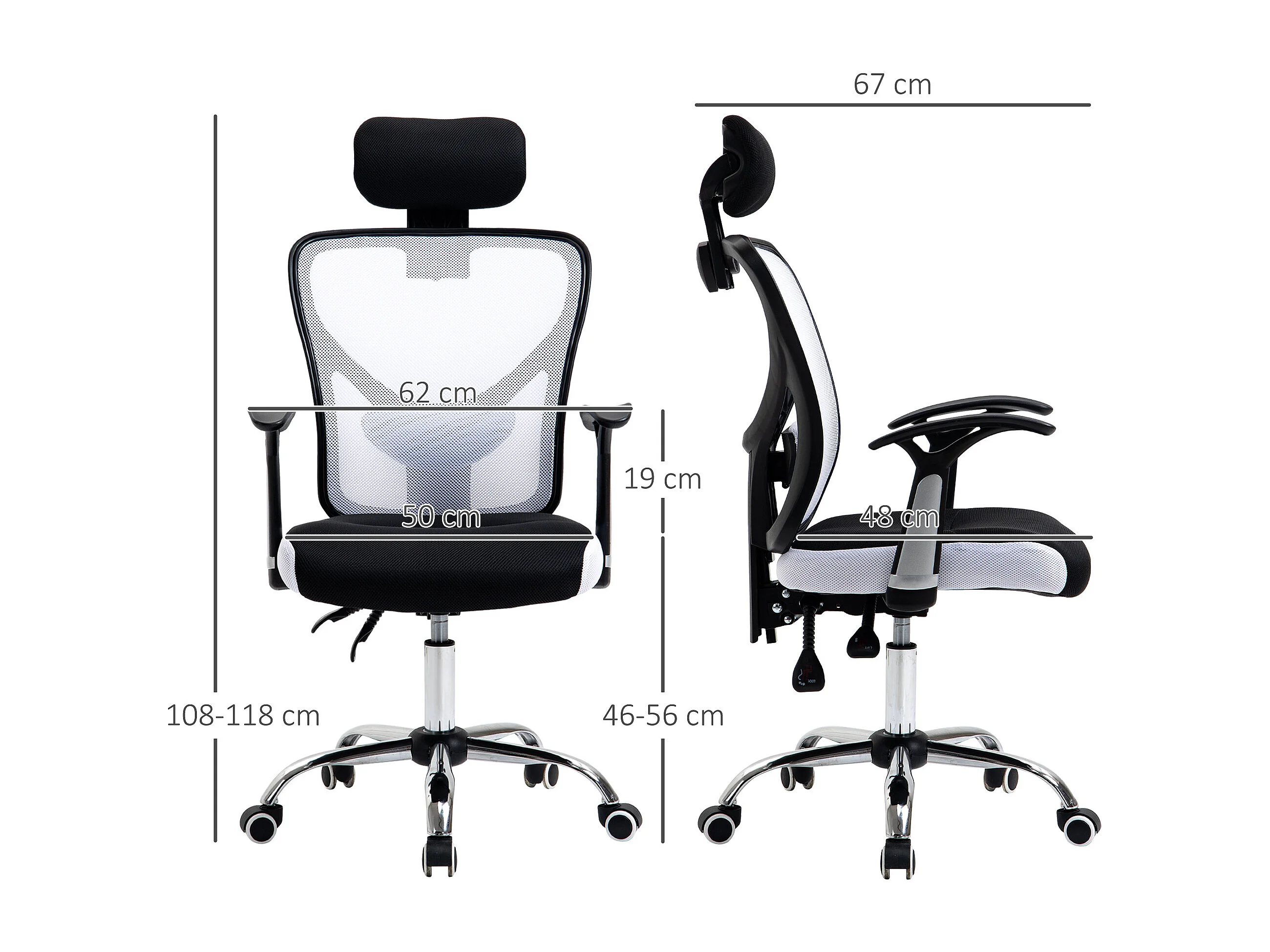 Vinsetto Chaise de bureau manager grand confort réglable dossier inclinable piètement chromé tissu maille polyester blanc noir
