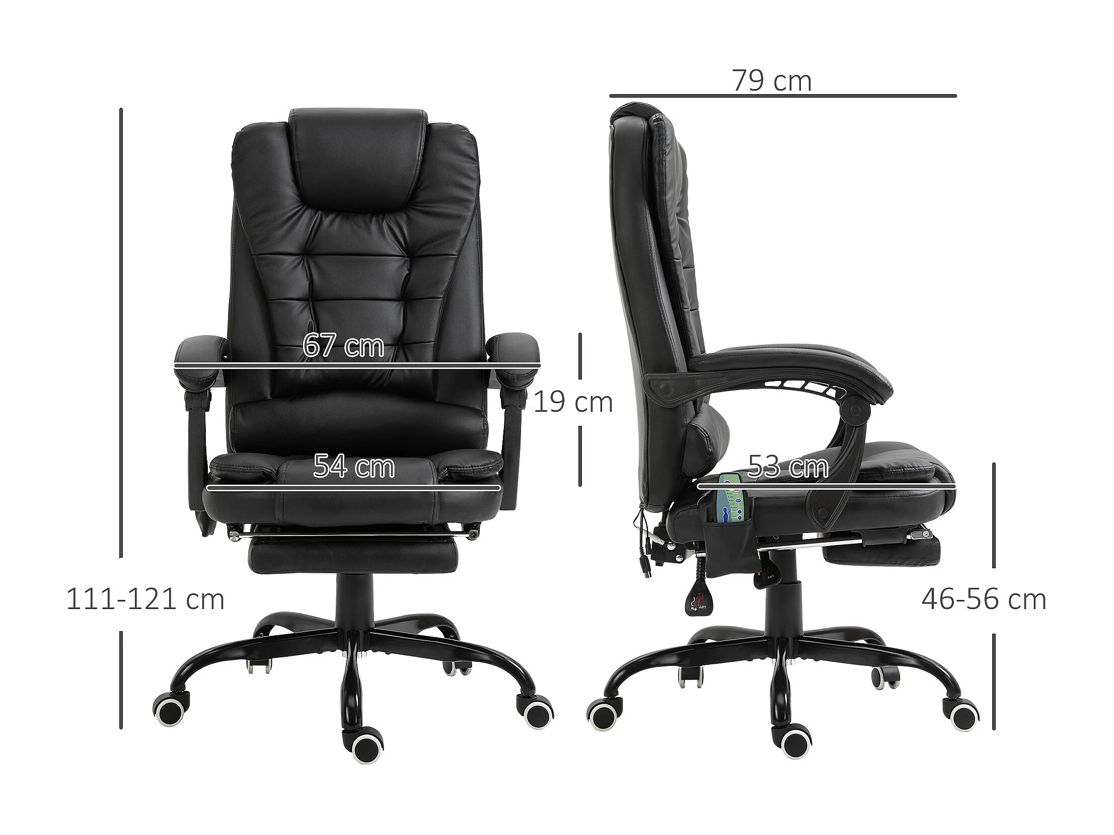 Vinsetto Fauteuil de bureau direction massant hauteur réglable dossier inclinable repose-pied + coussin lombaires intégrés revêtement synthétique noir