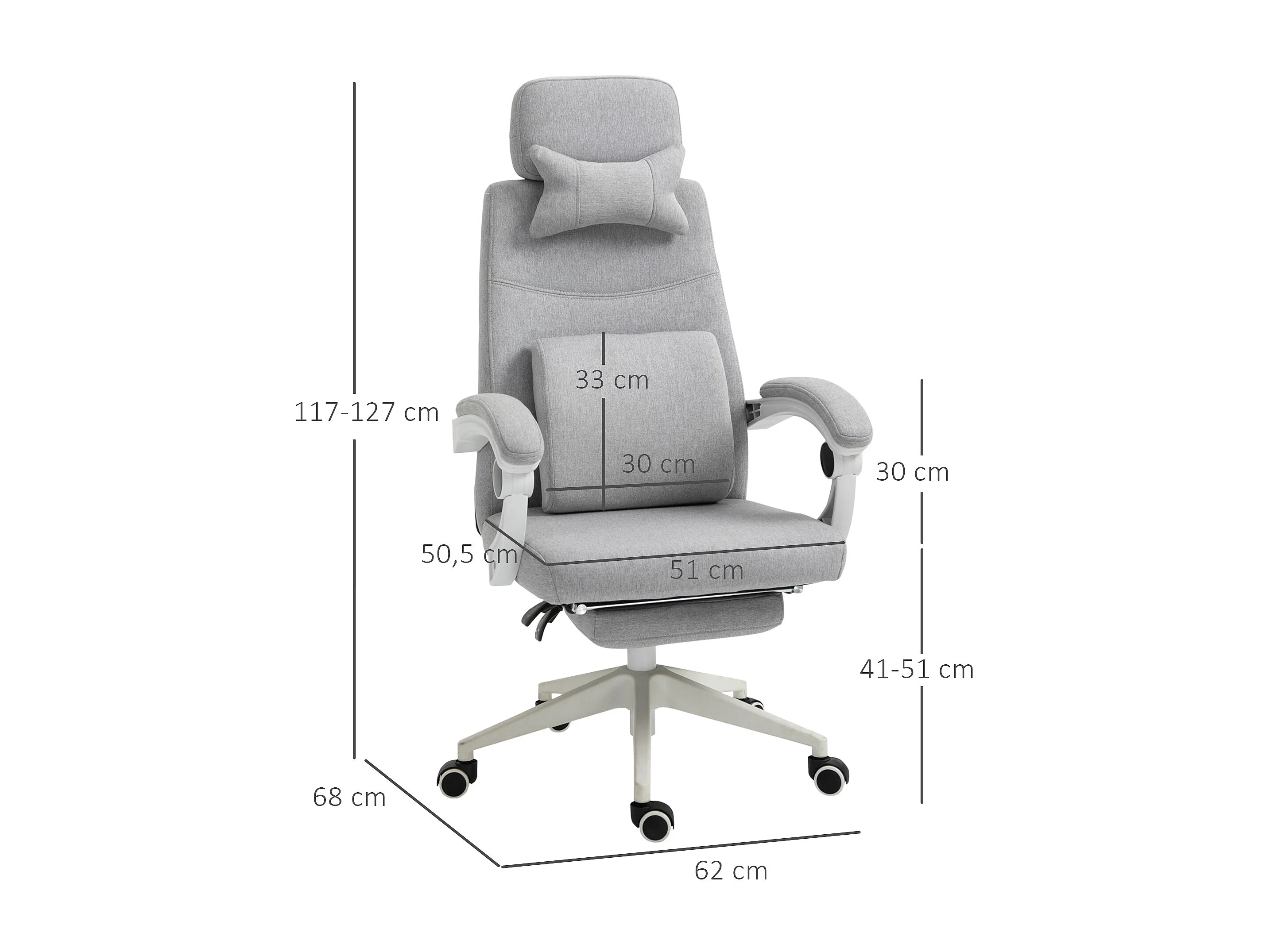 Fauteuil de bureau manager grand confort dossier réglable repose-pied coussin lombaire roulettes 360° lin 62L x 68P x 127H cm gris